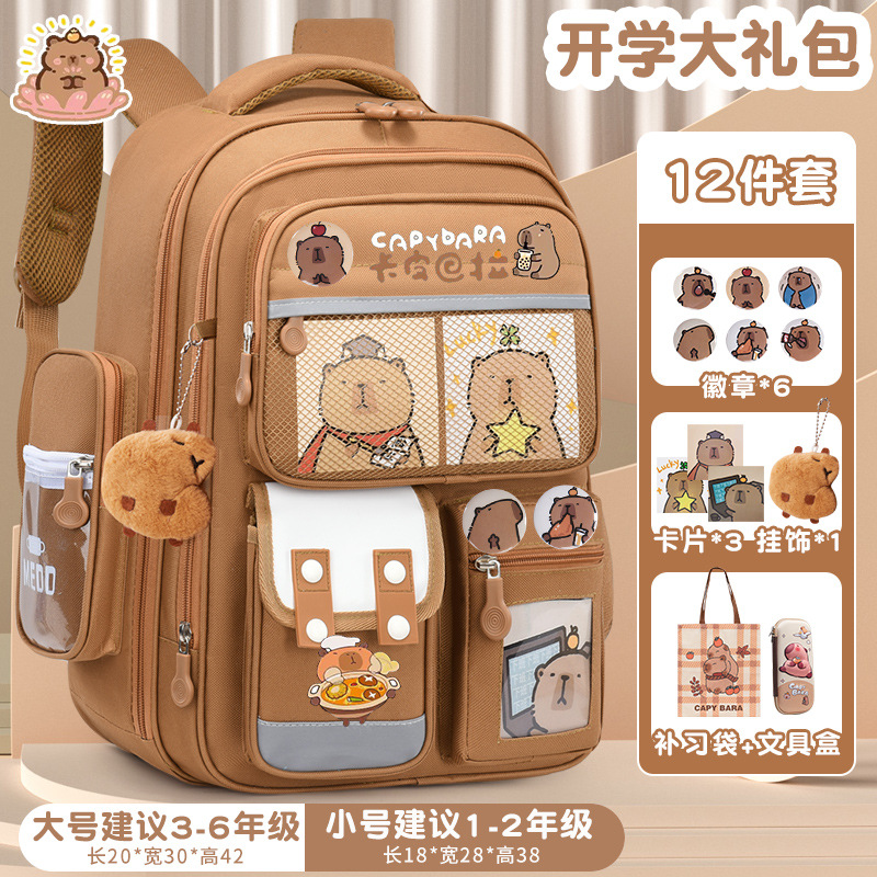 Kapibala Schoolbag 소녀의 대용량 귀여운 Capybara 배낭 중학교 및 초등학생 남성용 내구성 경량 배낭
