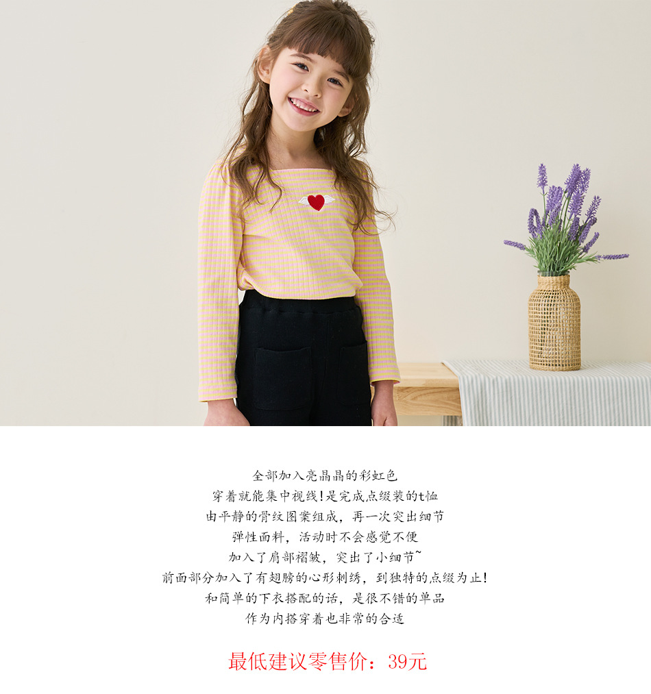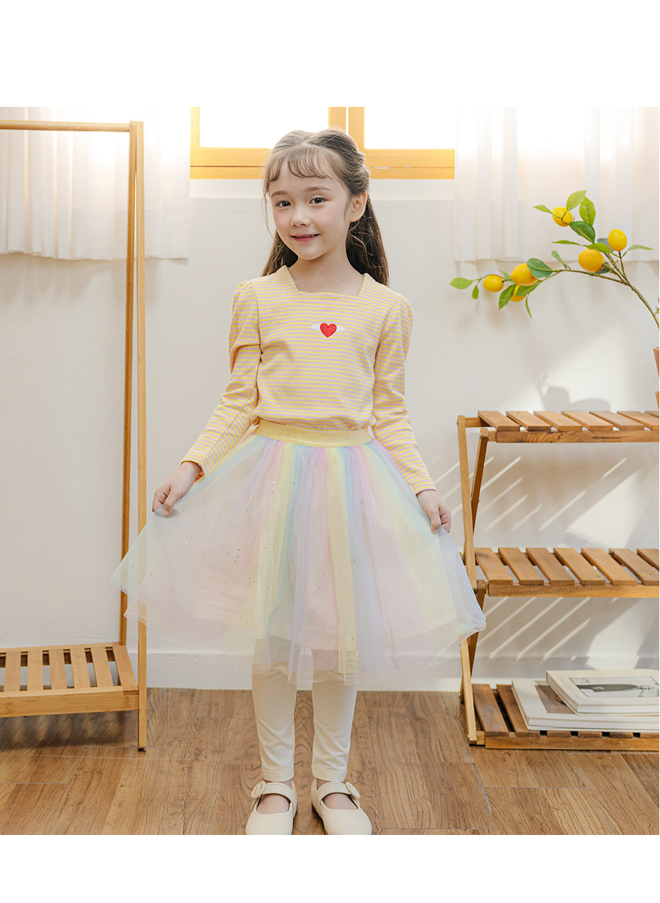 2024 봄 새로운 한국식 아동복 소녀 스트라이프 티셔츠 퍼프 소매 긴소매 스퀘어 칼라 아동용 탑 바닥 셔츠