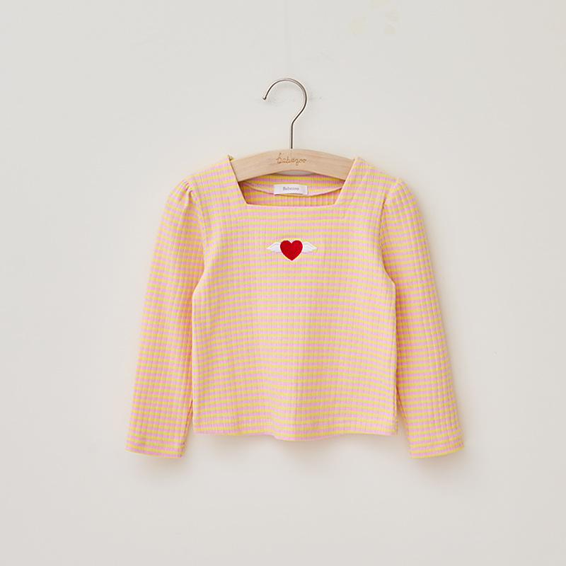 2024 봄 새로운 한국식 아동복 소녀 스트라이프 티셔츠 퍼프 소매 긴소매 스퀘어 칼라 아동용 탑 바닥 셔츠스토어 가기
