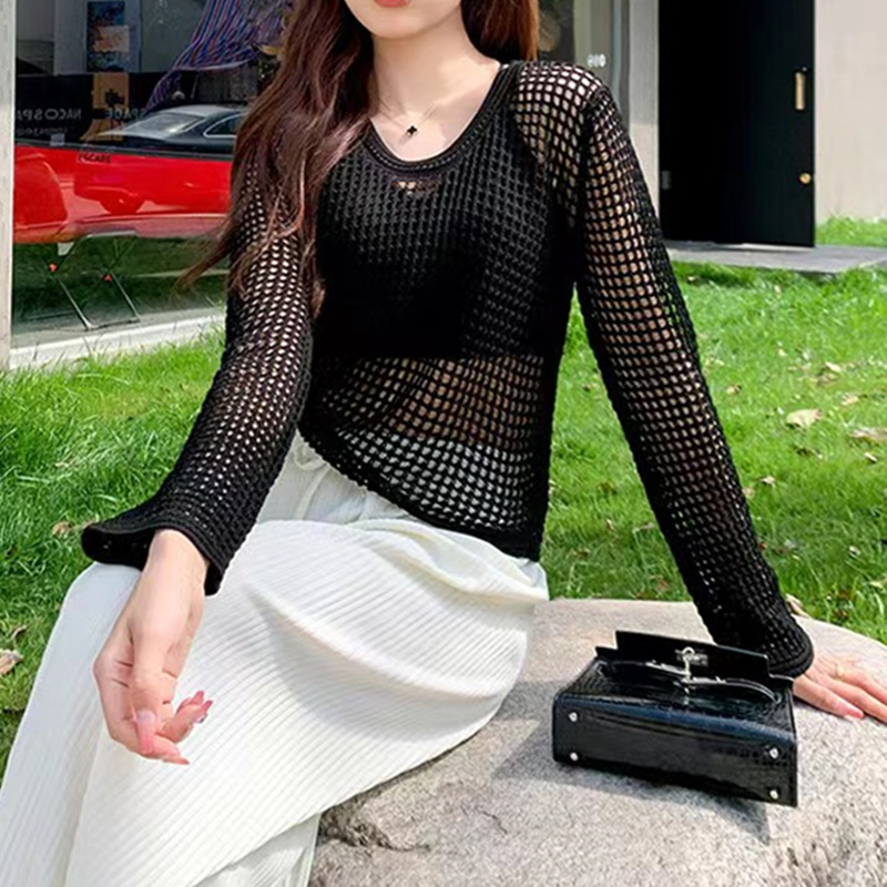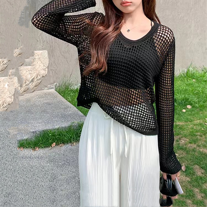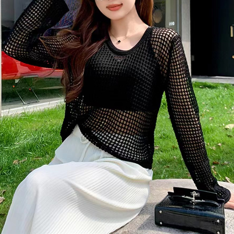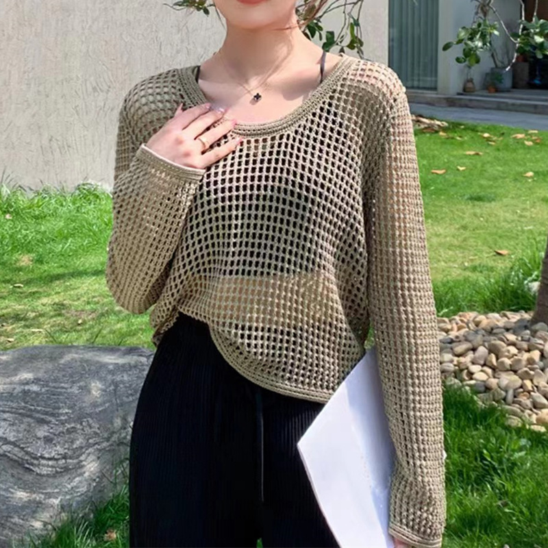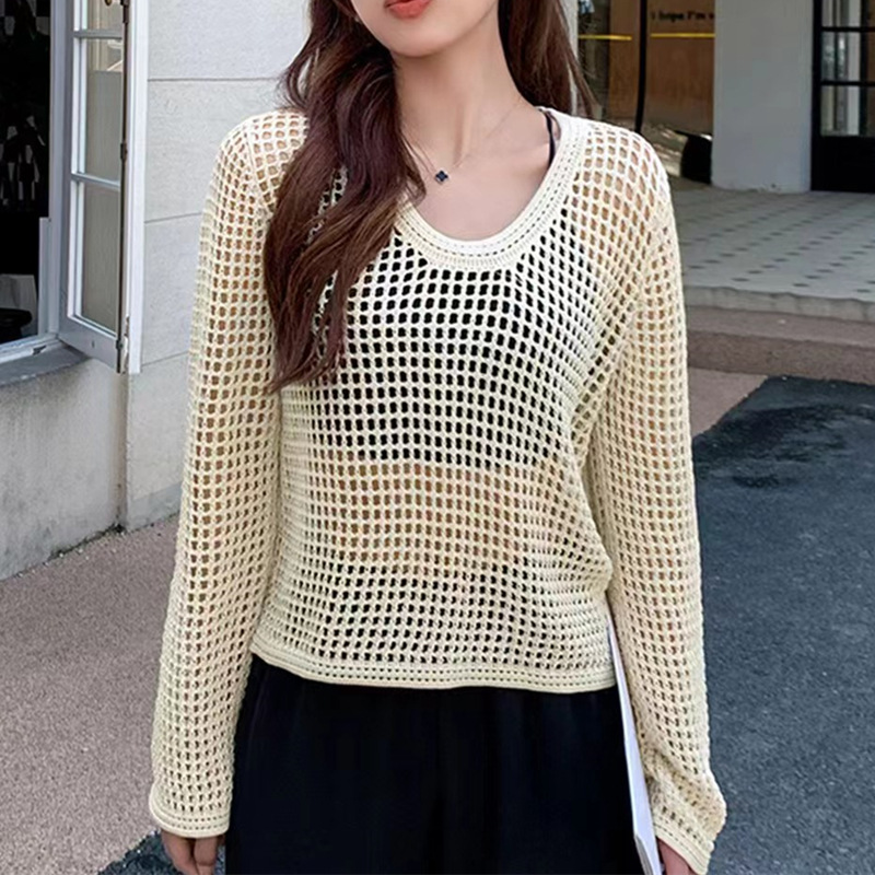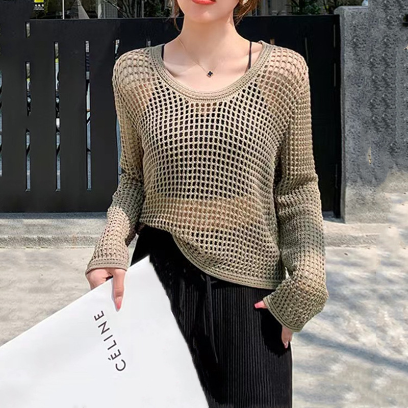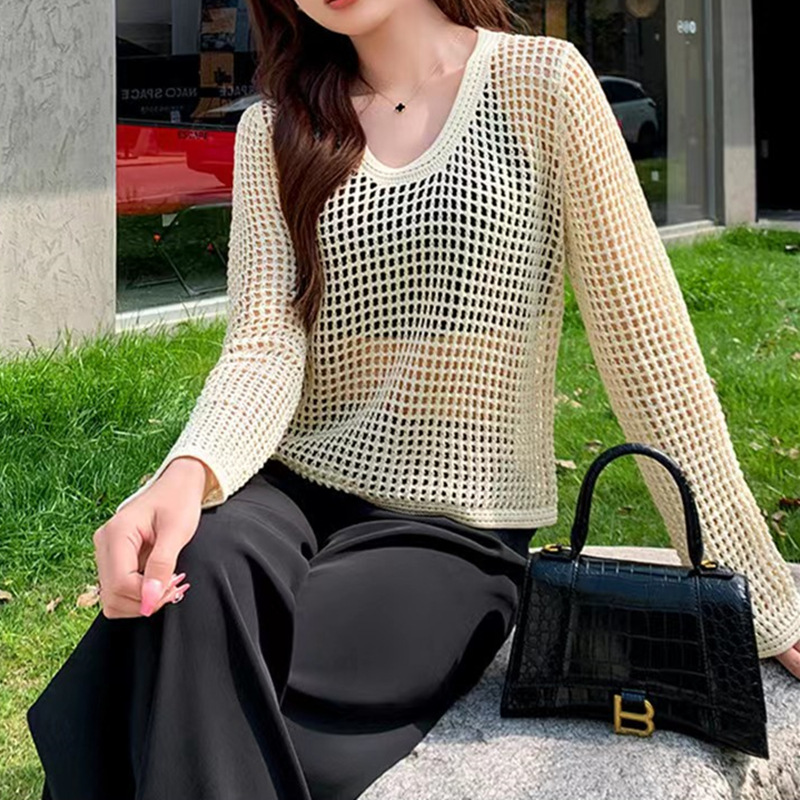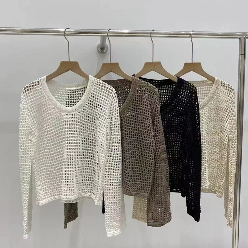 봄 여름 여성용 펀칭 니트 스웨터 2026 신상 얇은 라운드넥 긴팔 루즈핏 풀오버 다용도 탑 패셔너블 블라우스스토어 가기