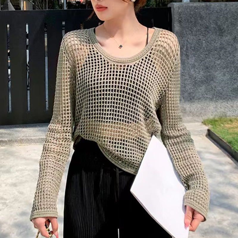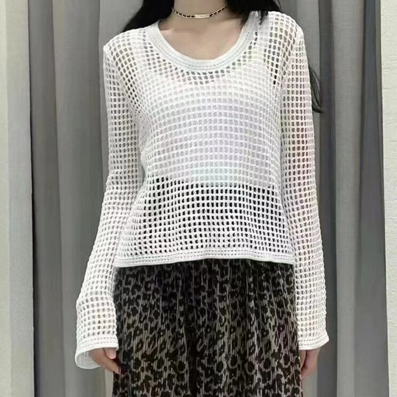 봄 여름 여성용 펀칭 니트 스웨터 2026 신상 얇은 라운드넥 긴팔 루즈핏 풀오버 다용도 탑 패셔너블 블라우스