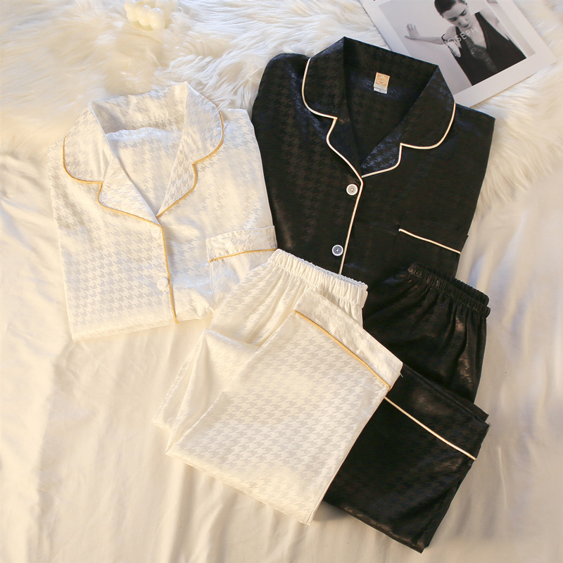 커플 잠옷 여성의 봄과 가을 얼음 실크 긴 소매 귀여운 만화 토끼 진짜 실크 남성 플러스 사이즈 홈 착용 여름과 겨울스토어 가기