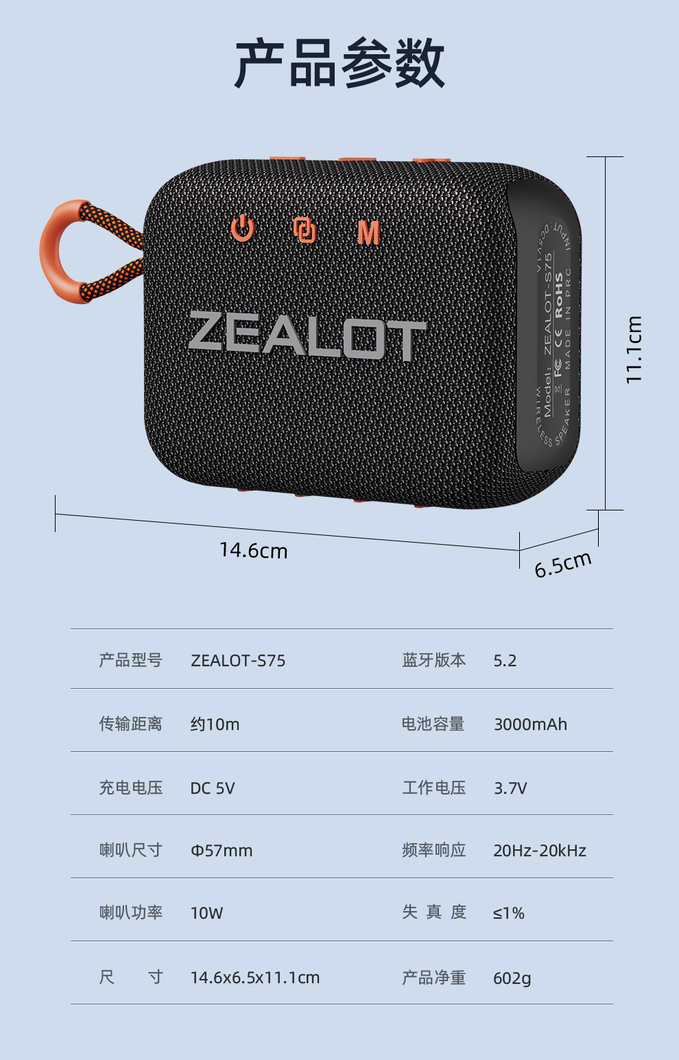 产品型号:S75防水蓝牙音箱