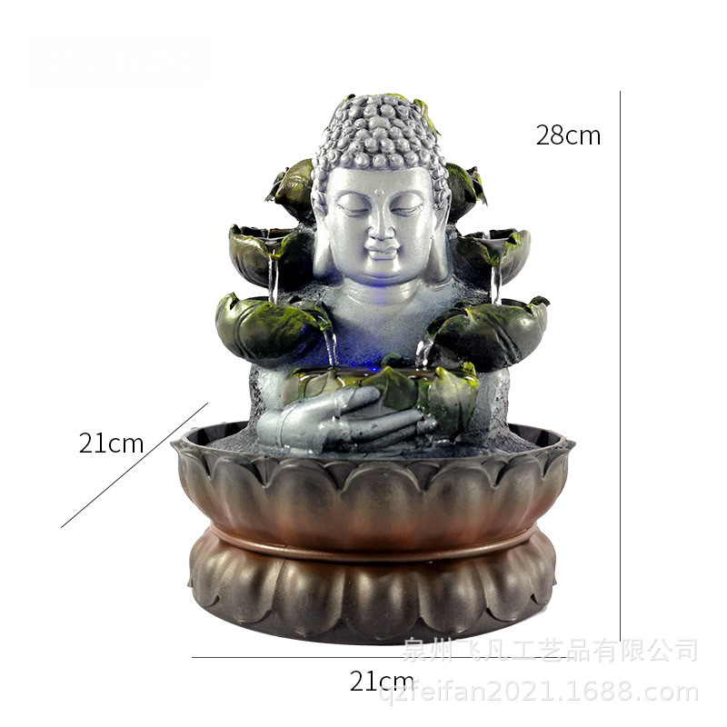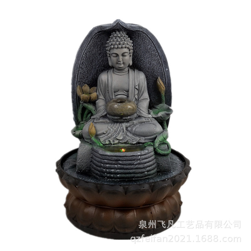 달리는 물 장식품 수지 부처님 동상 분수 공예 홈 선 데스크탑 장식품 입구 수경 물 순환 선물