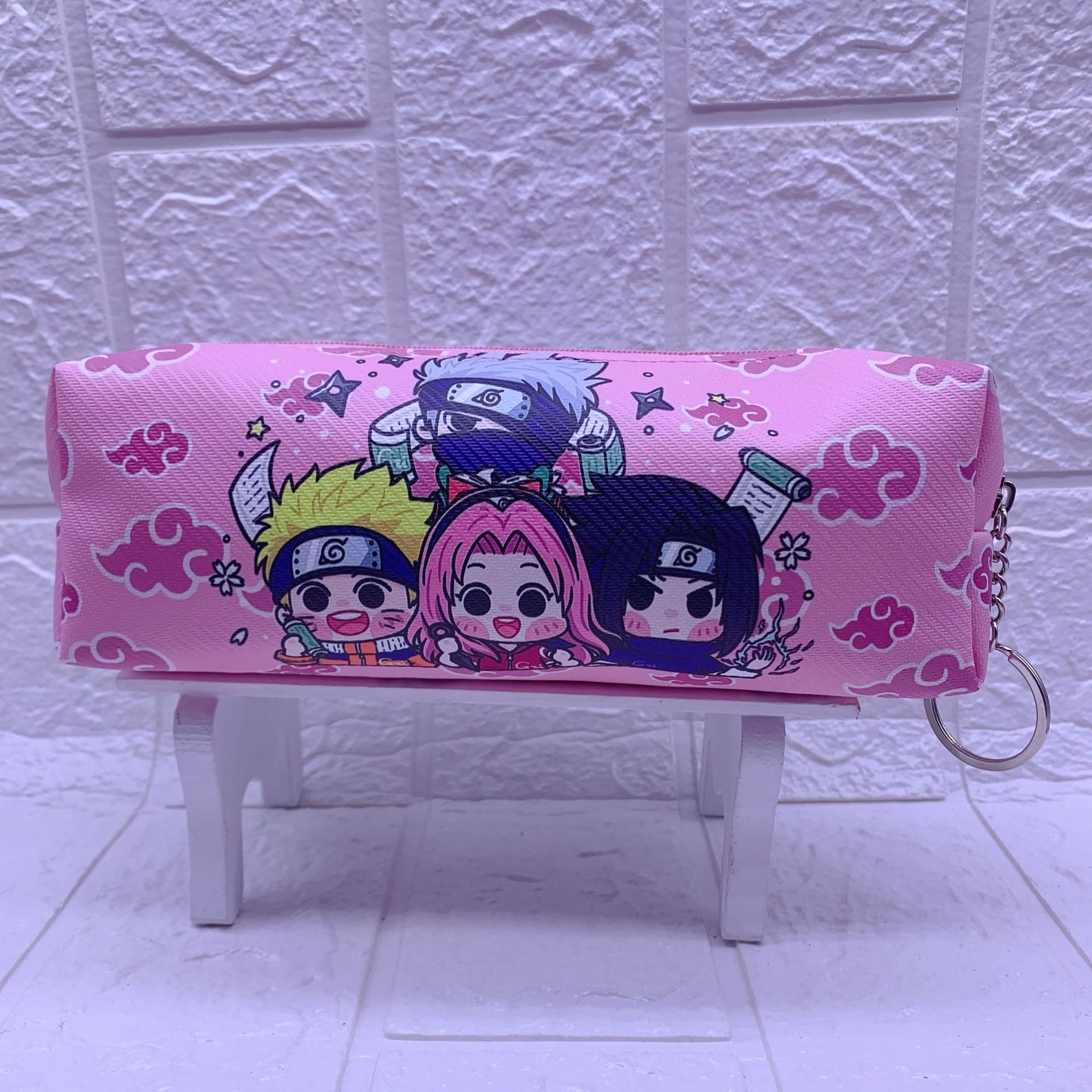 재고 애니메이션 만화 나루토 연필 케이스 학생 대용량 문구 저장 가방 PU 인쇄 로고 화장품 가방스토어 가기
