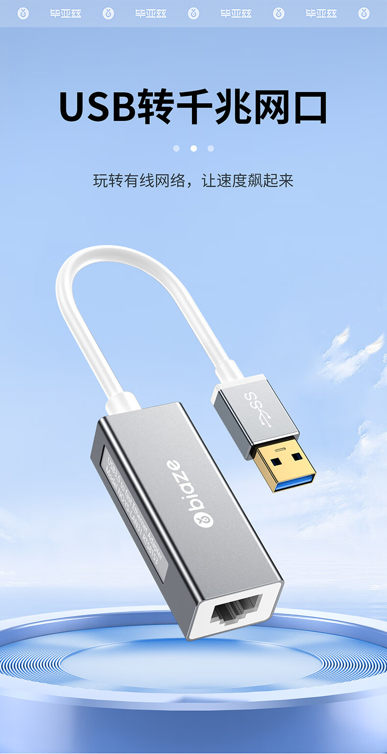 Biaz USB3.0 기가비트 유선 네트워크 카드 1 m 긴 케이블 RJ45 네트워크 케이블 인터페이스 컨버터 네트워크 포트 전송스토어 가기