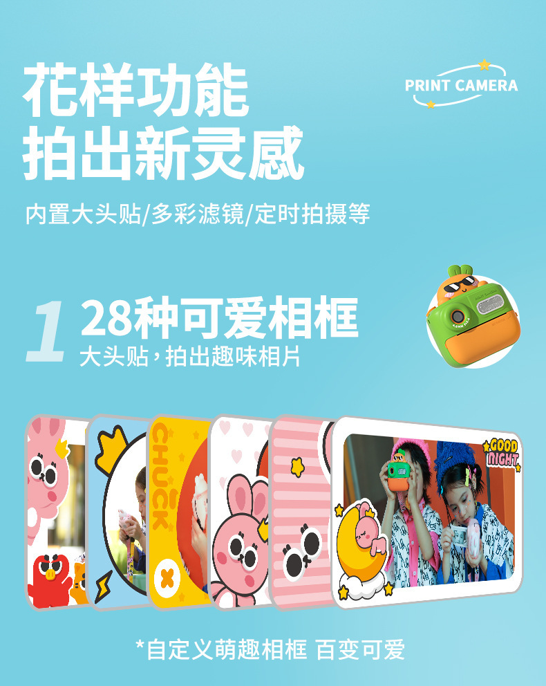 • 귀여운 토끼 [32G 메모리 카드 + 3 롤 사진 종이 + 타입 C 어댑터]]