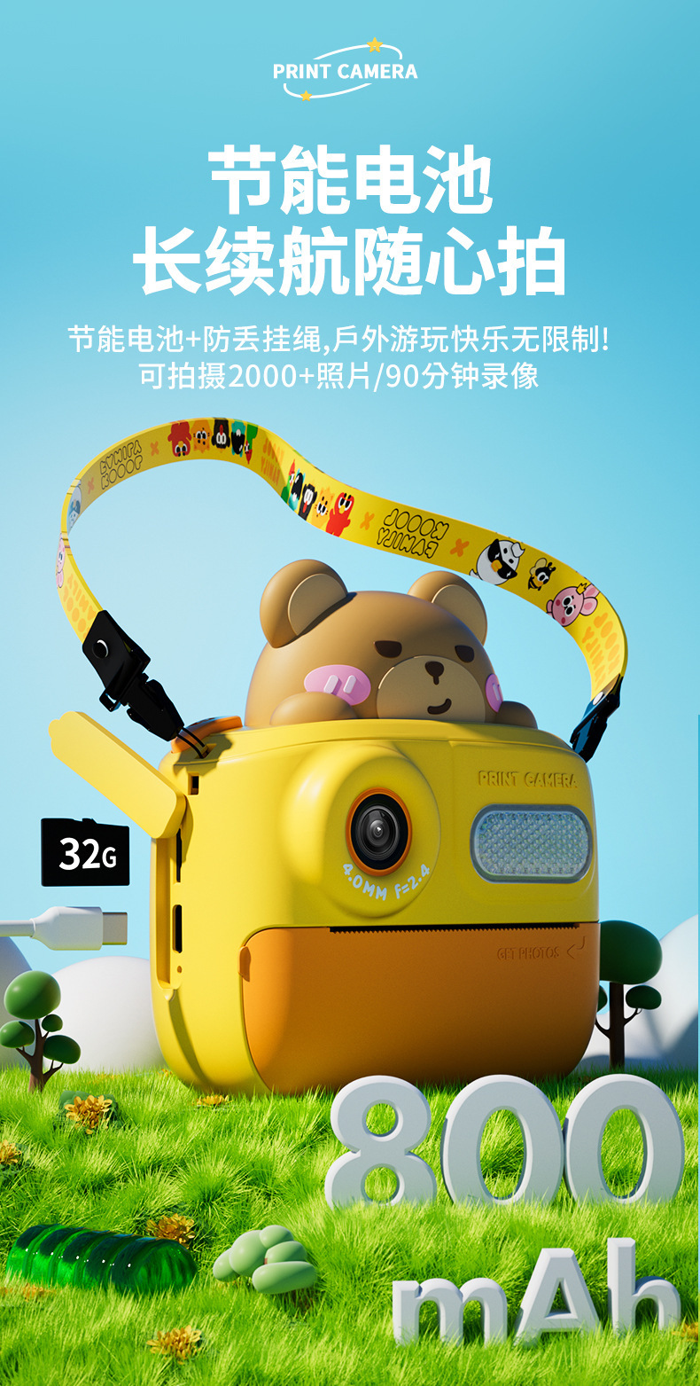 • Dull Bear [32G 메모리 카드 + 3 롤 사진 종이 + 타입 C 어댑터]