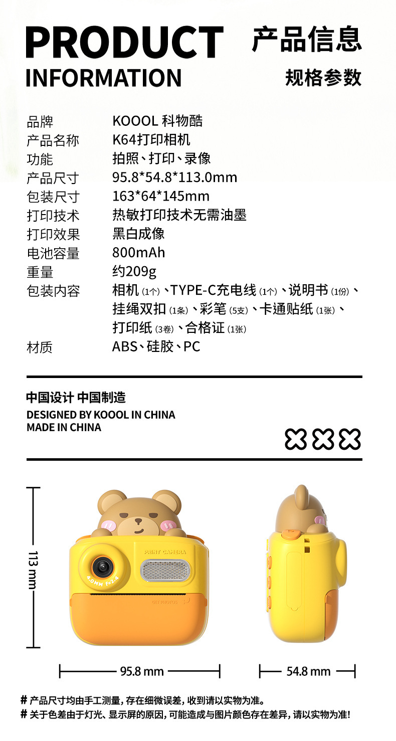 • Dull Bear [16G 메모리 카드 + 3 롤 사진 종이 + 타입 C 어댑터]