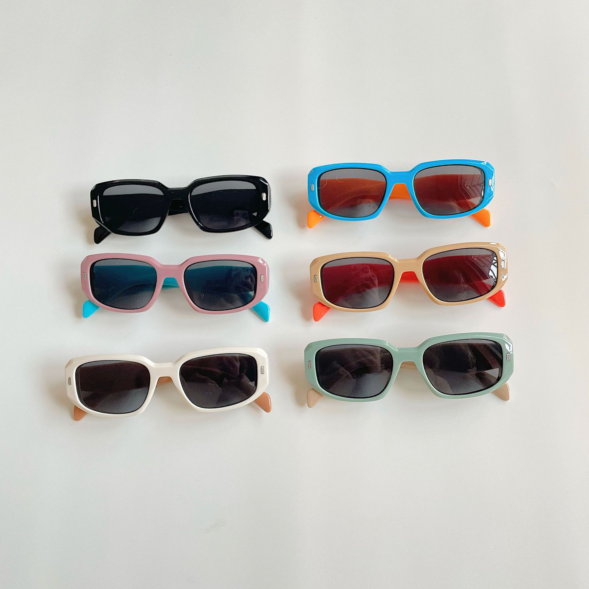 새로운 in 한국식 대비 컬러 어린이 선글라스 봄과 여름 사각형 두꺼운 다리 안경 아기 자외선 차단 선글라스 패션스토어 가기