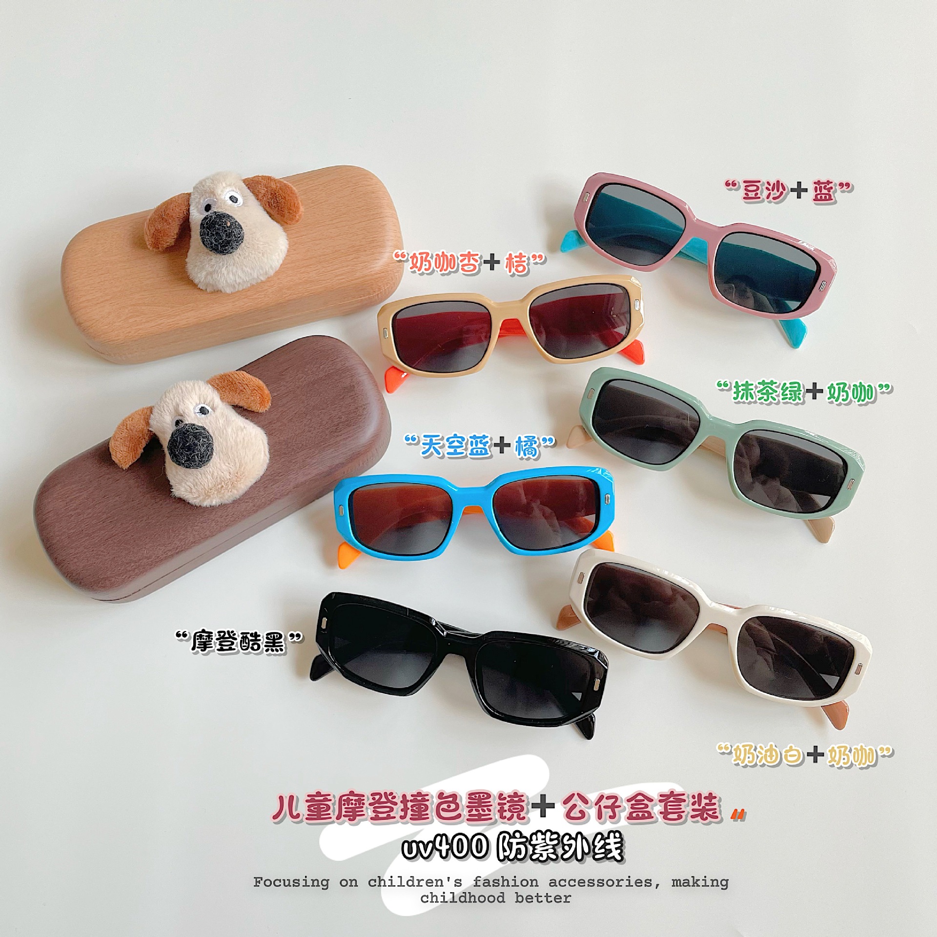 狗狗眼镜盒+撞色方框墨镜