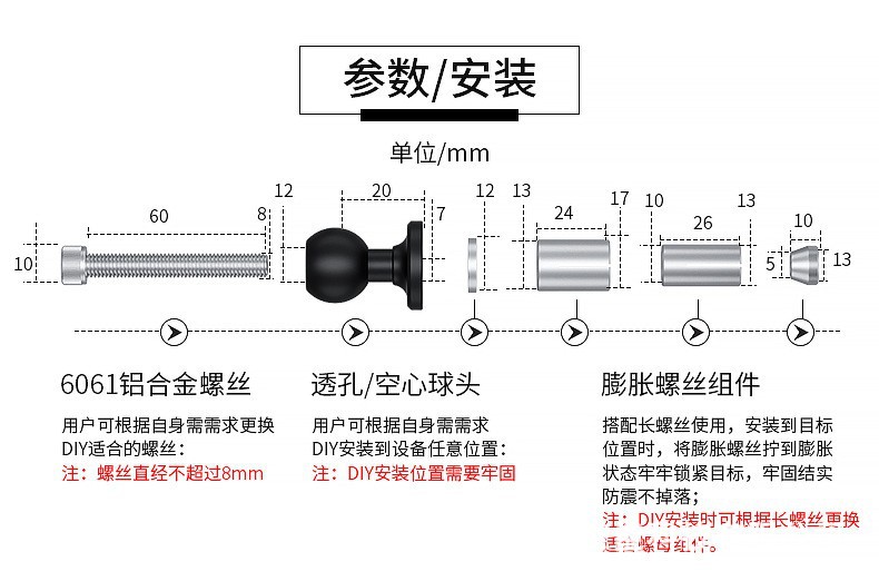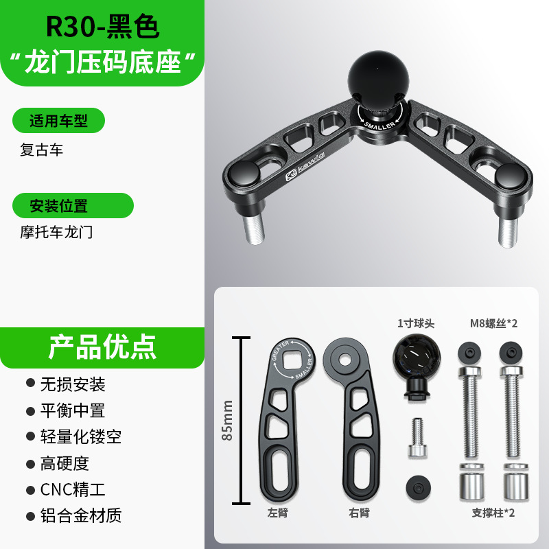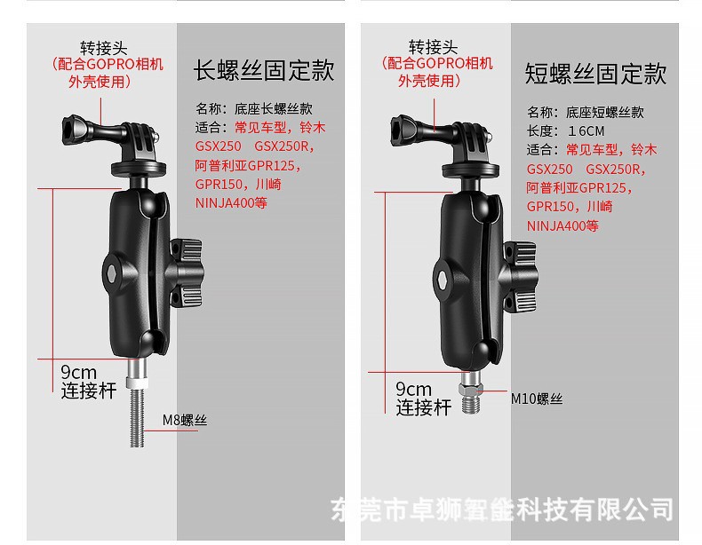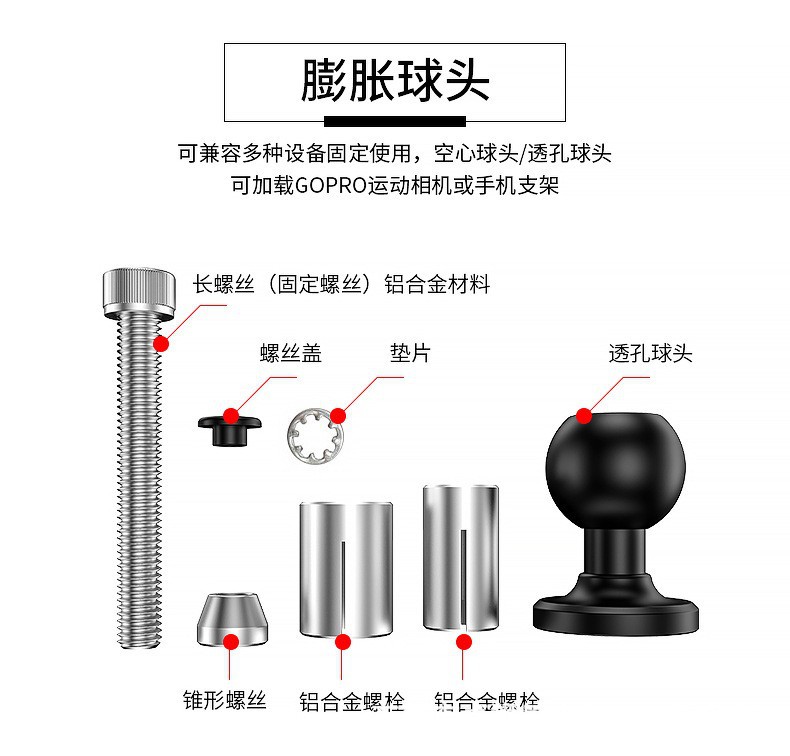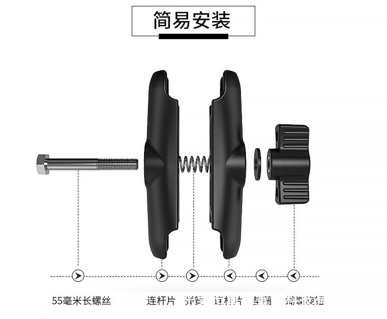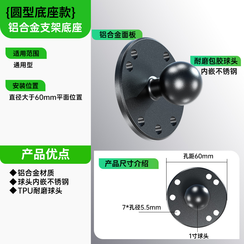 适用于各类车型的骑行手机支架、运动相机底座,汽车中控,海洋探鱼器,GPS绘圆仪器,平板电脑支架,船用电子装置,其他电子设备支架等等安装使用。
