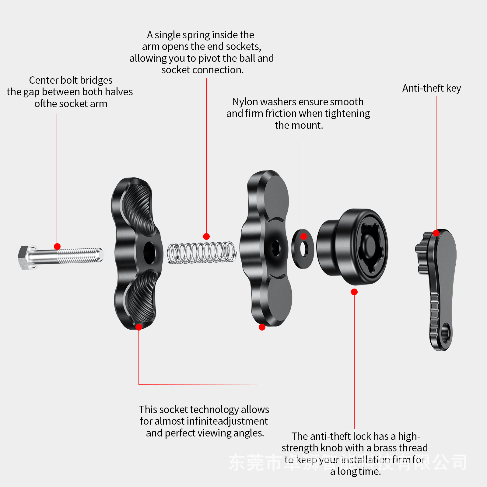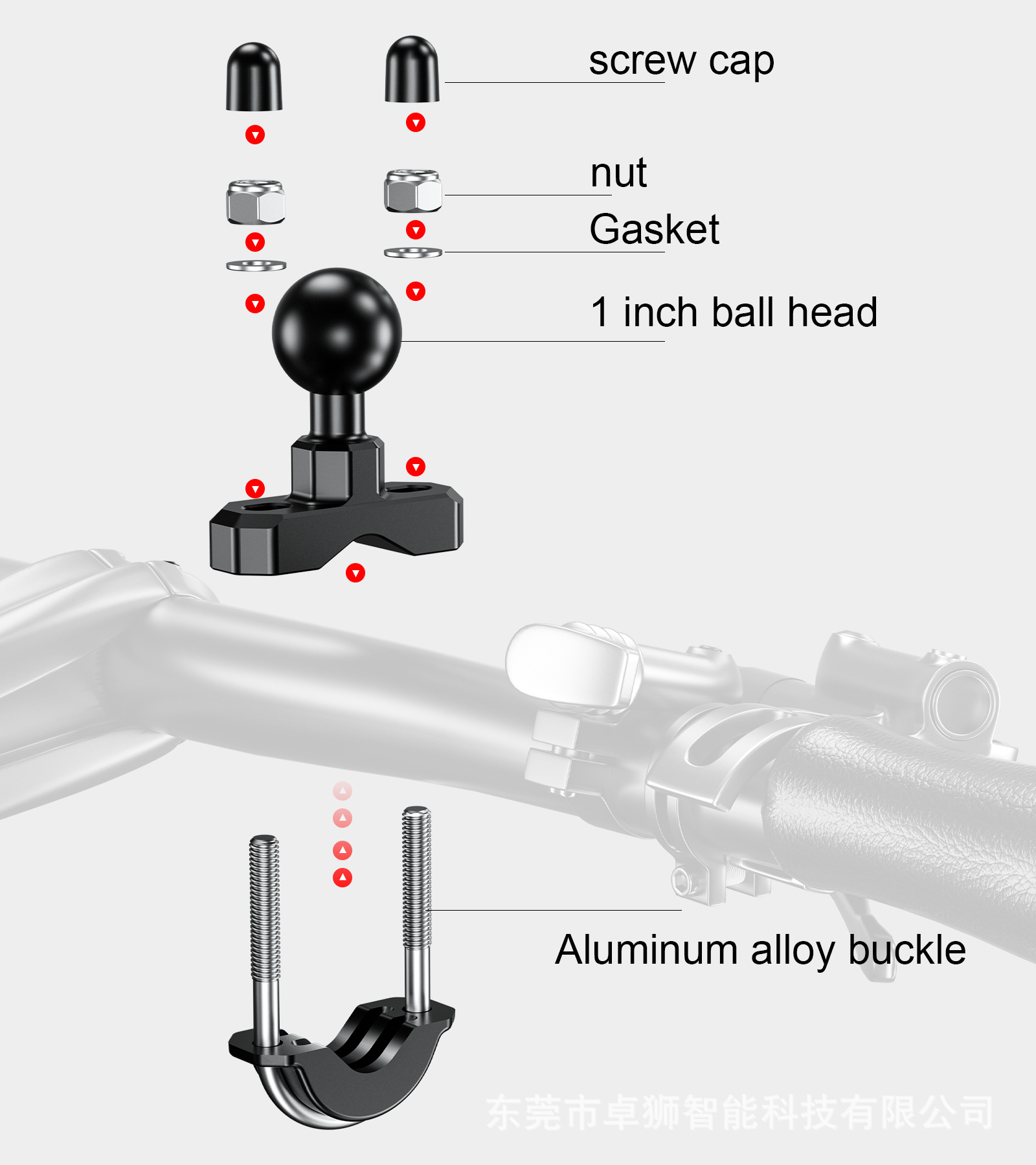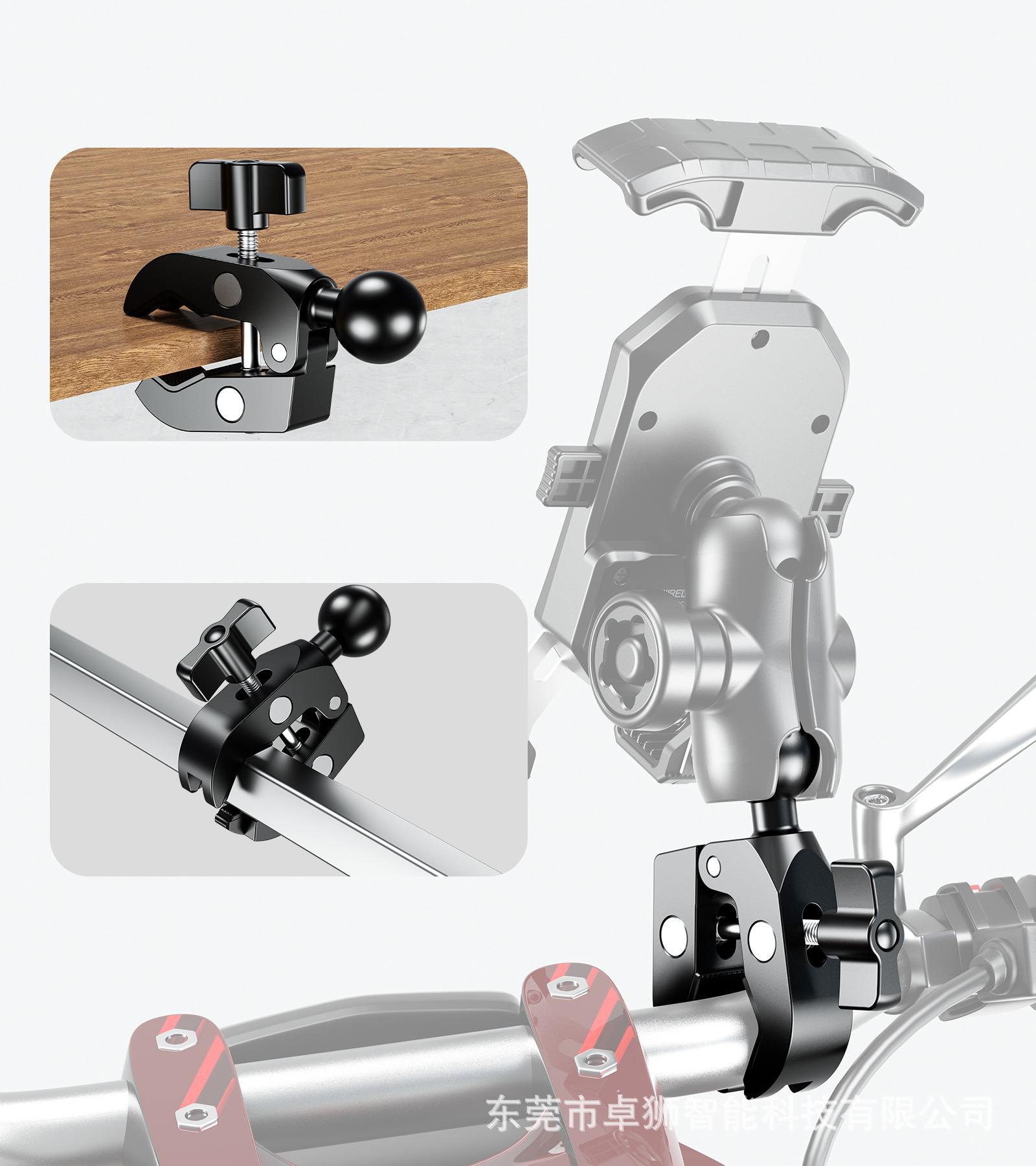 适用于各类车型的骑行手机支架、运动相机底座,汽车中控,海洋探鱼器,GPS绘圆仪器,平板电脑支架,船用电子装置,其他电子设备支架等等安装使用。