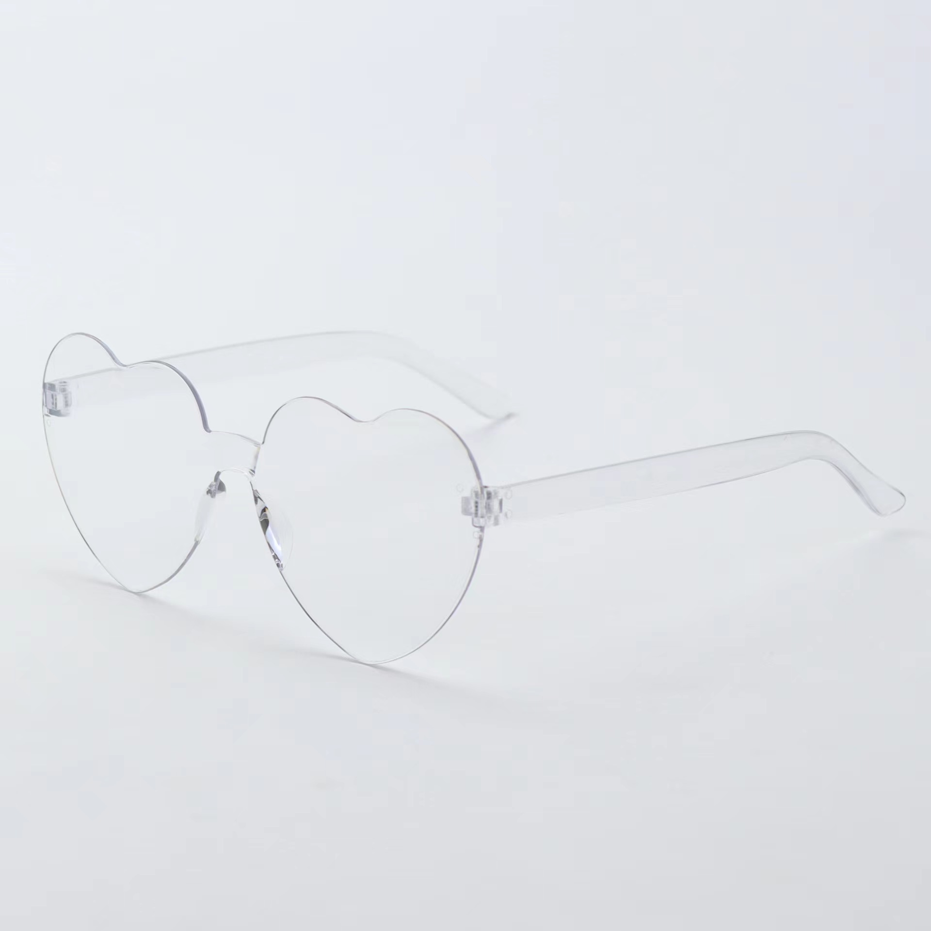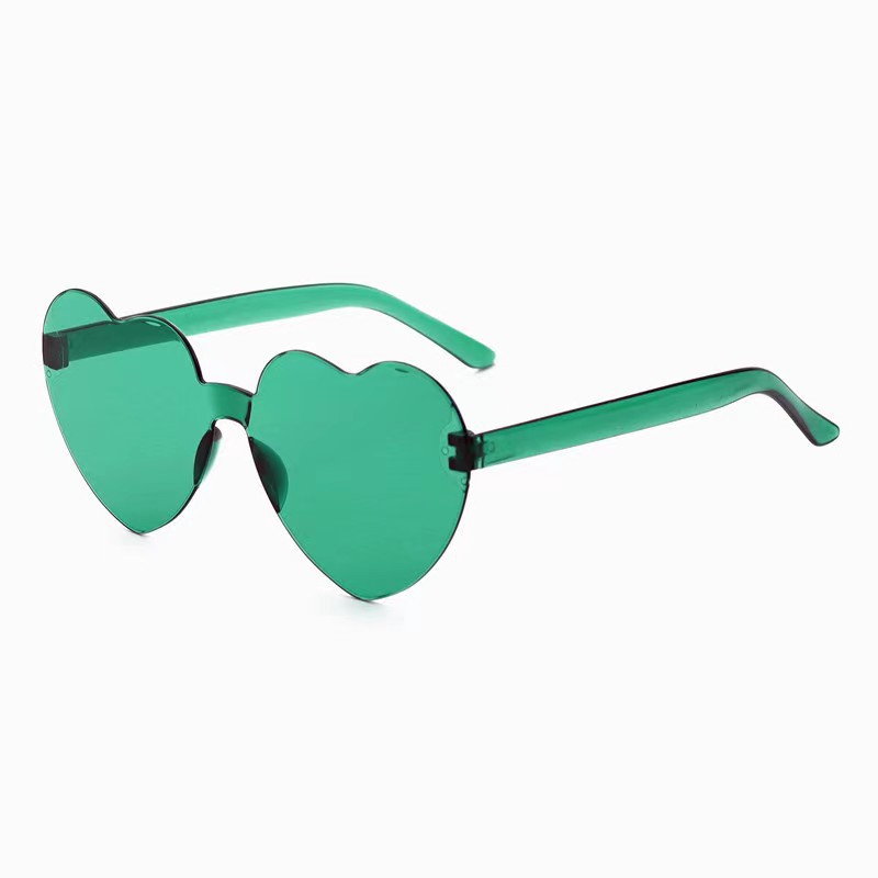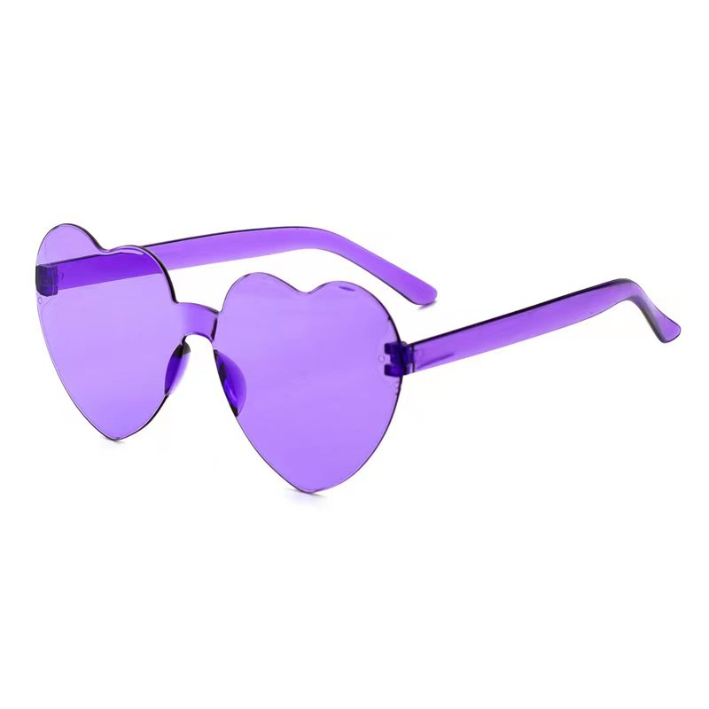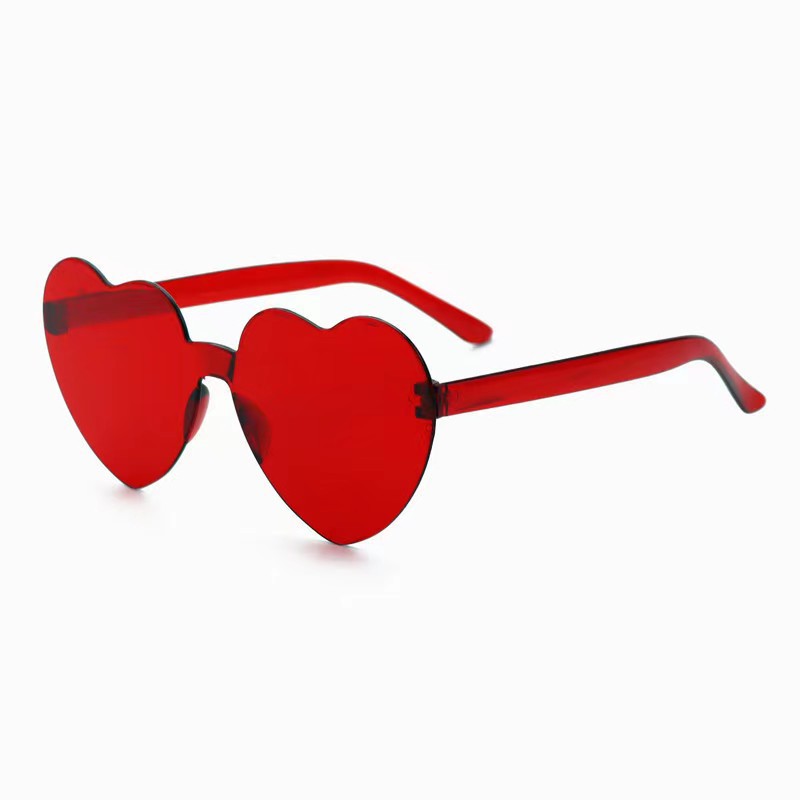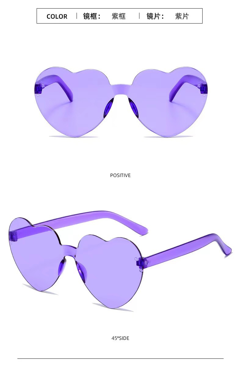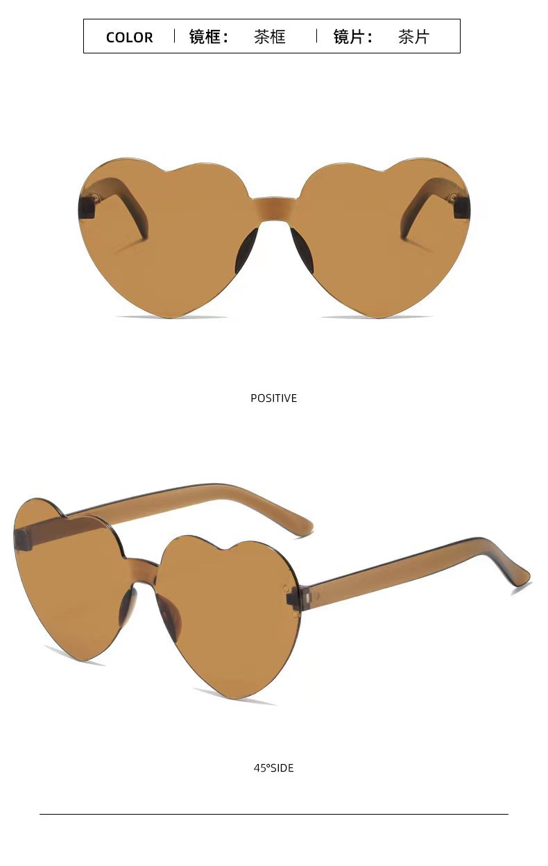 새로운 투명 젤리 컬러 복숭아 심장 선글라스 유럽과 미국 패션 프레임리스 원피스 오션 선글라스 사랑 하트 모양의 안경
