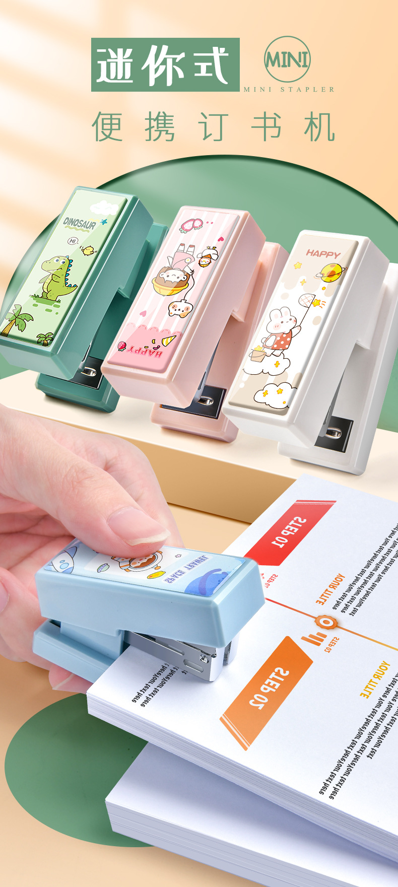 사무실 학습 문구 귀여운 미니 스테이플러 스테이플러 No. 12 휴대용 소형 스테이플러 세트 도매스토어 가기