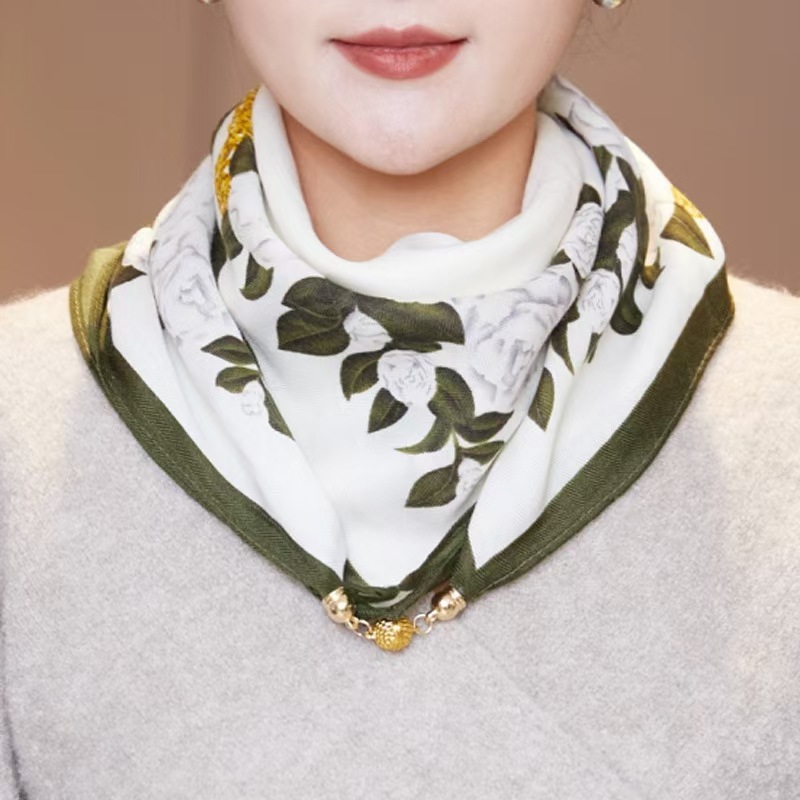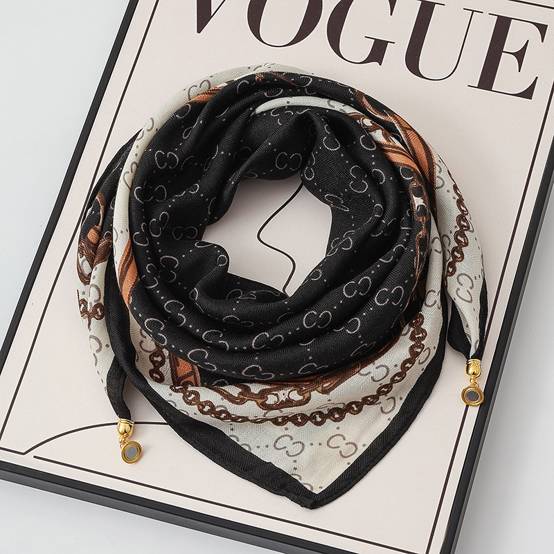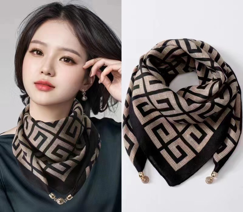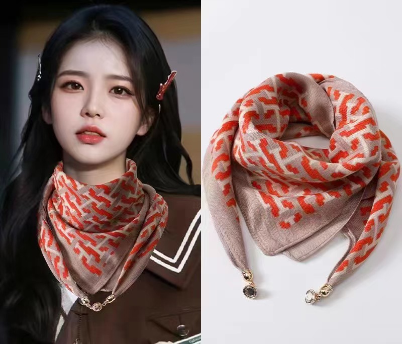 헤링본 프린트 삼각형 스카프 여성 크로스 자기 흡입 버클 봄과 겨울 냉간 따뜻한 스카프 올 매치 서양식 스카프