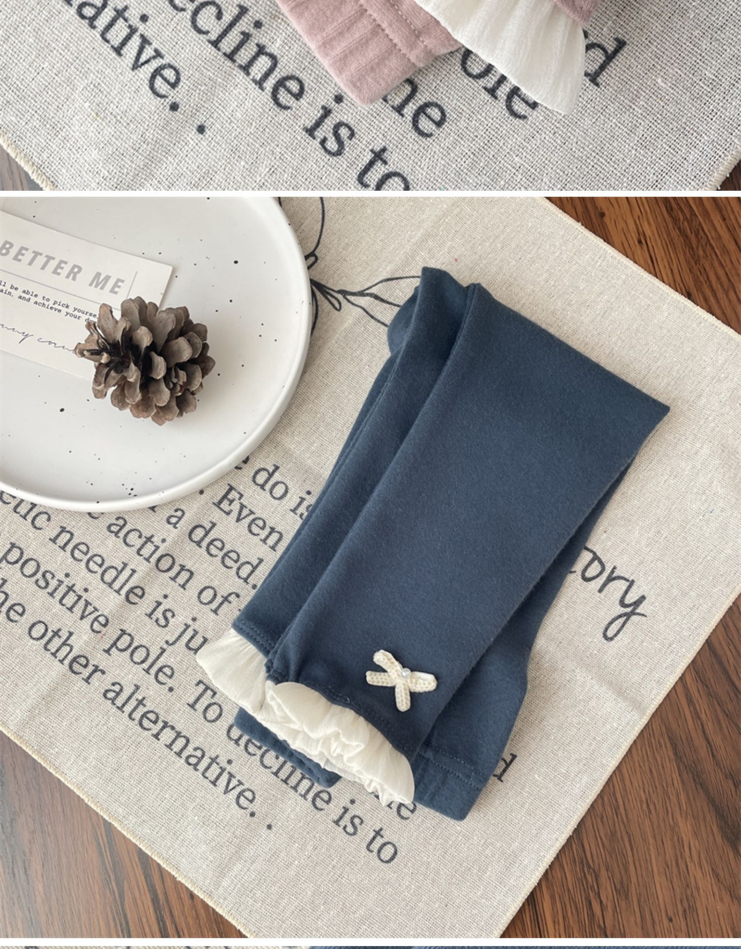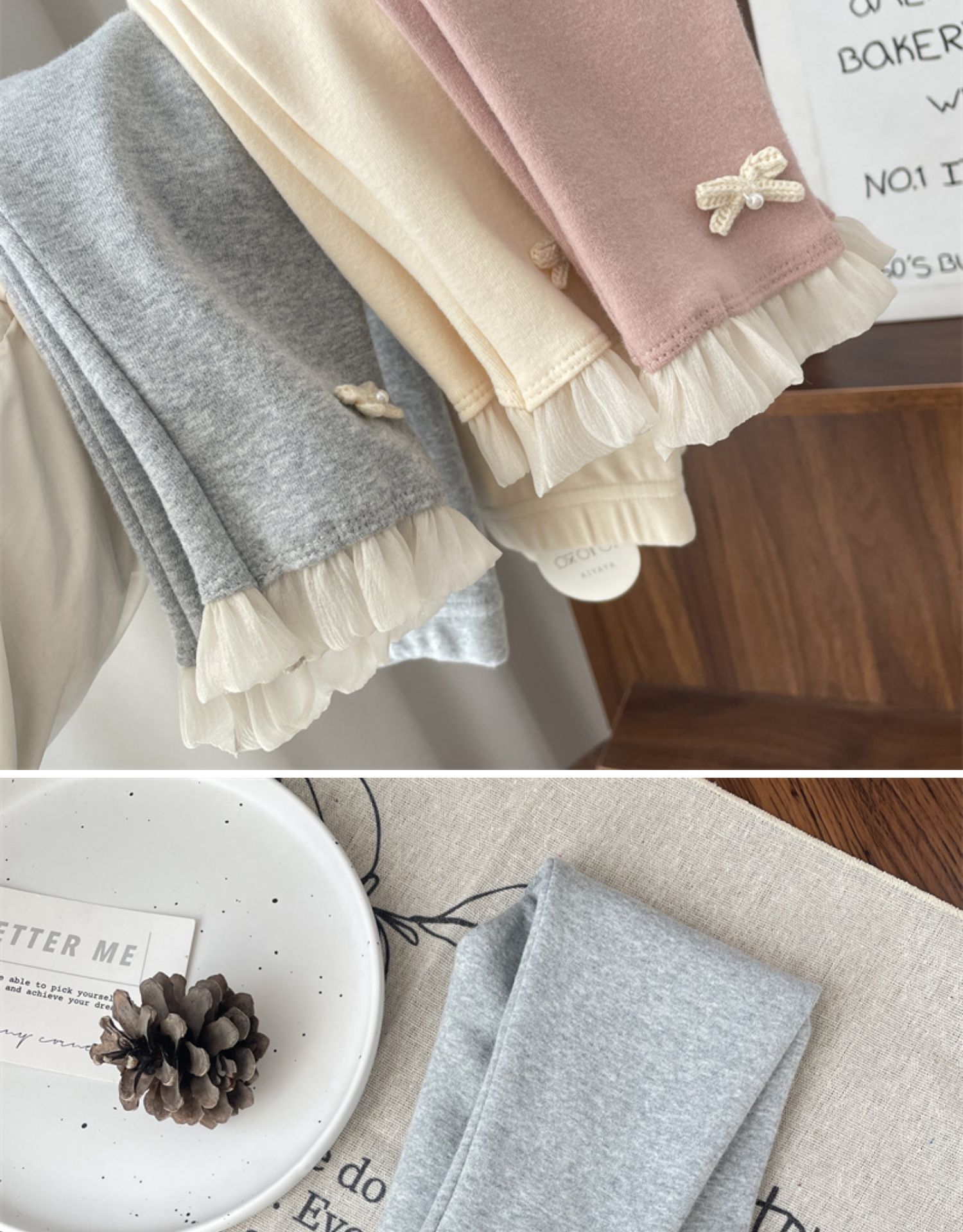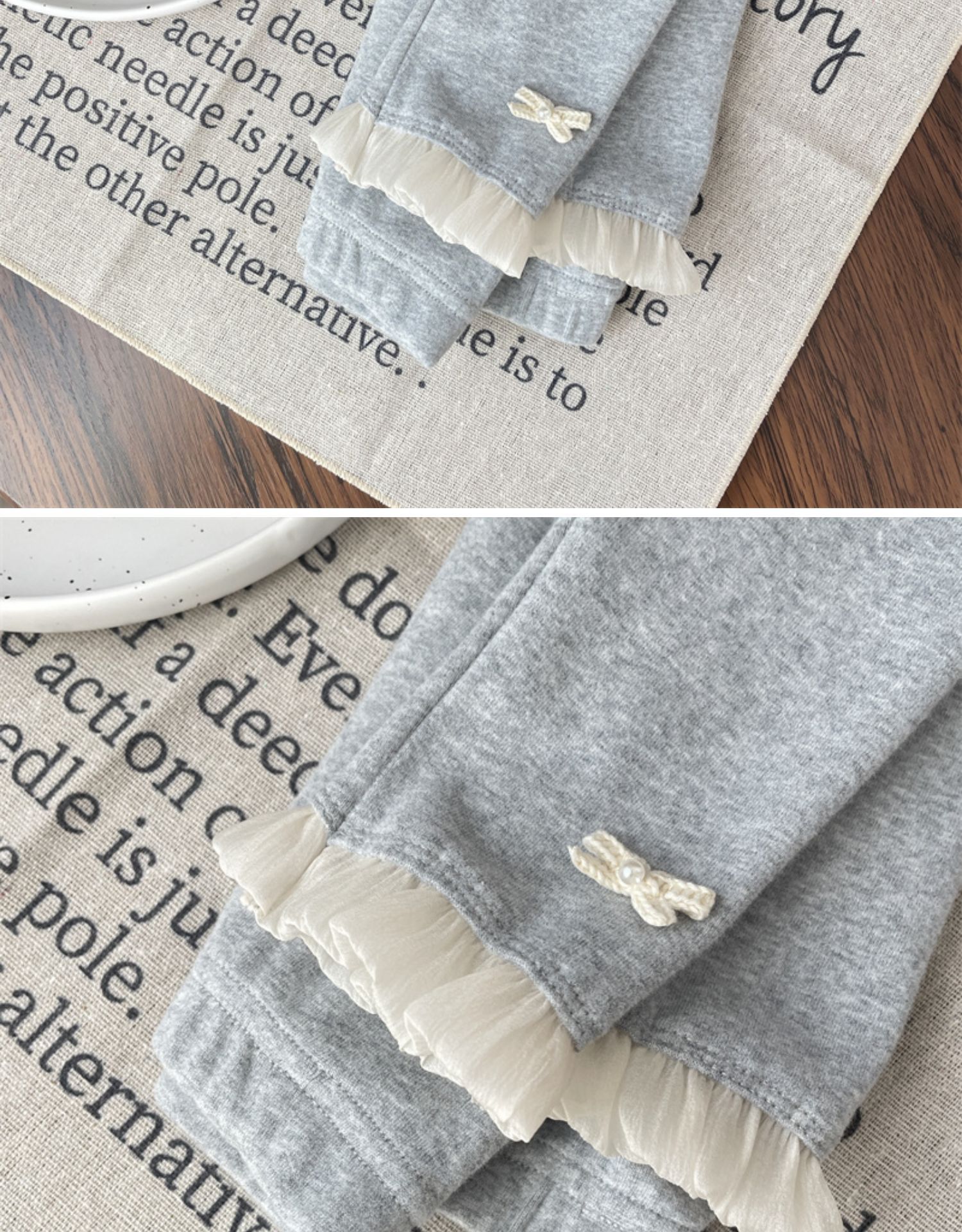 • 회색 활 레이스 레깅스