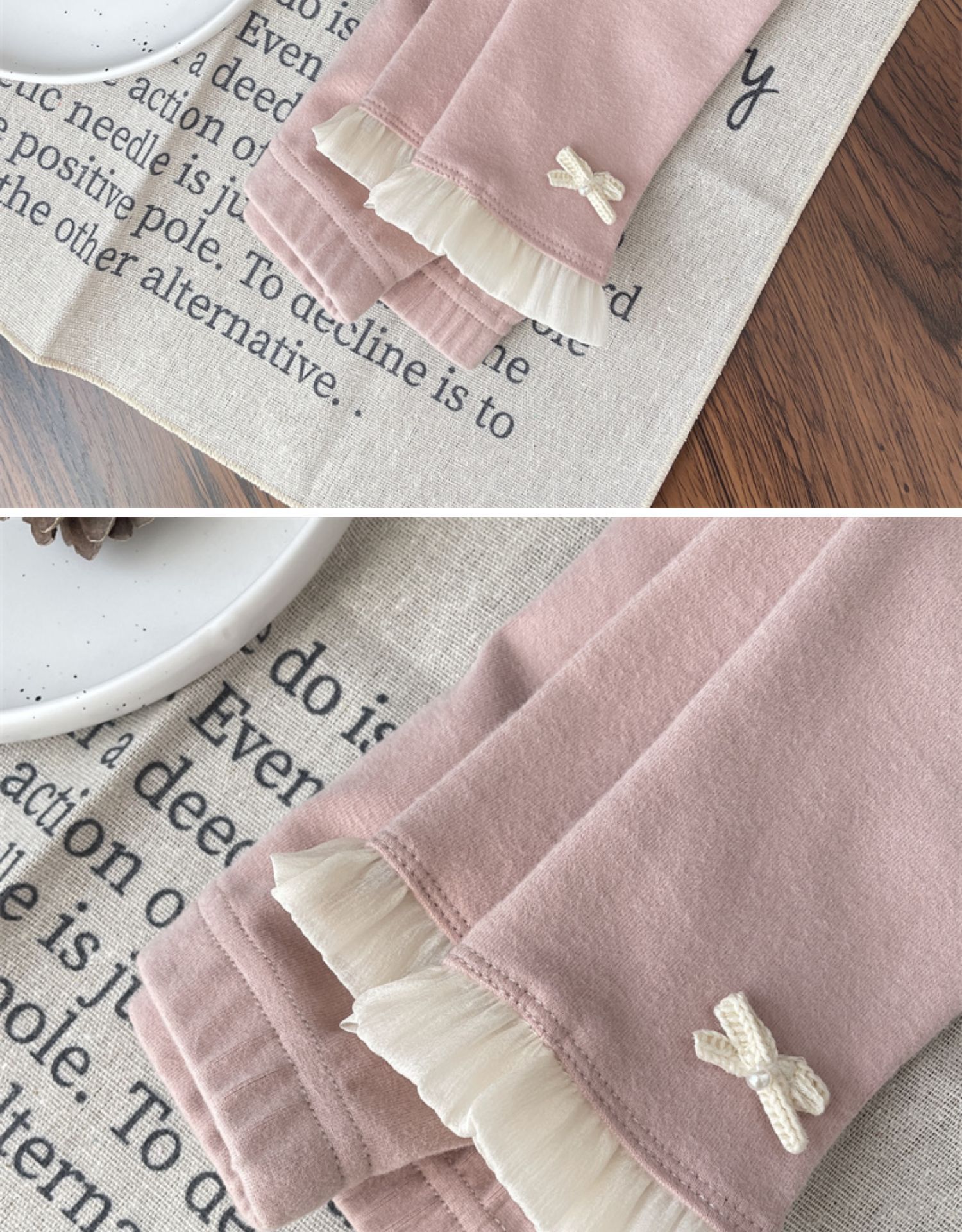 • 핑크 활 레이스 레깅스