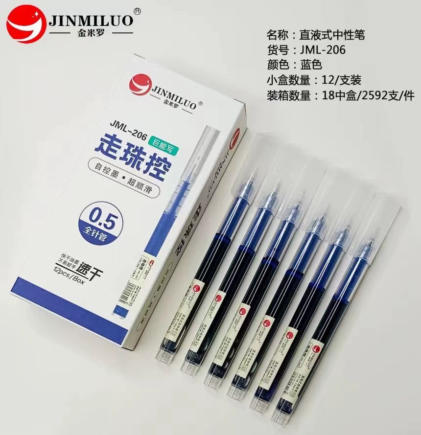 Jinmilo 206 볼펜 도매 빠른 건조 0.5mm 스트레이트-액체 전체 바늘 브러시 질문 볼펜 학생 젤 펜스토어 가기