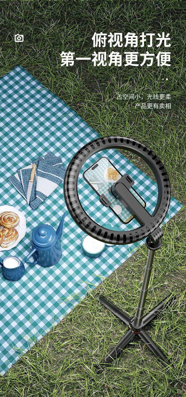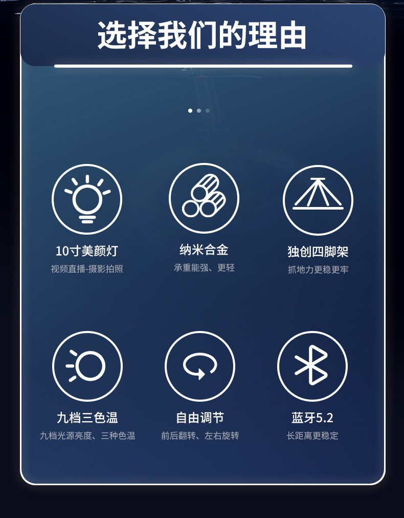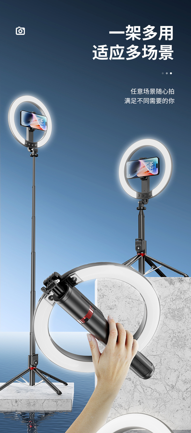 • P225Q (전문 뷰티 램프 + 충전 블루투스 원격 제어 + 알루미늄 합금 튜브 + 금속 용골 브래킷)