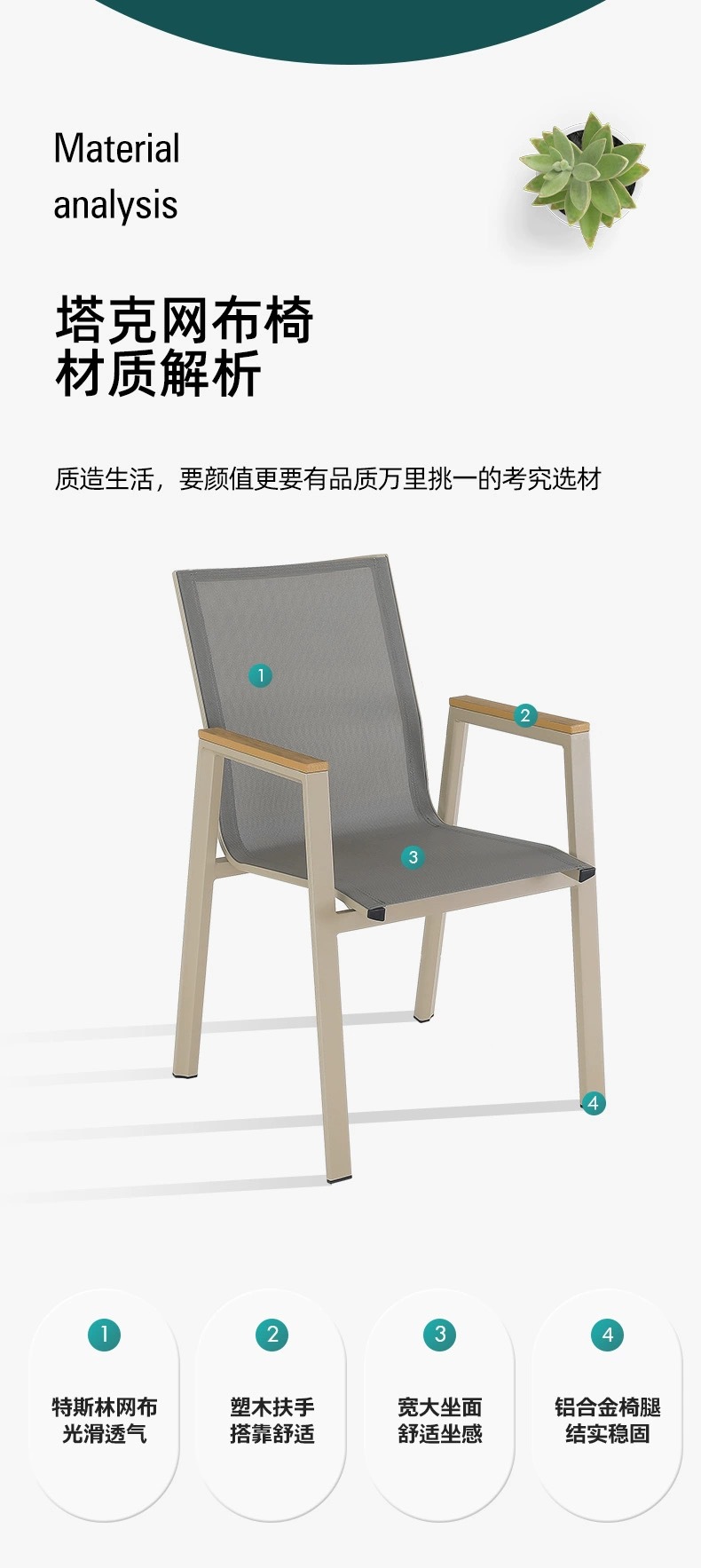 • 플라스틱 목재 팔걸이 메쉬 의자