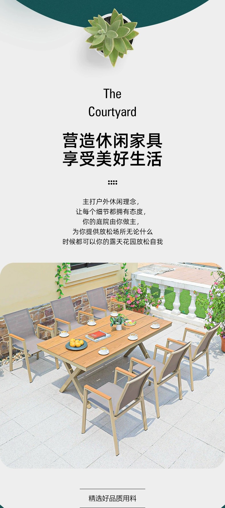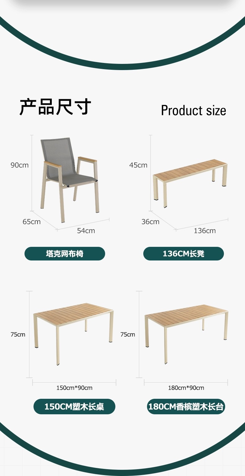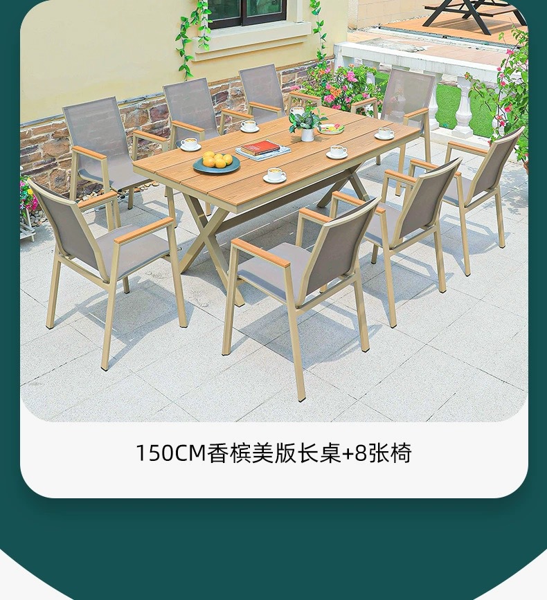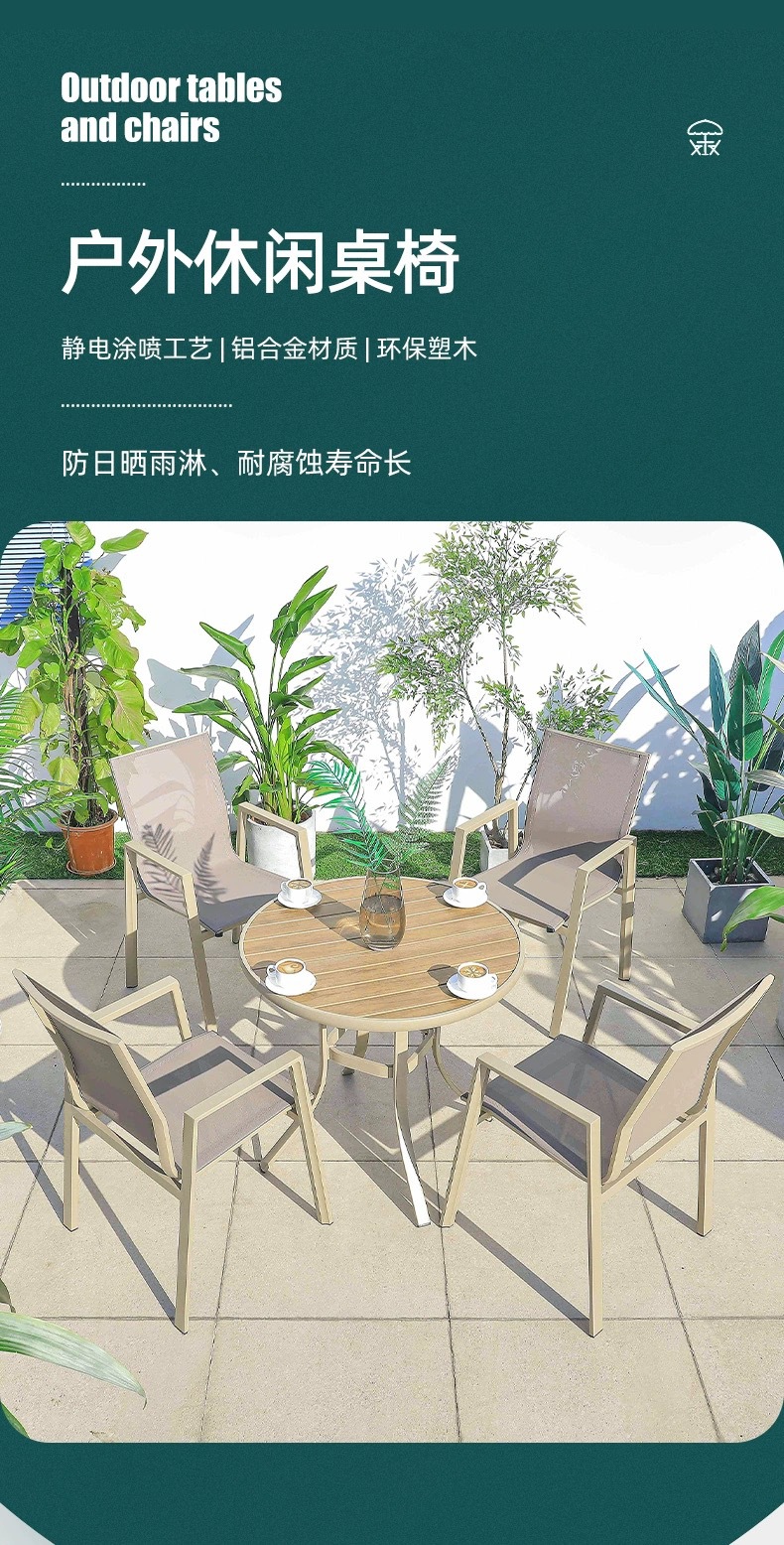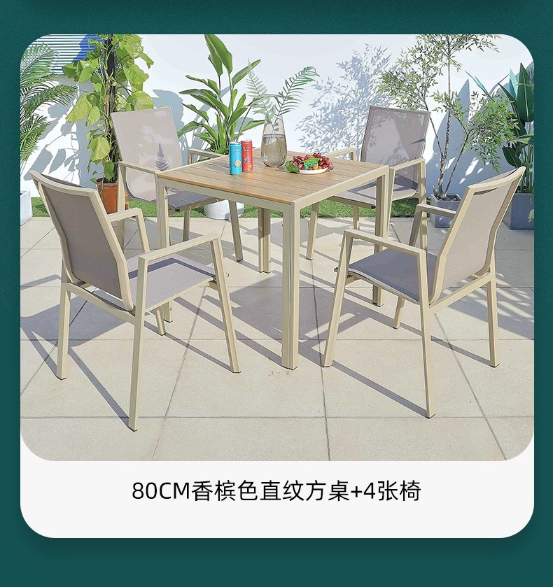 야외 플라스틱 나무 테이블과 의자 안뜰 부식 방지 목재 야외 레저 테이블 정원 야외 발코니 커피 숍 테이블과 의자 조합스토어 가기