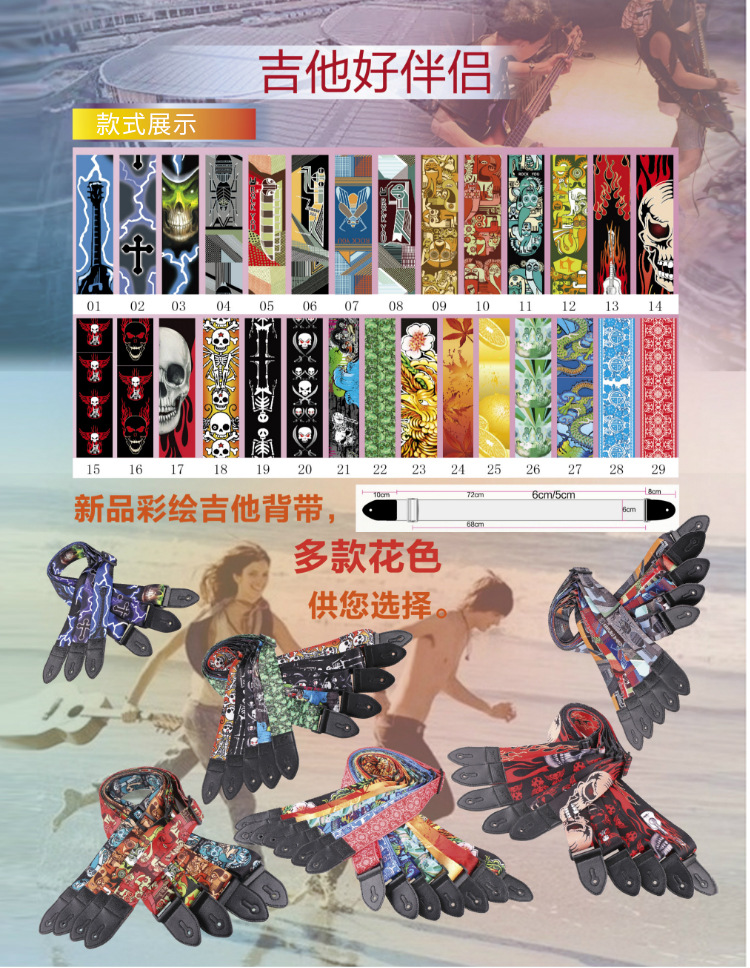 맞춤형 50MM 배송 포크 기타 인기 스트랩 어쿠스틱 기타 숄더 스트랩 블랙 스트랩 도매 기타 스트랩스토어 가기