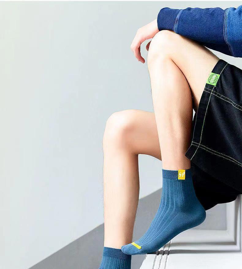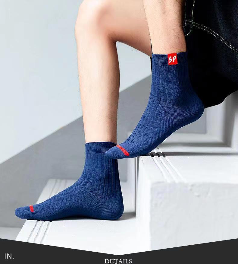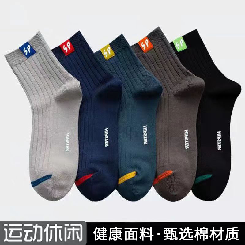 양말 남성용 종아리 중간 양말 캐주얼 스포츠 양말 통기성 땀 흡수 비즈니스 양말 가을 겨울 사계절 문자 sp 트렌디 양말 면스토어 가기