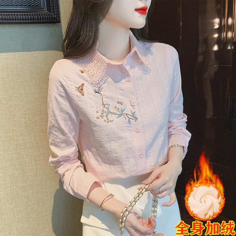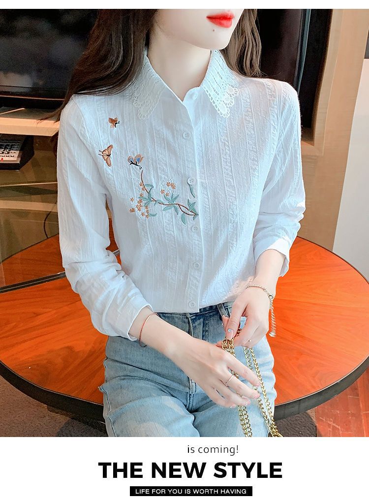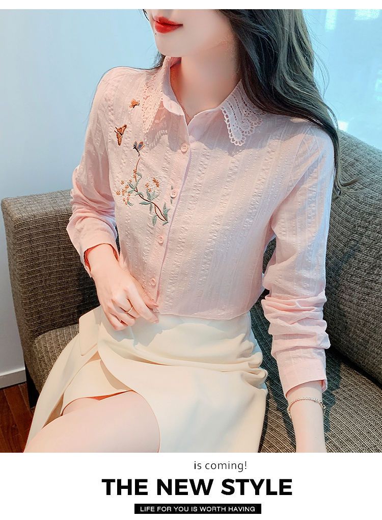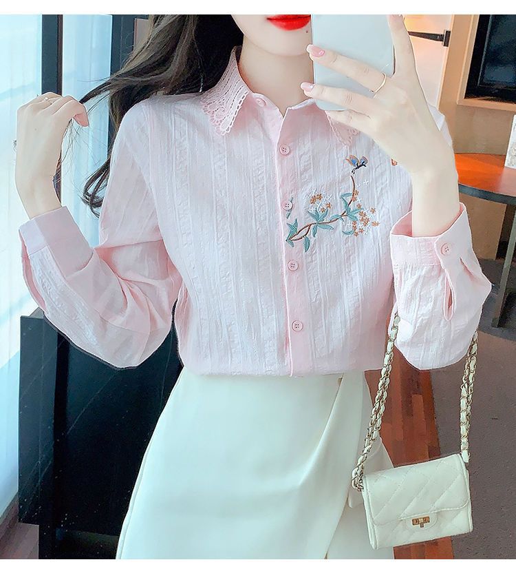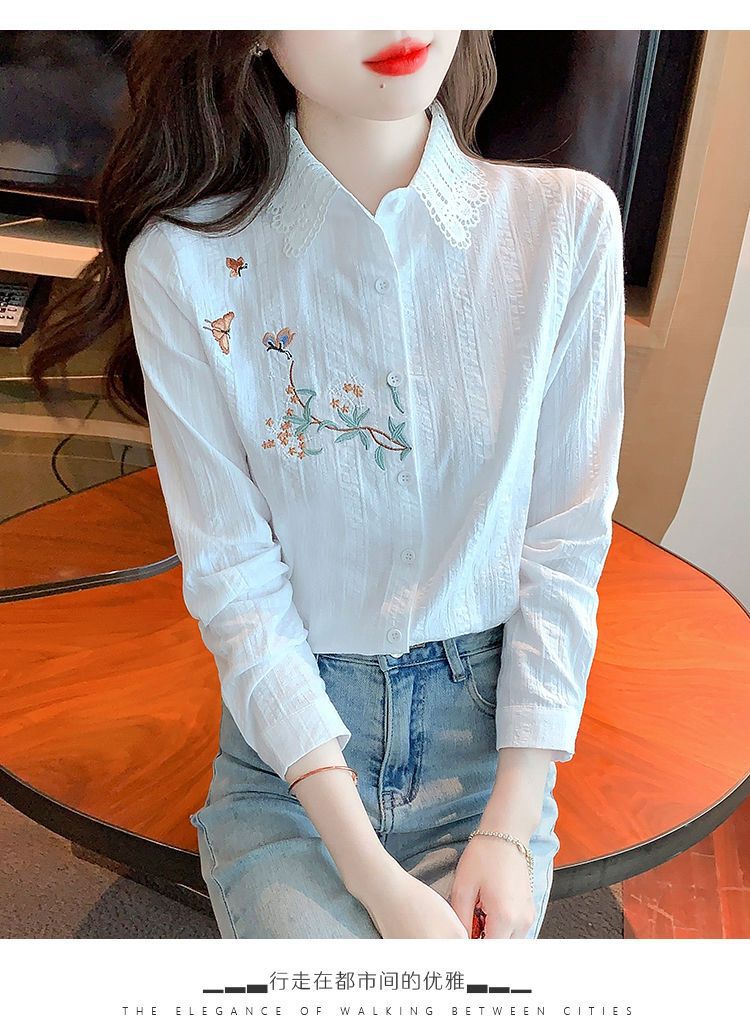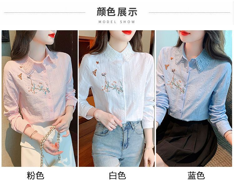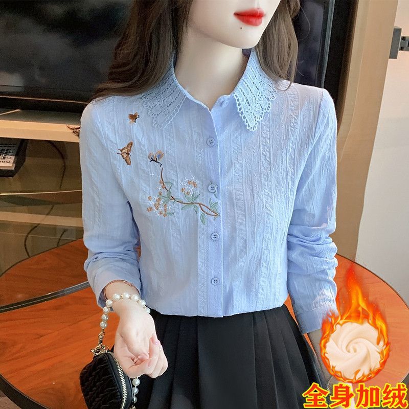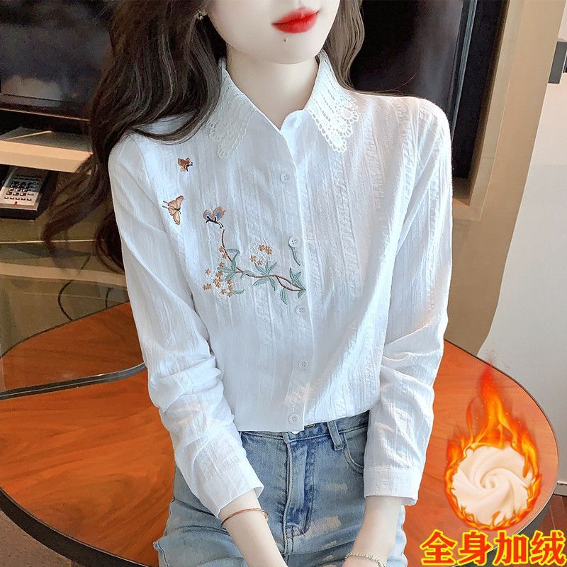 2025년 봄 가을 신상 패션 자수 순면 플리스 셔츠 여성 긴팔 면 셔츠 여성용 세련된 상의스토어 가기