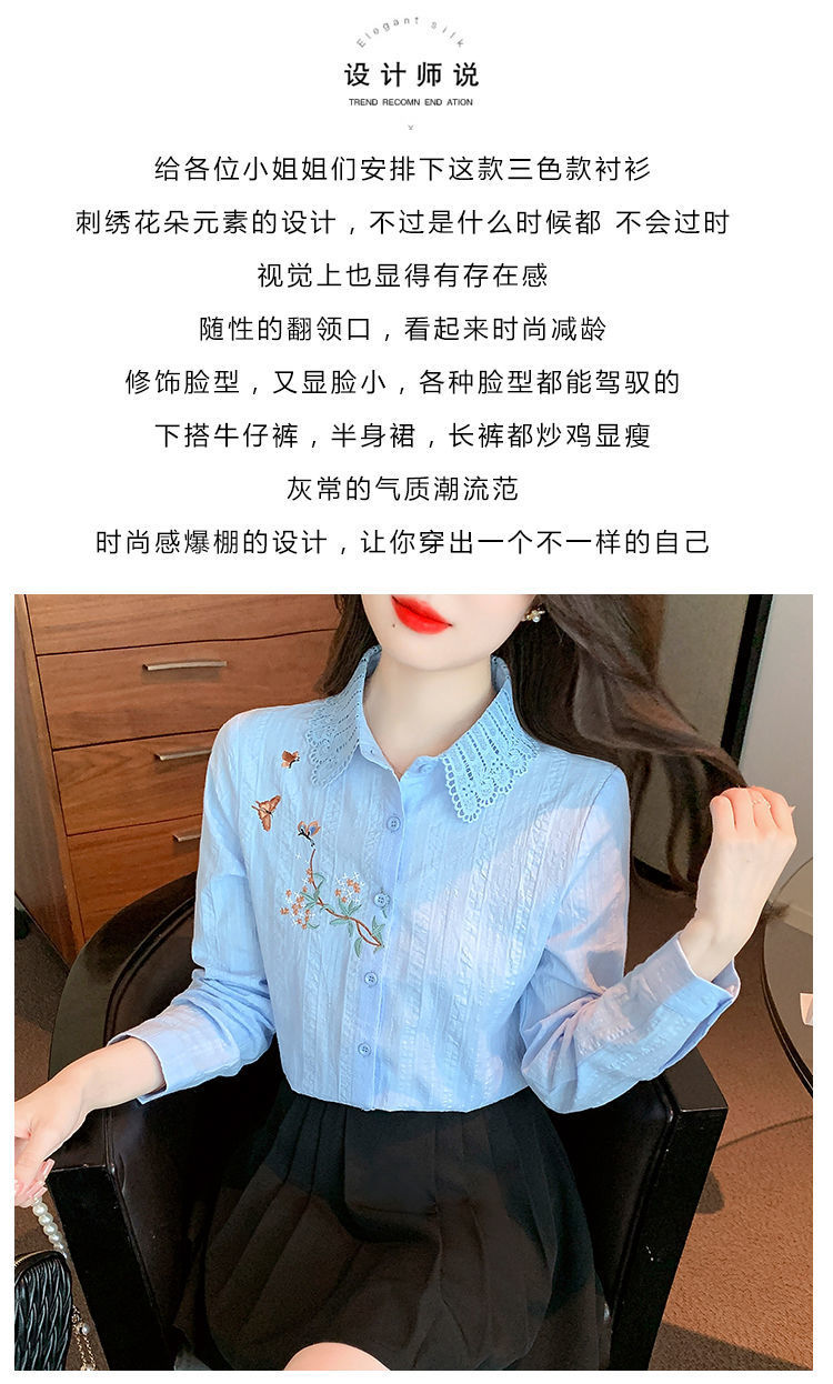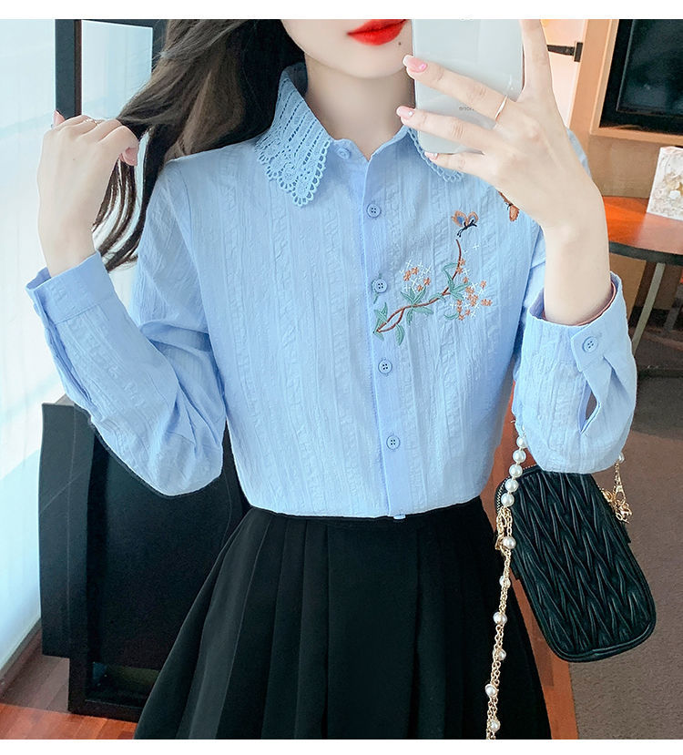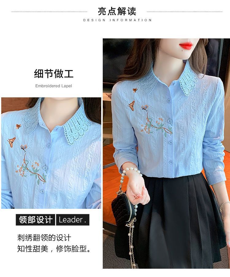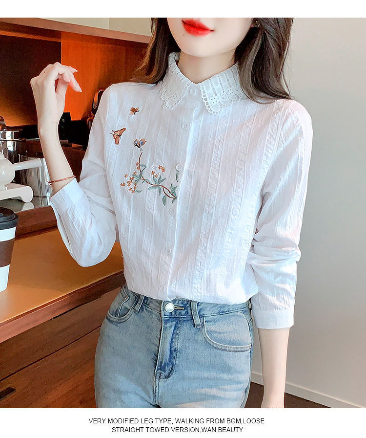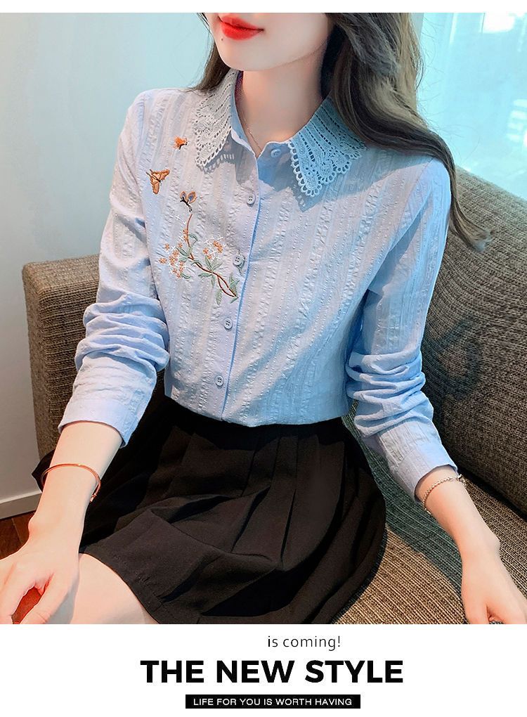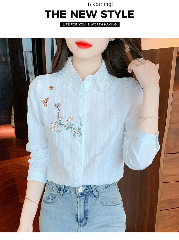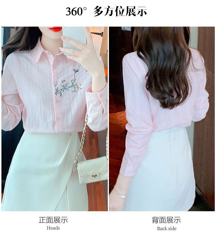 2025년 봄 가을 신상 패션 자수 순면 플리스 셔츠 여성 긴팔 면 셔츠 여성용 세련된 상의스토어 가기