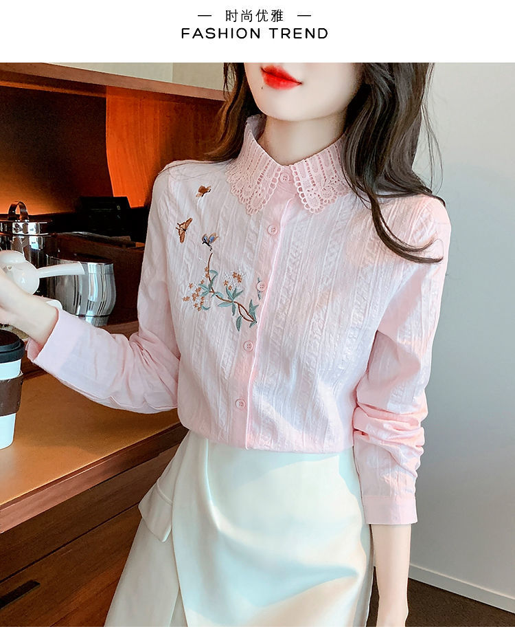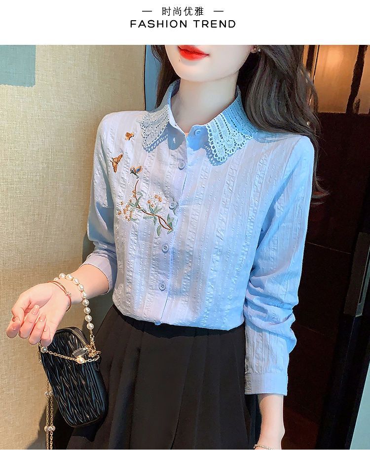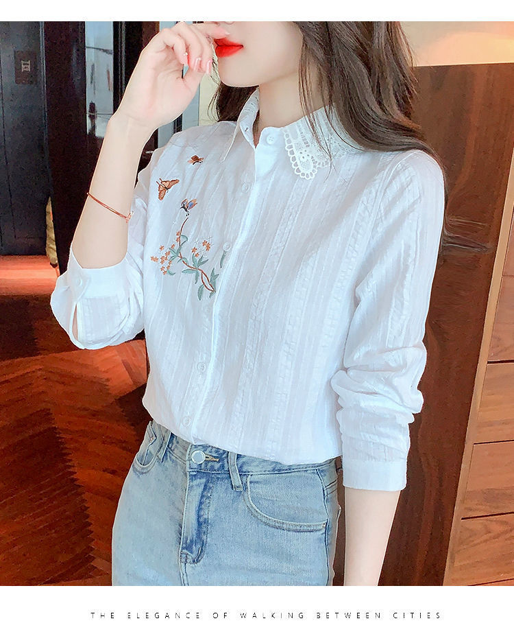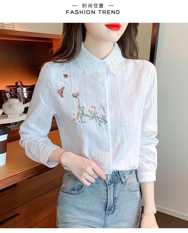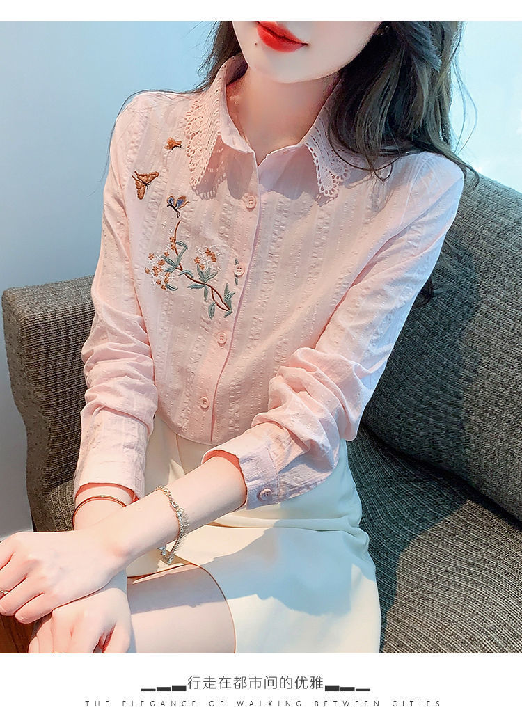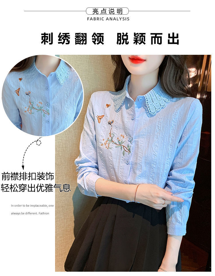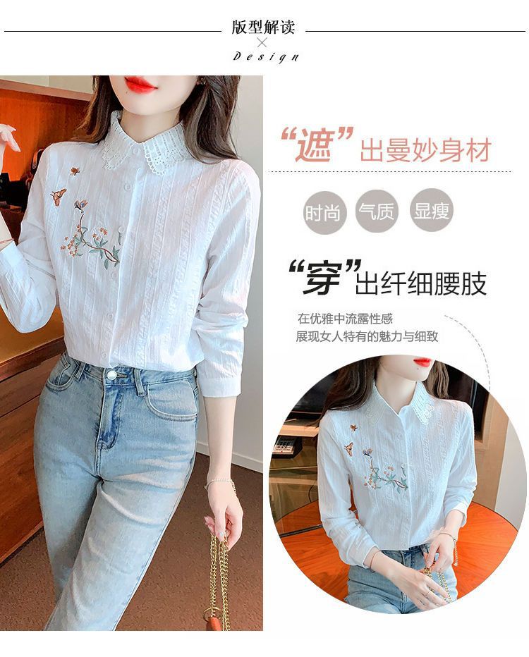2025년 봄 가을 신상 패션 자수 순면 플리스 셔츠 여성 긴팔 면 셔츠 여성용 세련된 상의스토어 가기