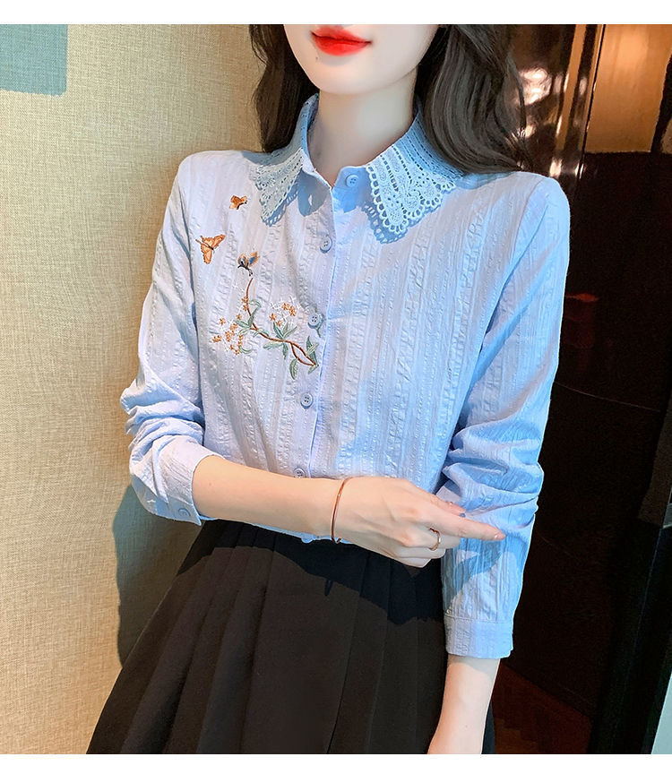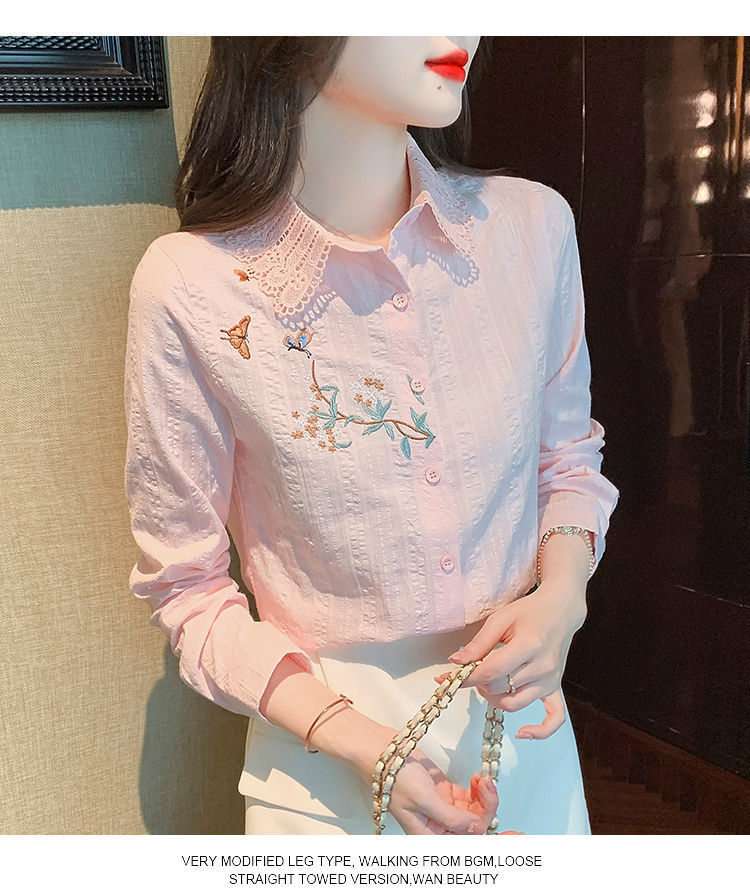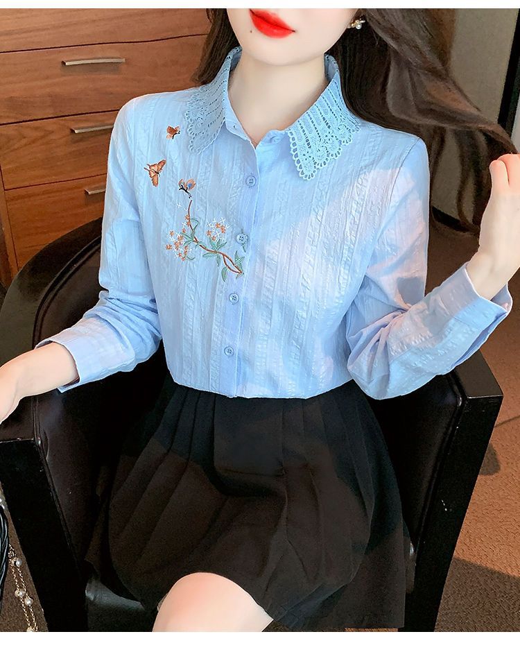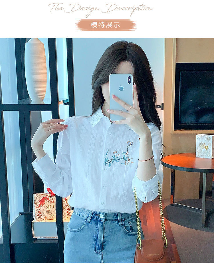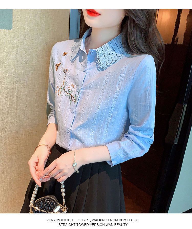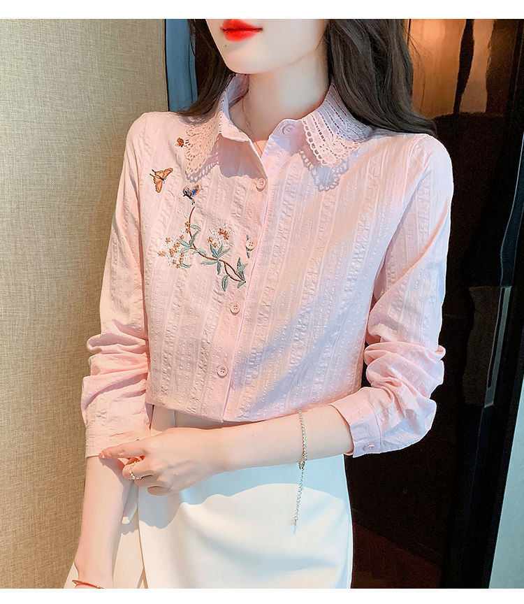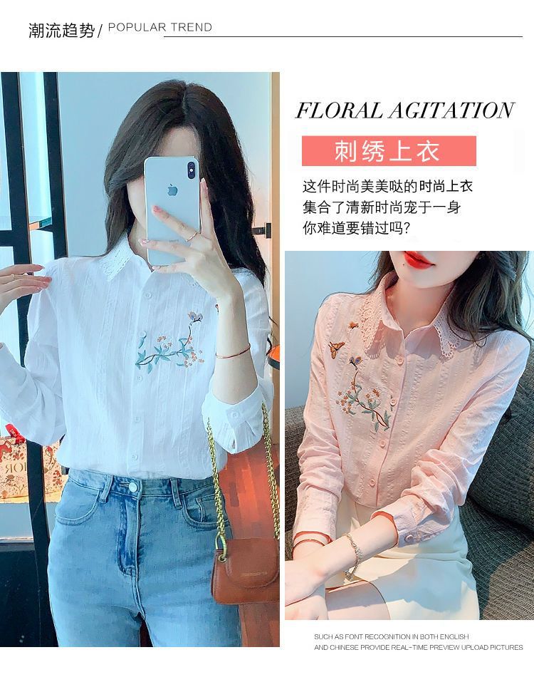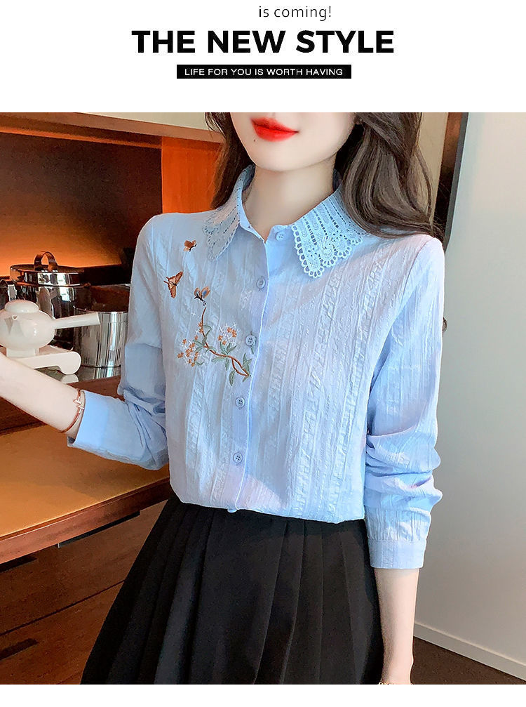 2025년 봄 가을 신상 패션 자수 순면 플리스 셔츠 여성 긴팔 면 셔츠 여성용 세련된 상의스토어 가기