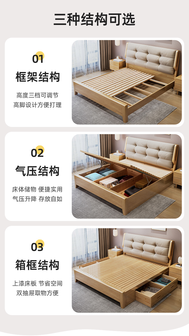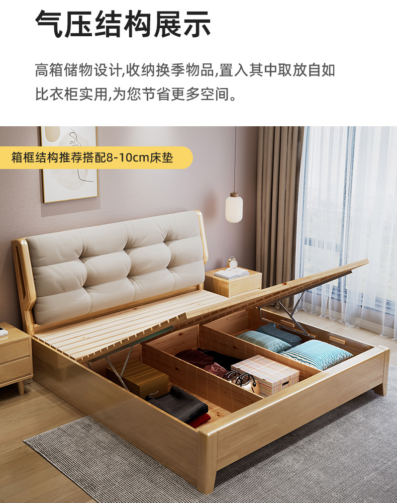 크림 fengyunduo 단단한 나무 침대 부드러운 공기 압력 저장 침대 마스터 침실 1.8 m 더블 웨딩 침대 1.5 작은 아파트 침대