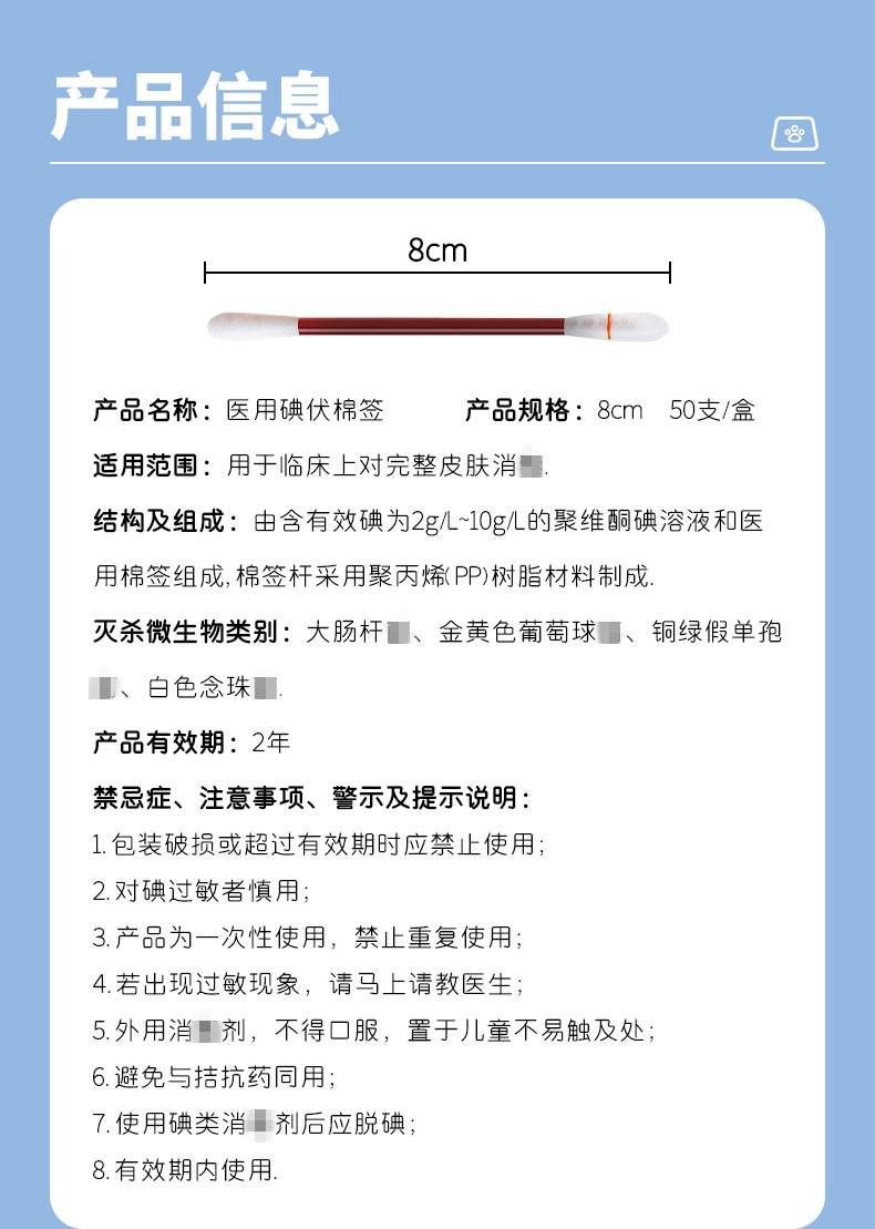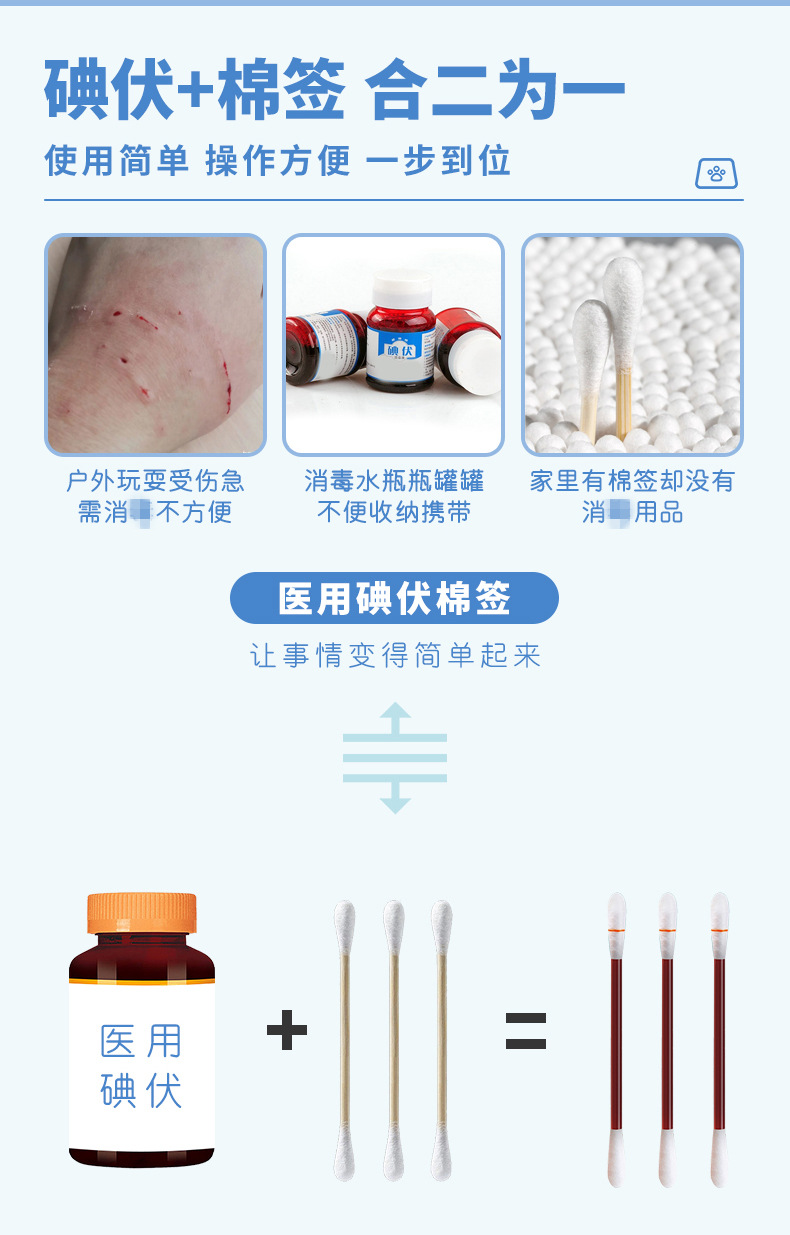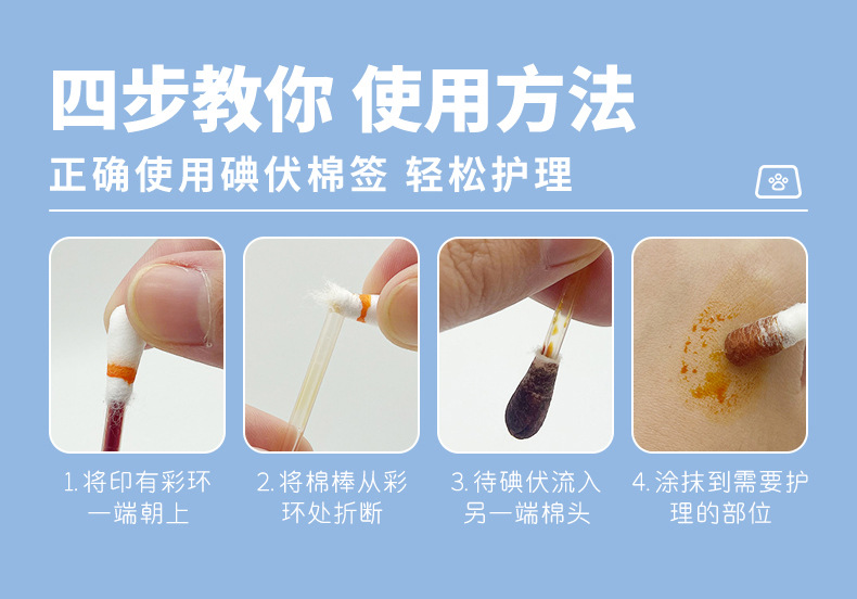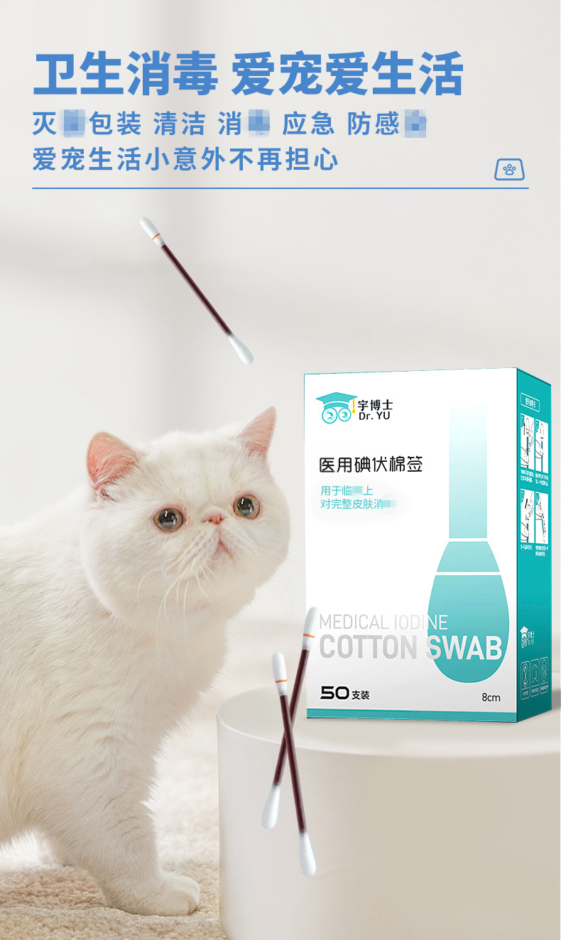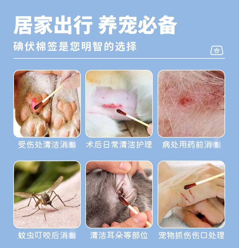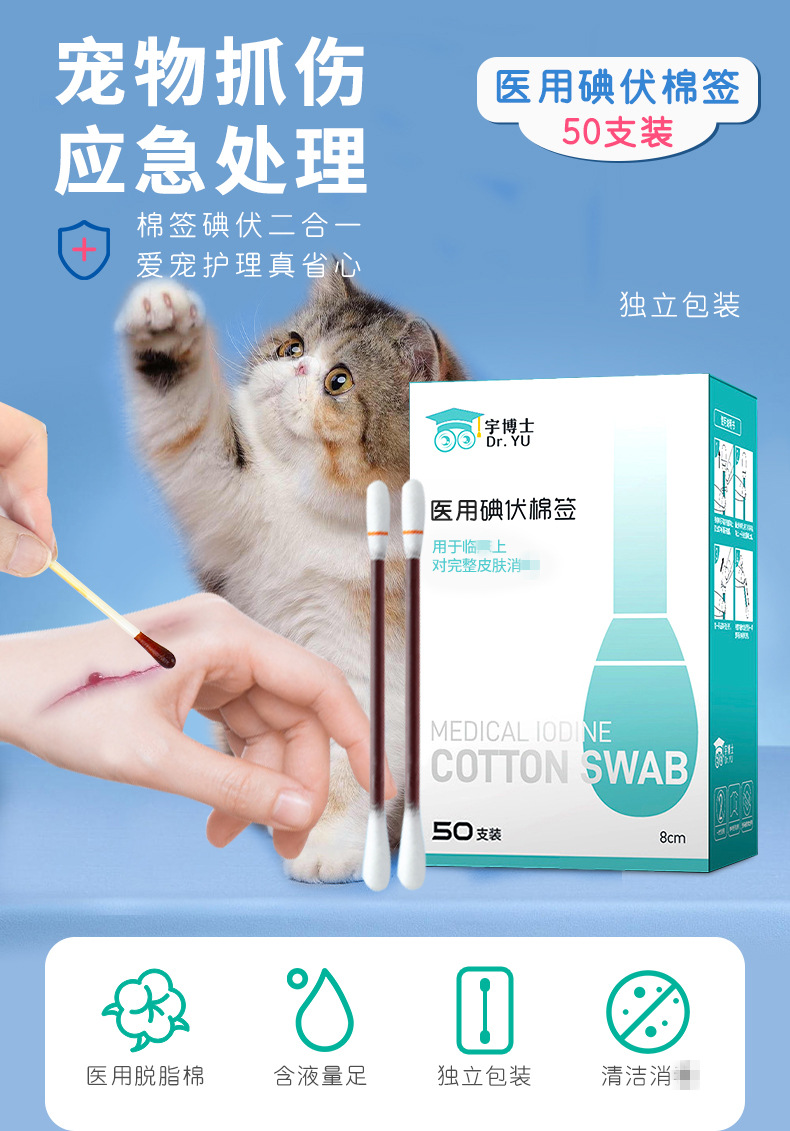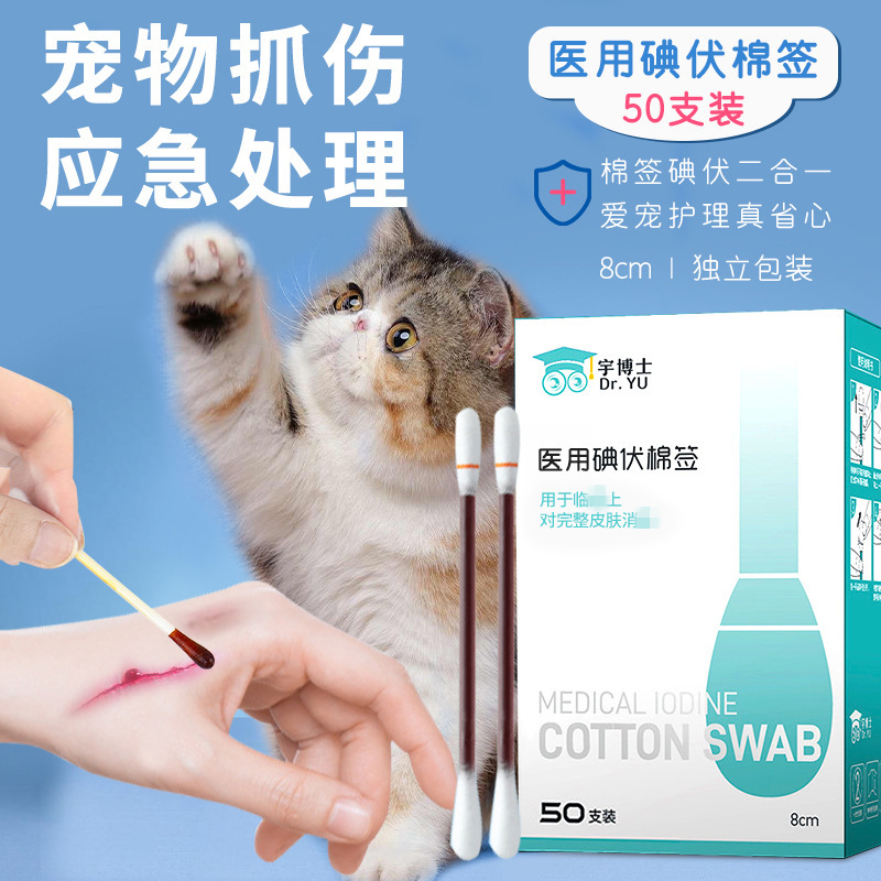 애완 동물 iodophor 면봉 50 박스형 개 고양이 긁힘 모기에 물린 수술 후 외상 관리 면봉 도매스토어 가기