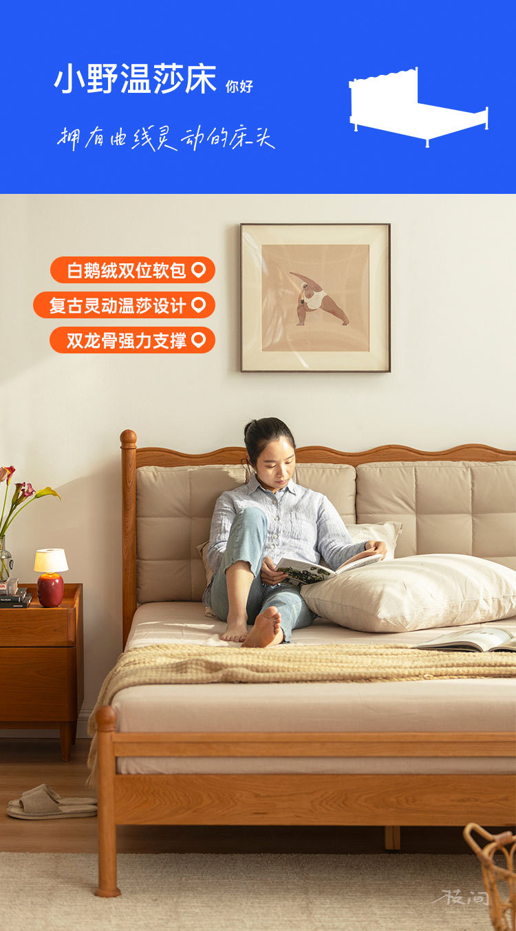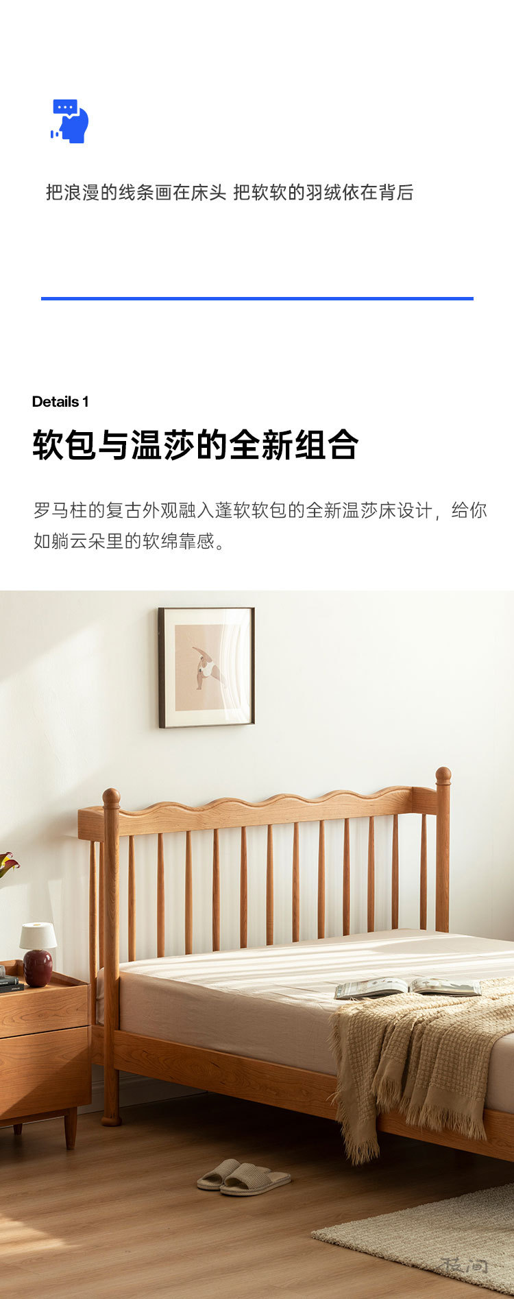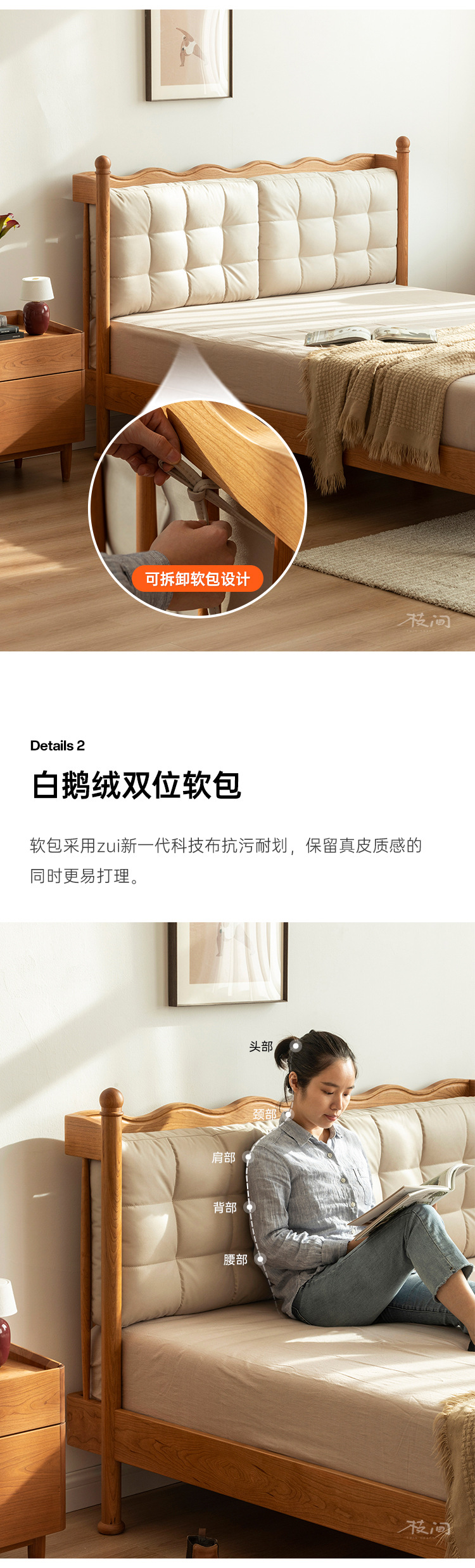 북유럽 단단한 나무 윈저 침대 일본 복고풍 체리 나무 로그 더블 침대 모든 단단한 나무 기술 가죽 부드러운 침대스토어 가기