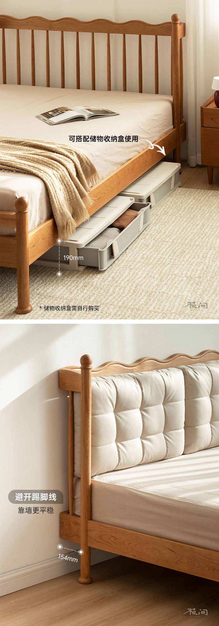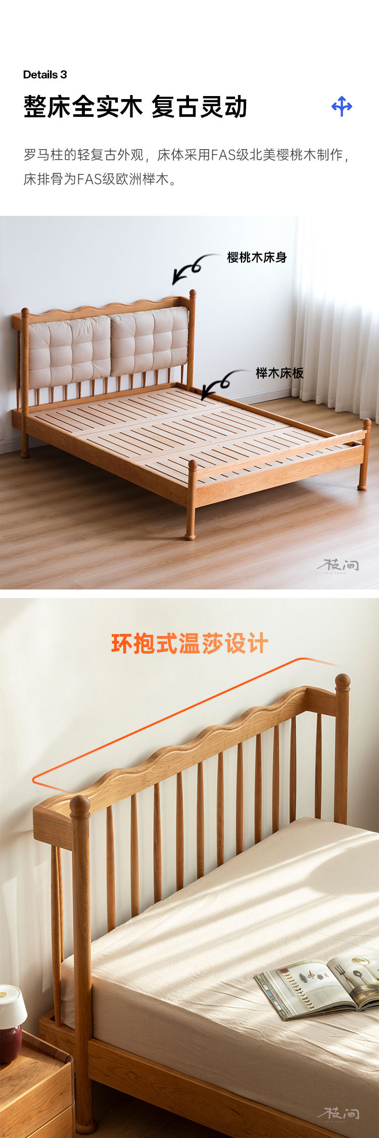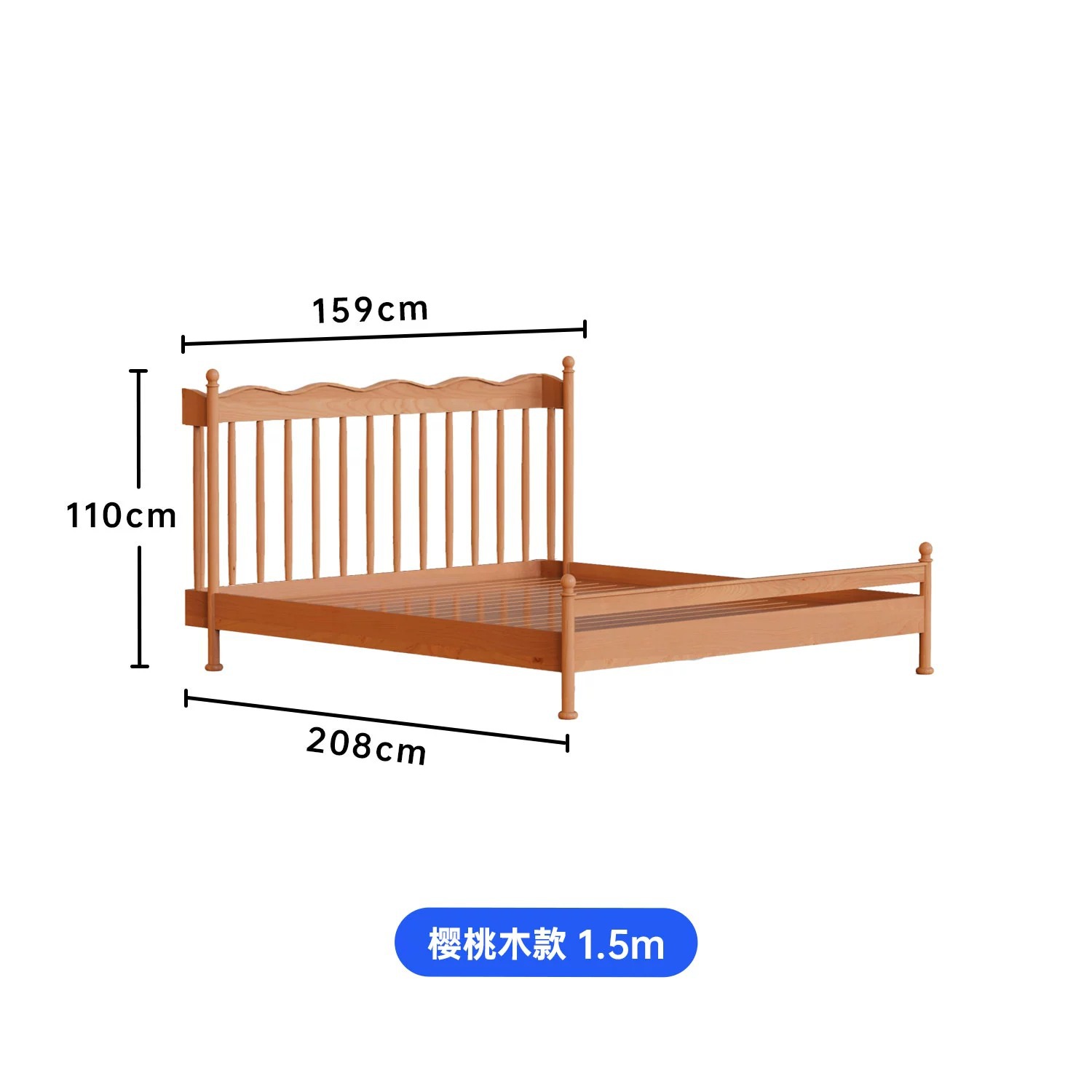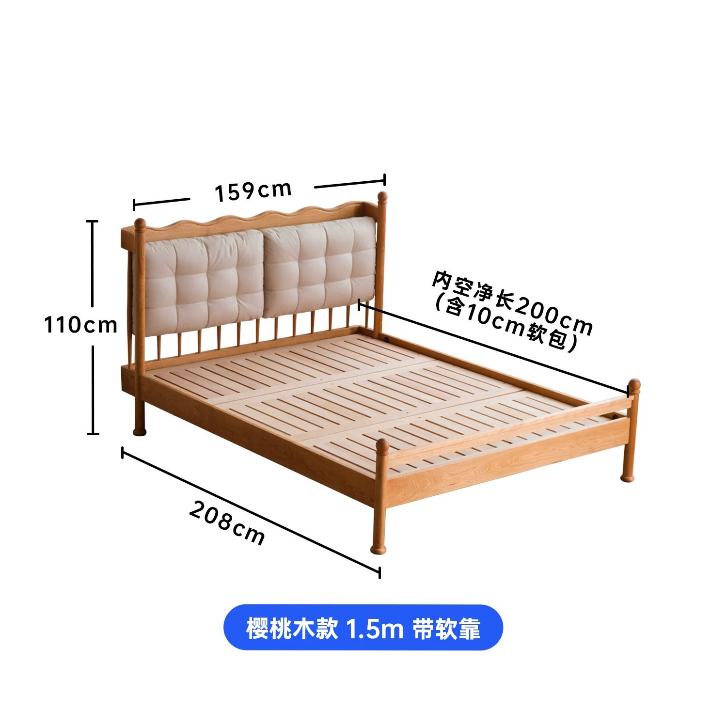 북유럽 단단한 나무 윈저 침대 일본 복고풍 체리 나무 로그 더블 침대 모든 단단한 나무 기술 가죽 부드러운 침대