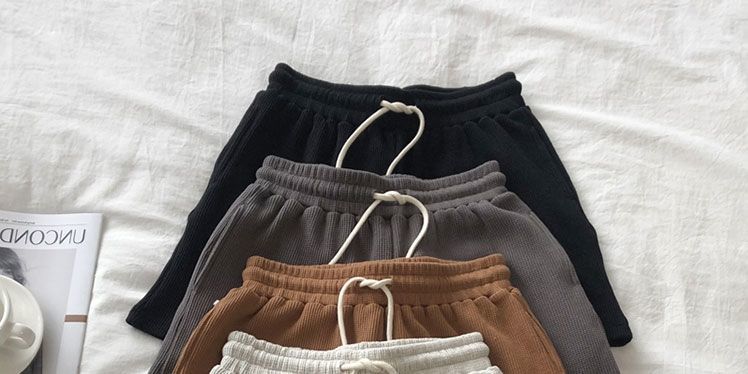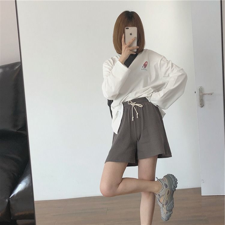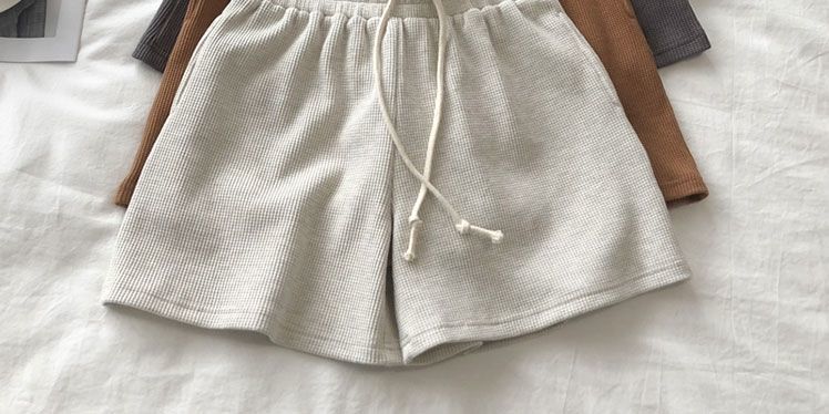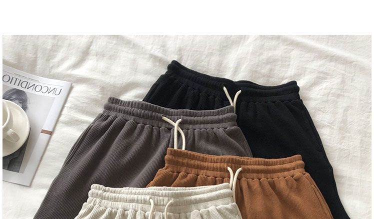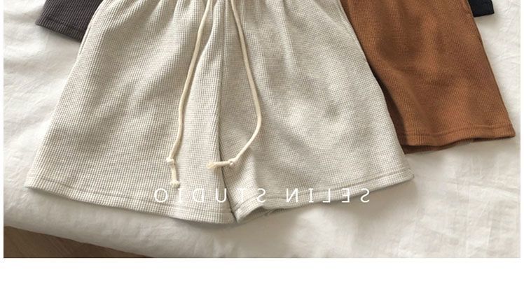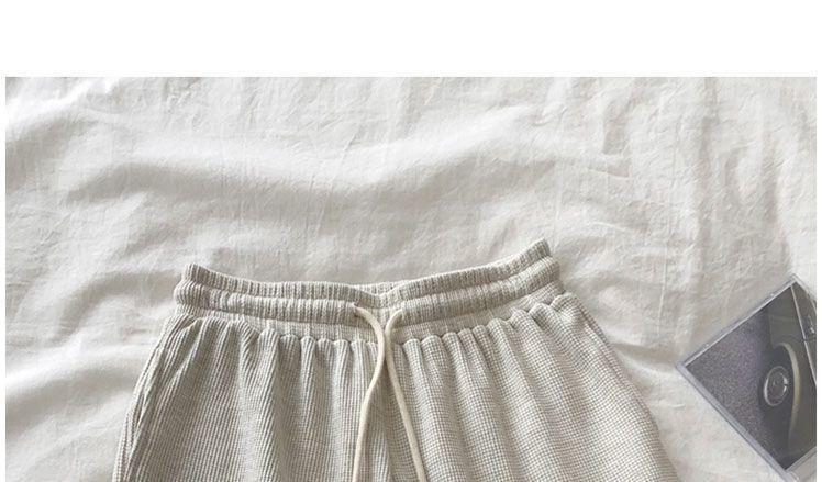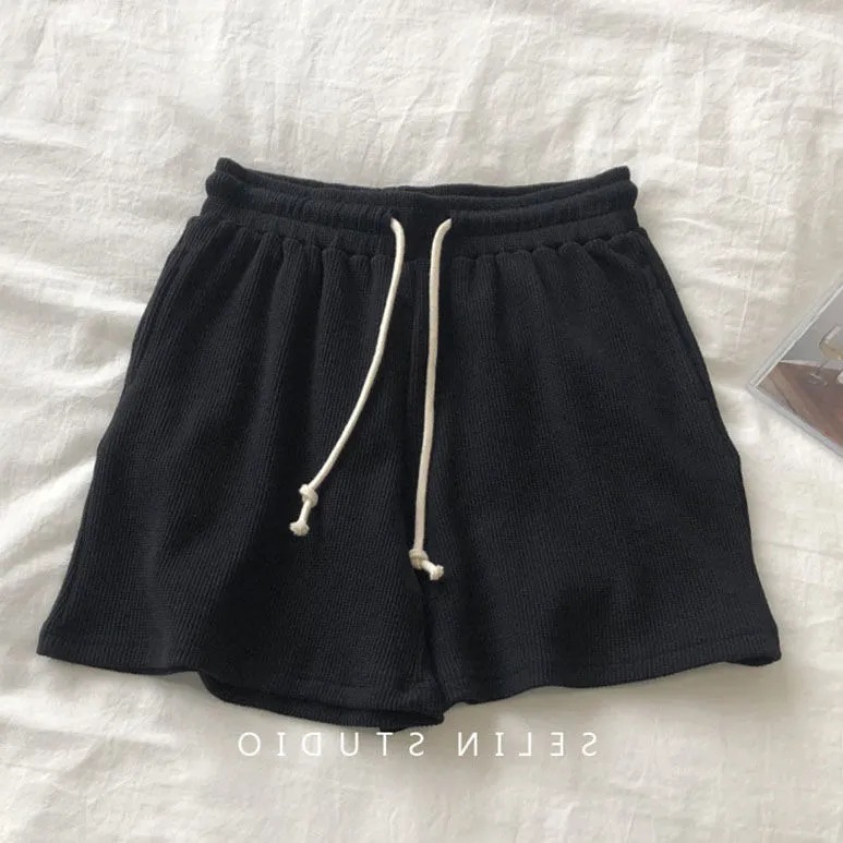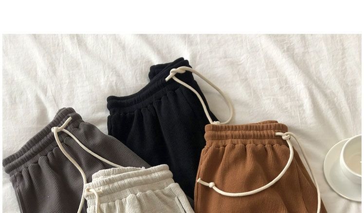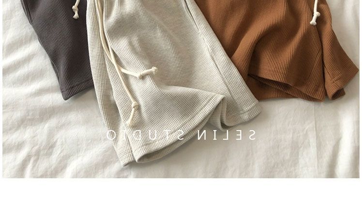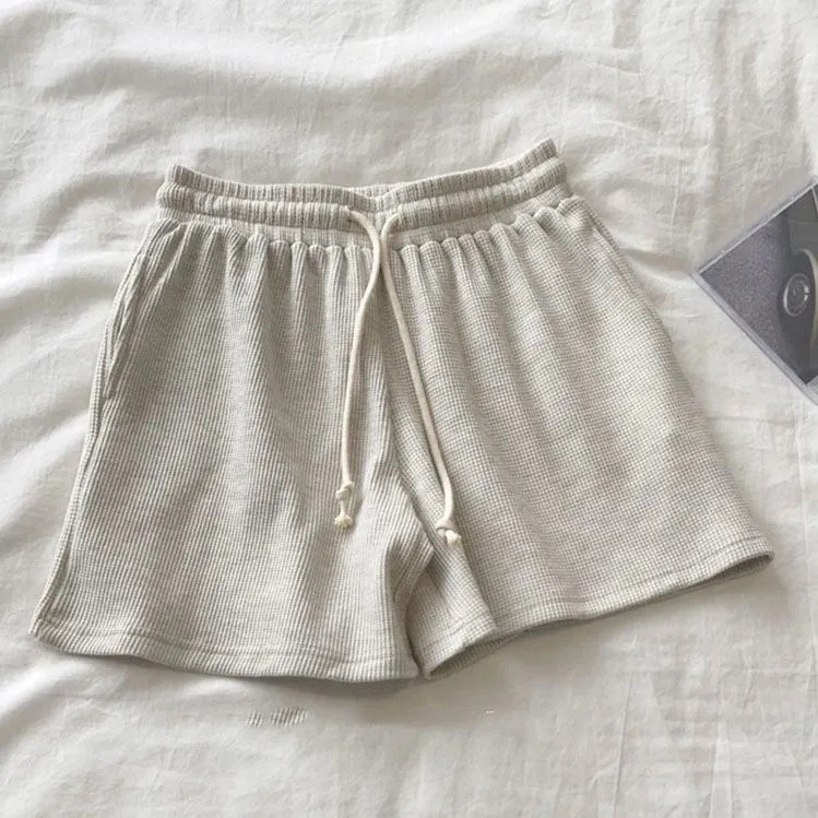 여름 얇은 와플 반바지 여성의 느슨한 홈 캐주얼 파자마 바지 넓은 다리 다목적 탄성 허리 스포츠 바지 핫팬츠