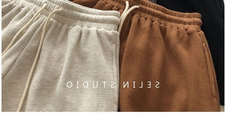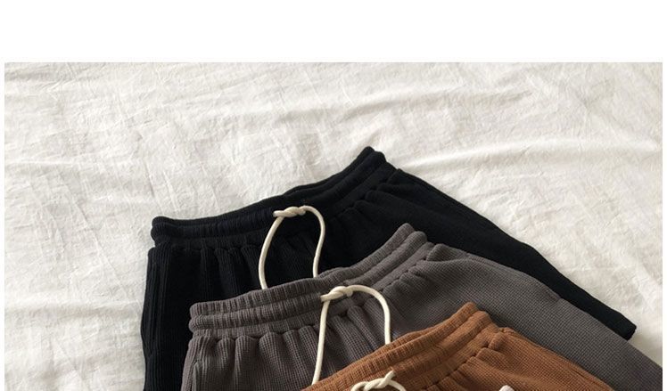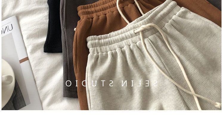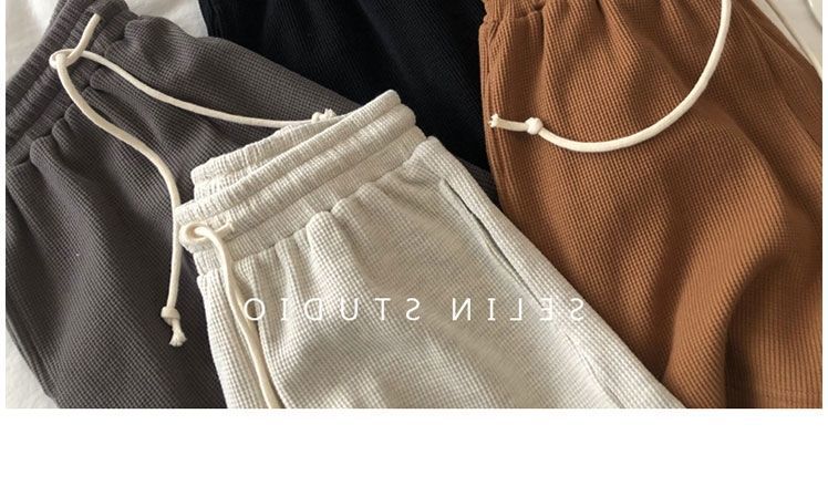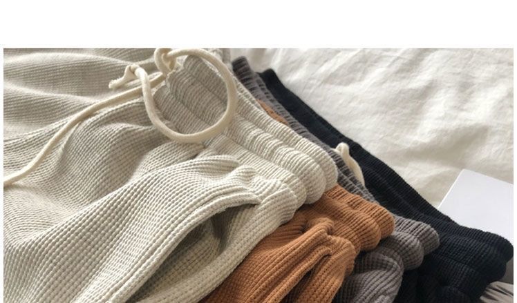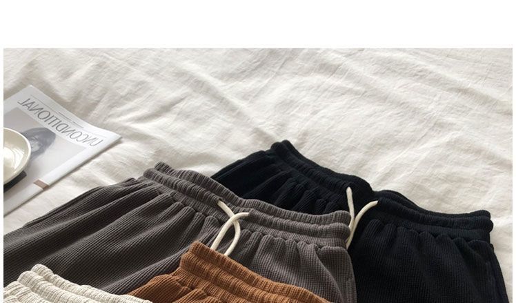 여름 얇은 와플 반바지 여성의 느슨한 홈 캐주얼 파자마 바지 넓은 다리 다목적 탄성 허리 스포츠 바지 핫팬츠스토어 가기