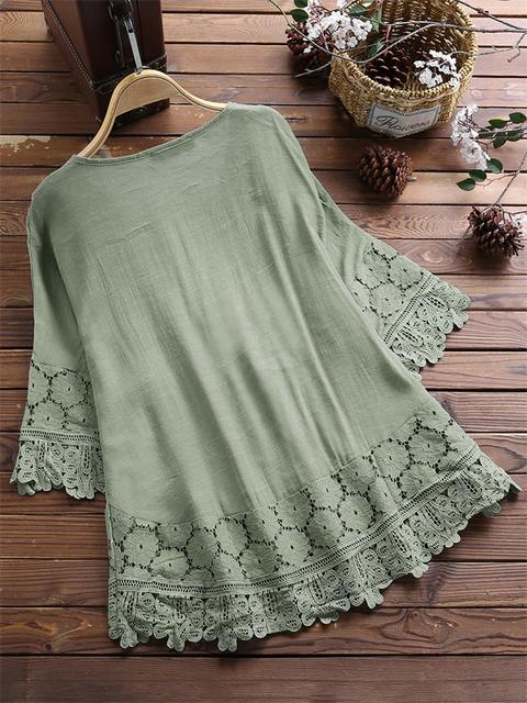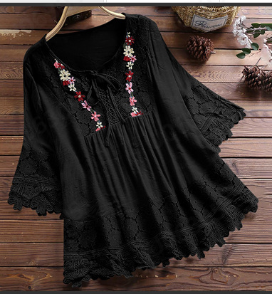 새로운 2022 년 여름 아마존 코튼 및 리넨 스티칭 레이스 우아한 유럽과 미국의 V 넥 루즈 여성 탑