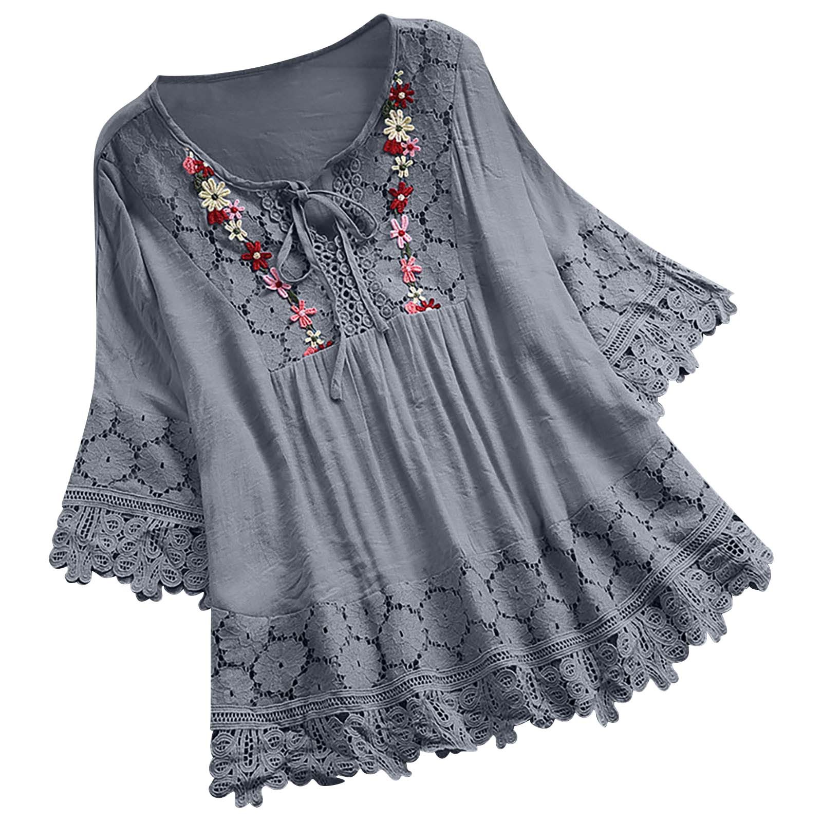 새로운 2022 년 여름 아마존 코튼 및 리넨 스티칭 레이스 우아한 유럽과 미국의 V 넥 루즈 여성 탑스토어 가기
