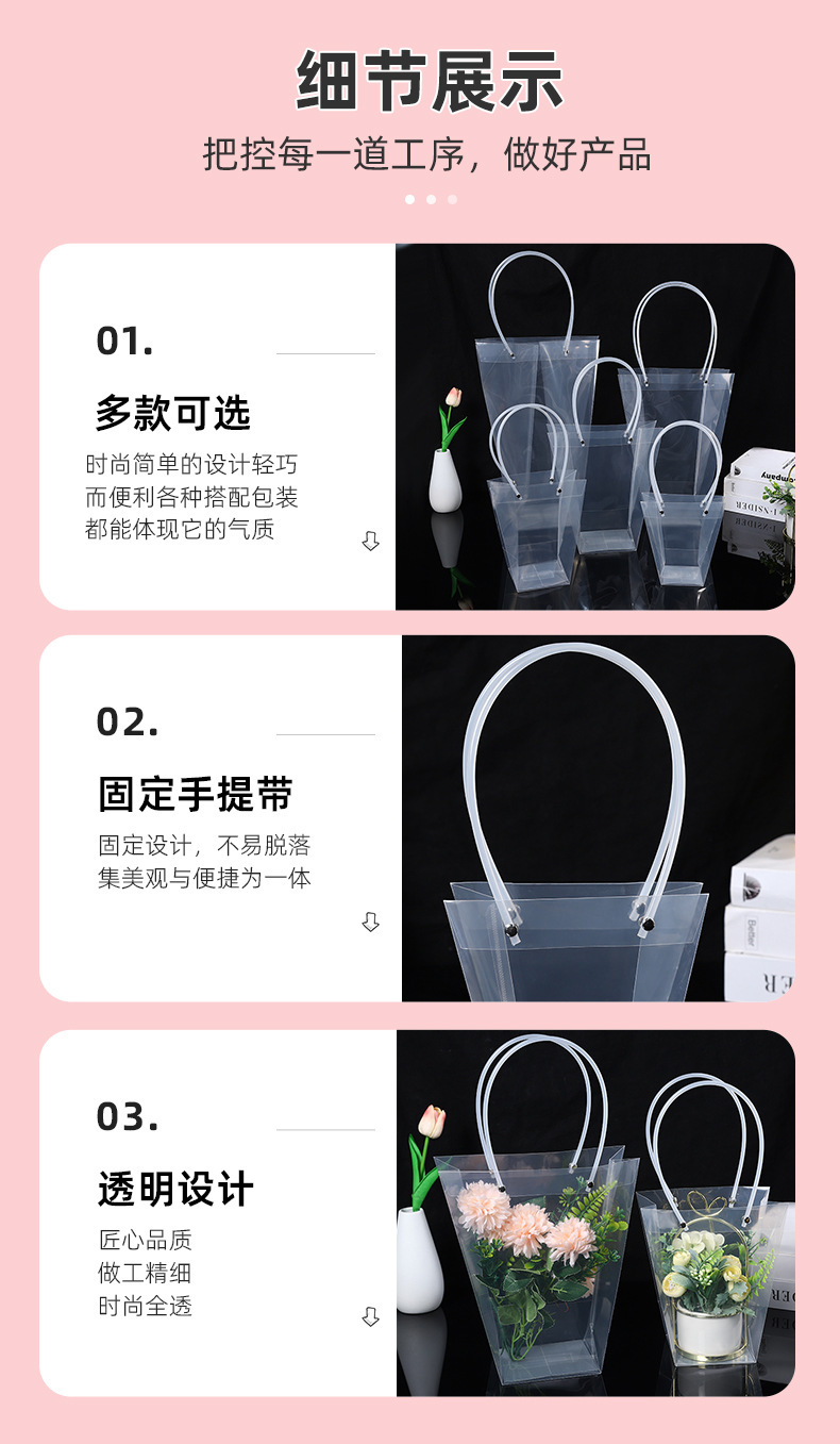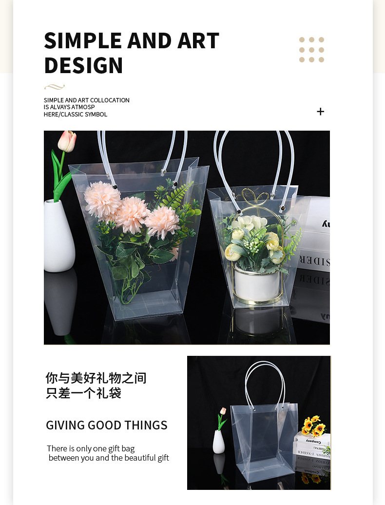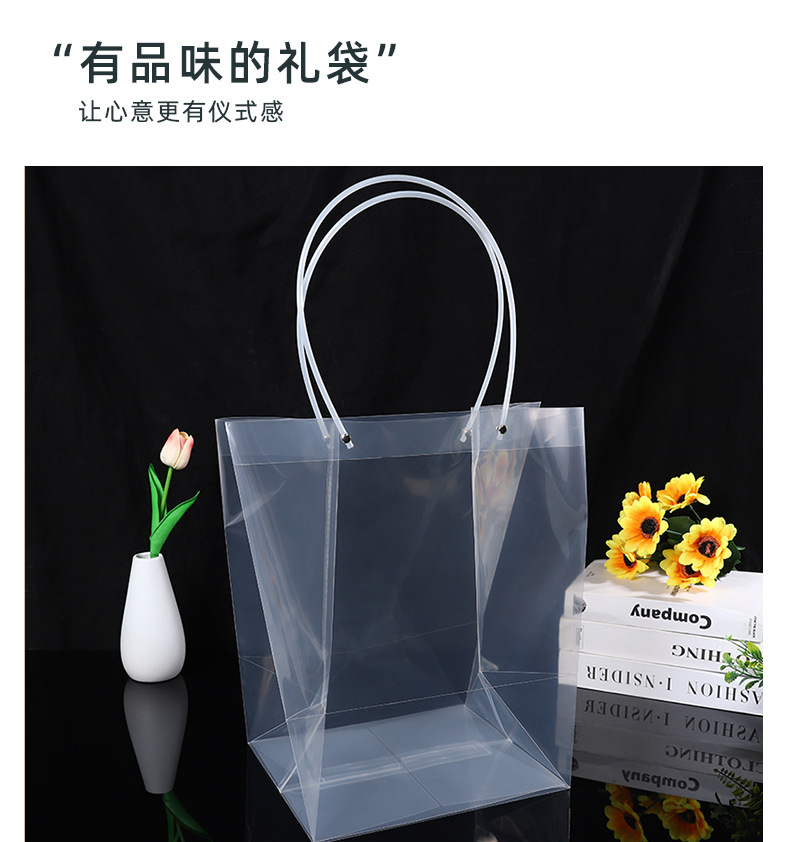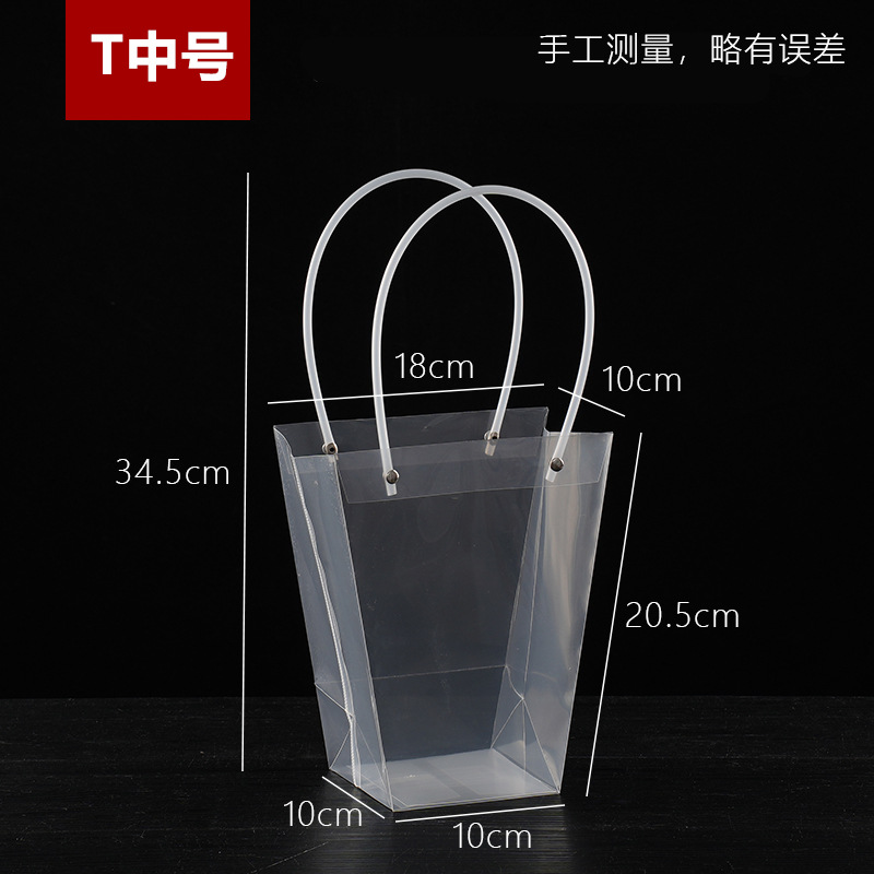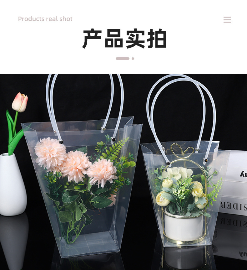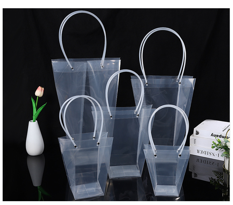 발렌타인 데이 사다리꼴 투명한 꽃 토트 백 PP 플라스틱 선물 가방 웨딩 꽃 꽃다발 포장 백 재고 토트 백스토어 가기