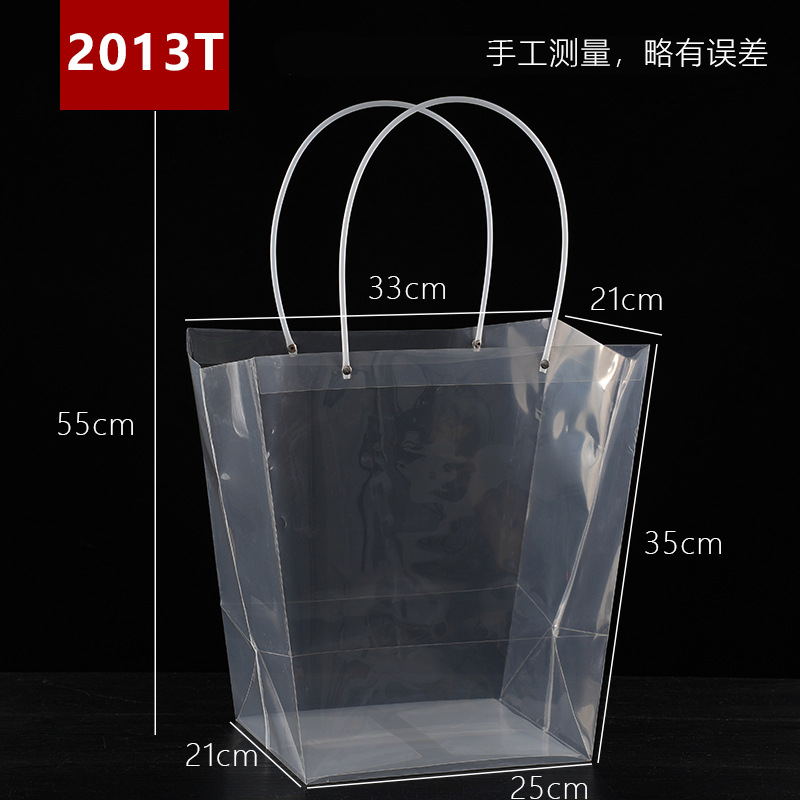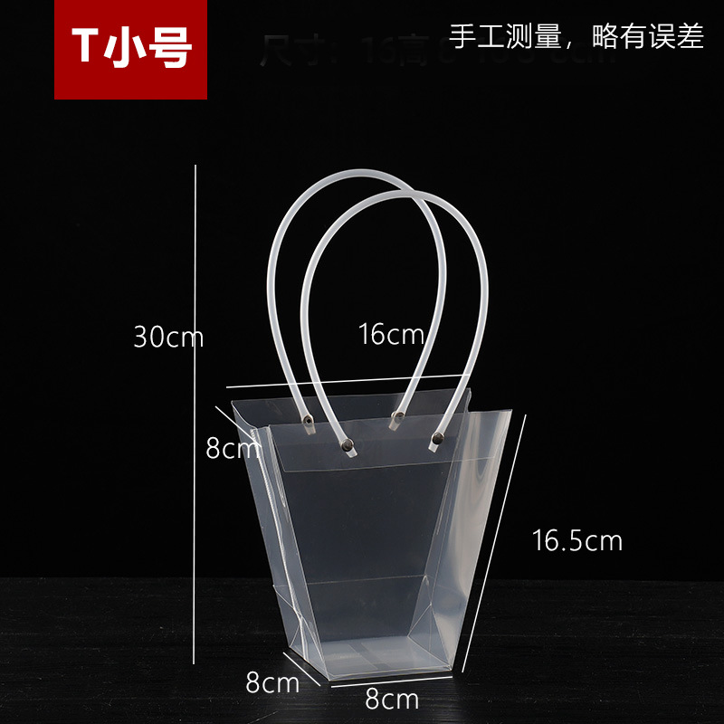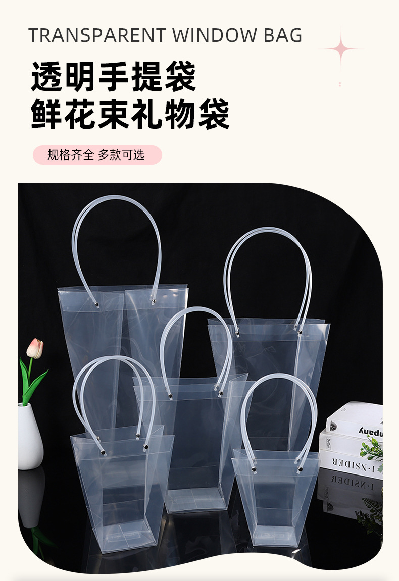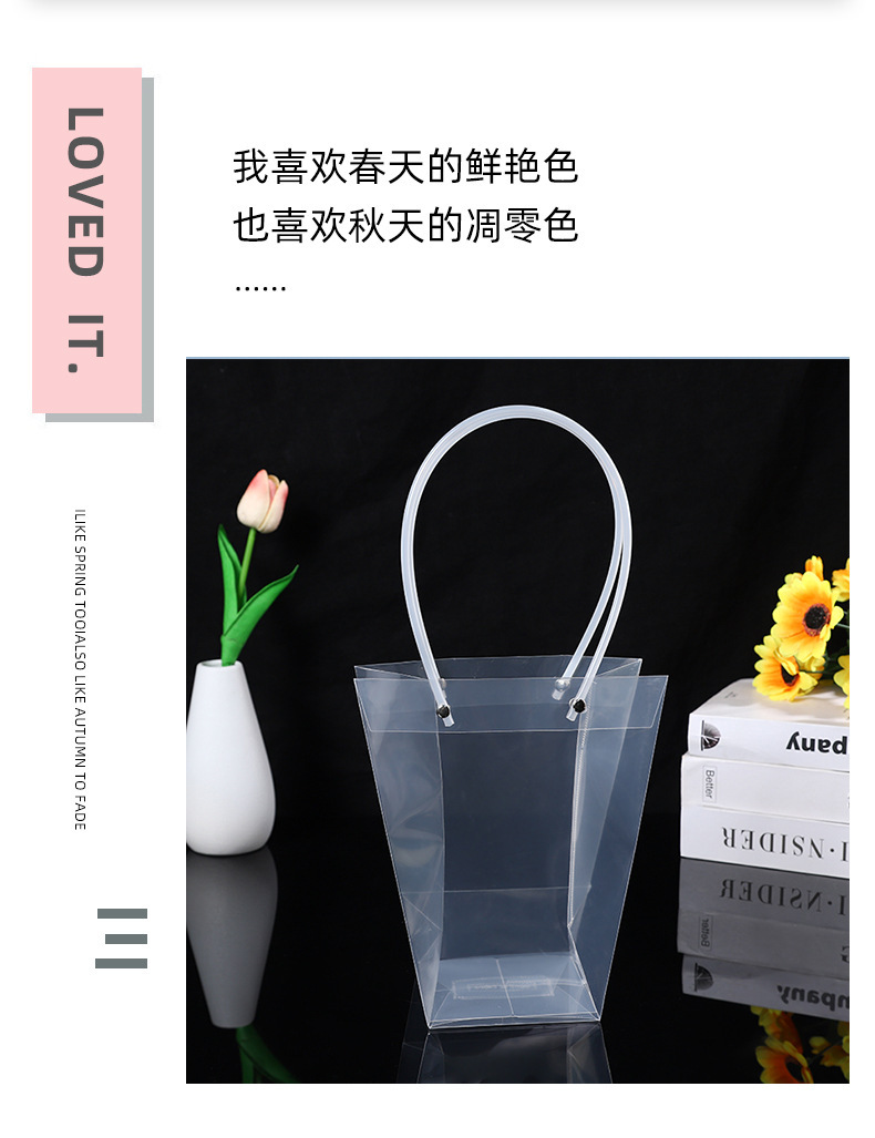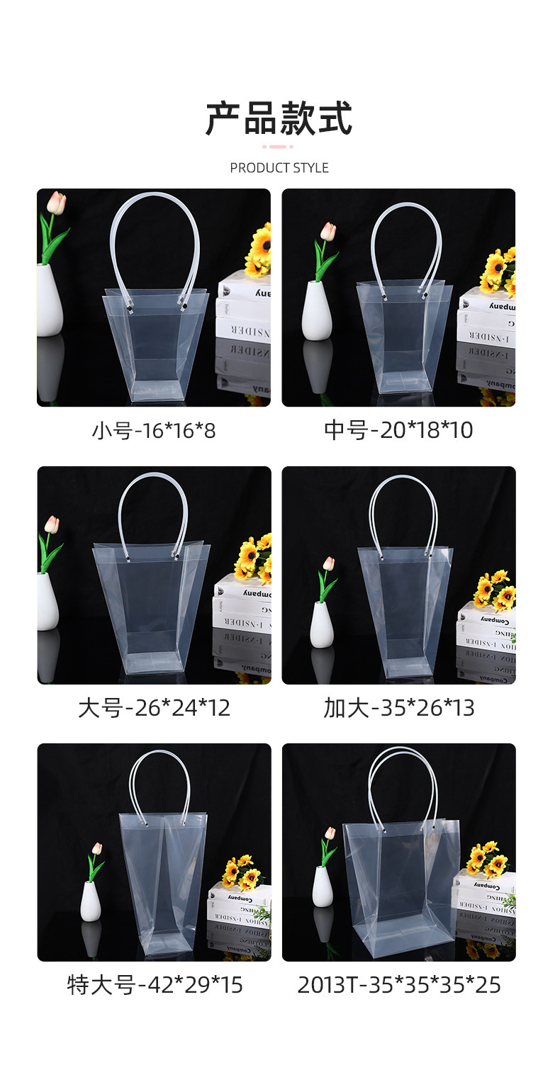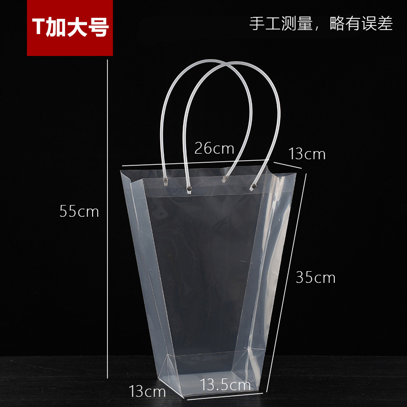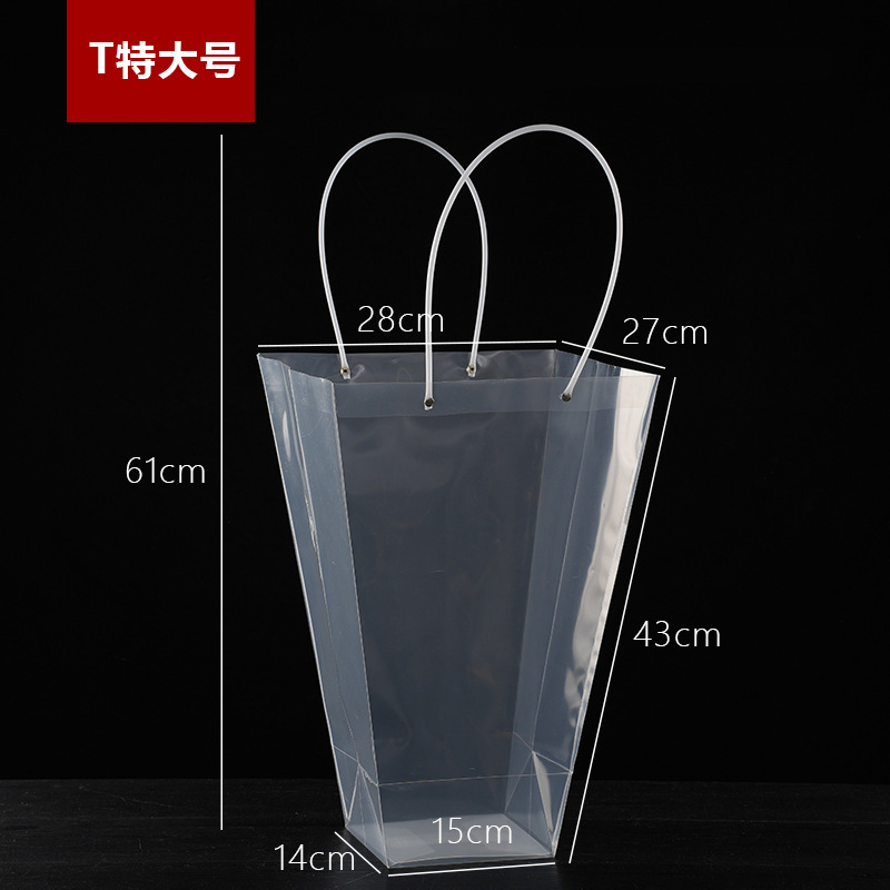 발렌타인 데이 사다리꼴 투명한 꽃 토트 백 PP 플라스틱 선물 가방 웨딩 꽃 꽃다발 포장 백 재고 토트 백