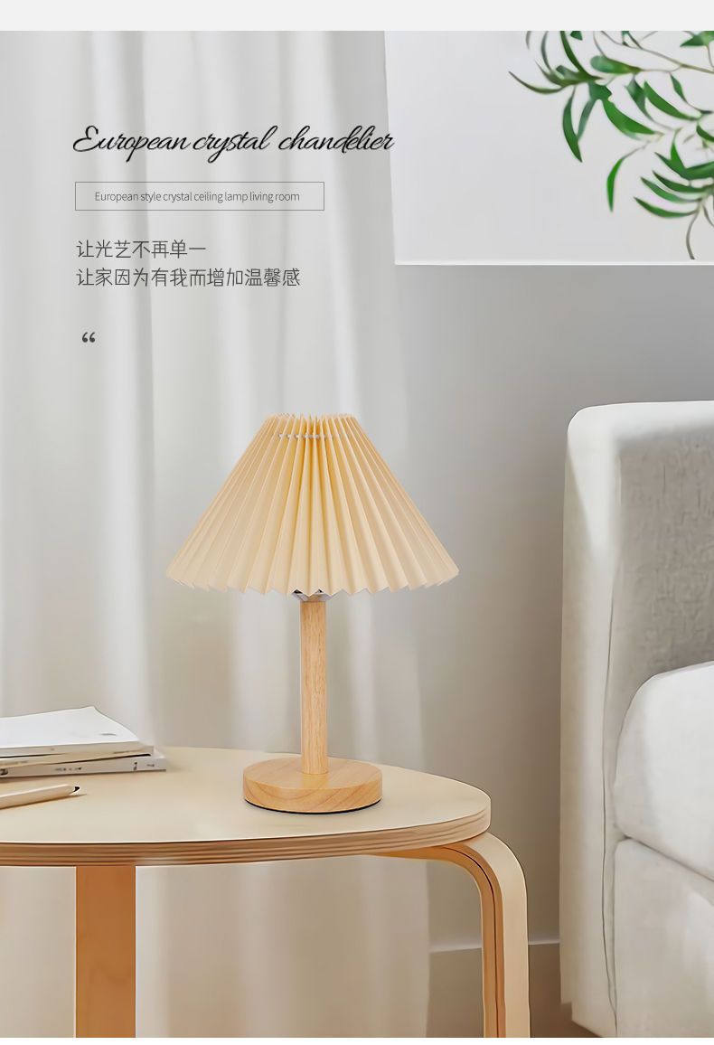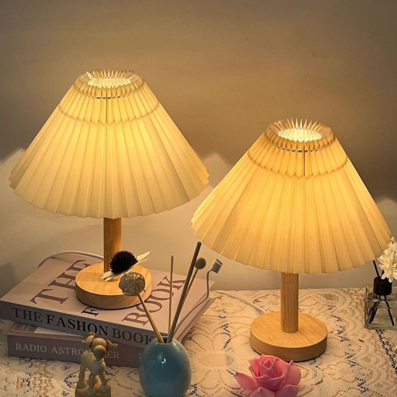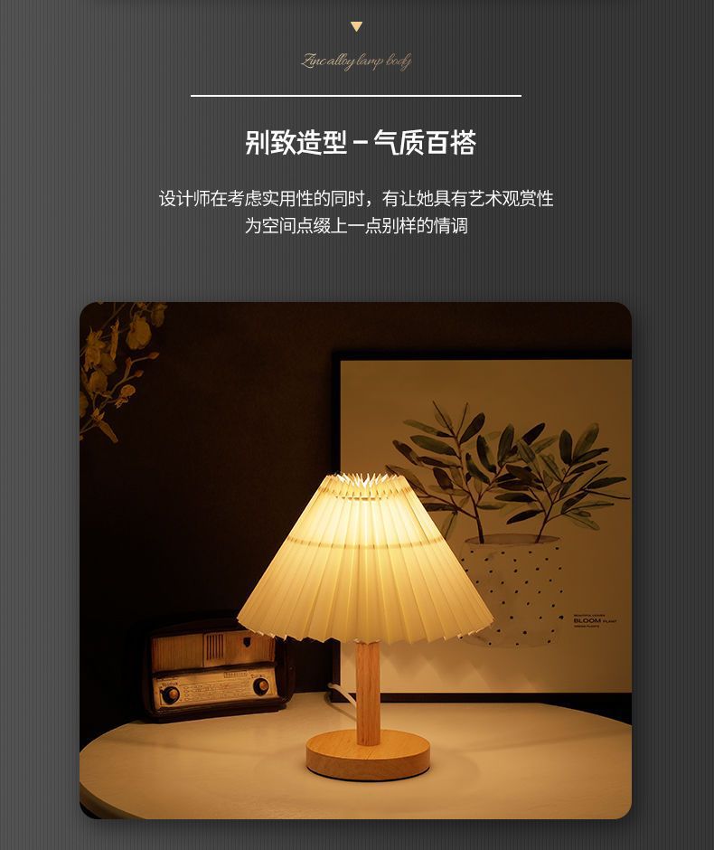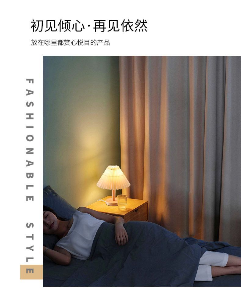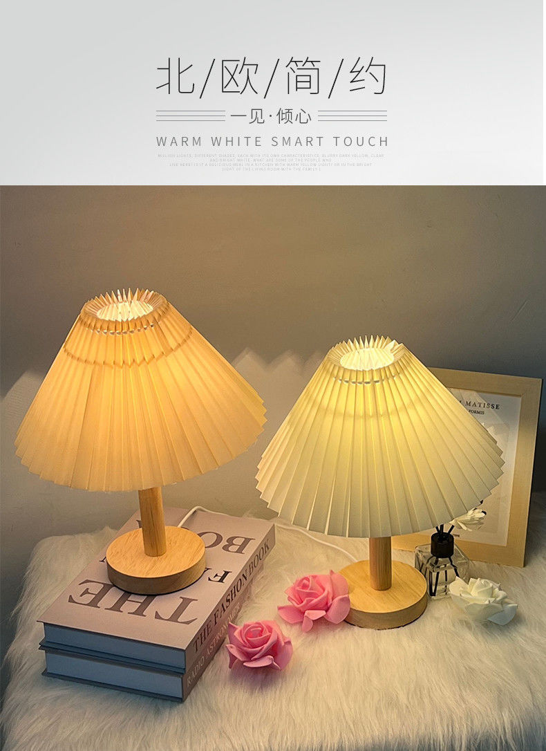 USB 북유럽 인터넷 유명 테이블 램프 한국 주름 침대 옆 B & B 장식 야간 조명 침실 단단한 나무 램프
