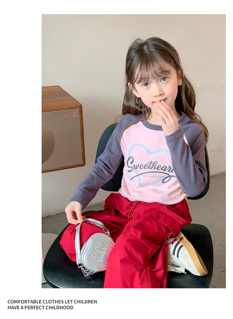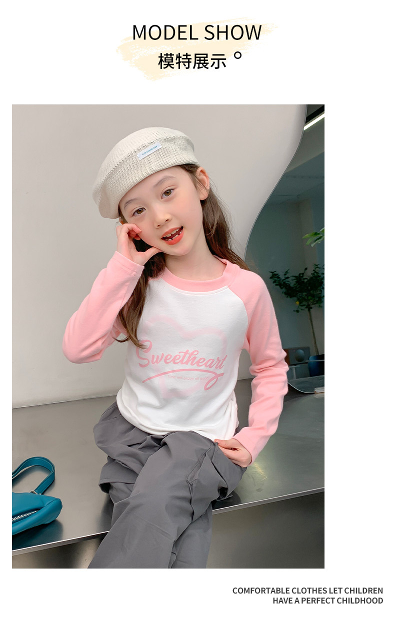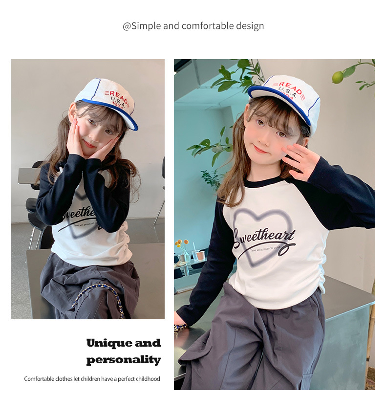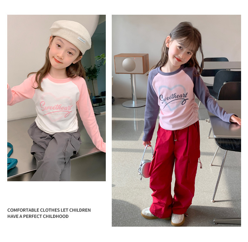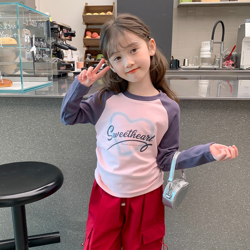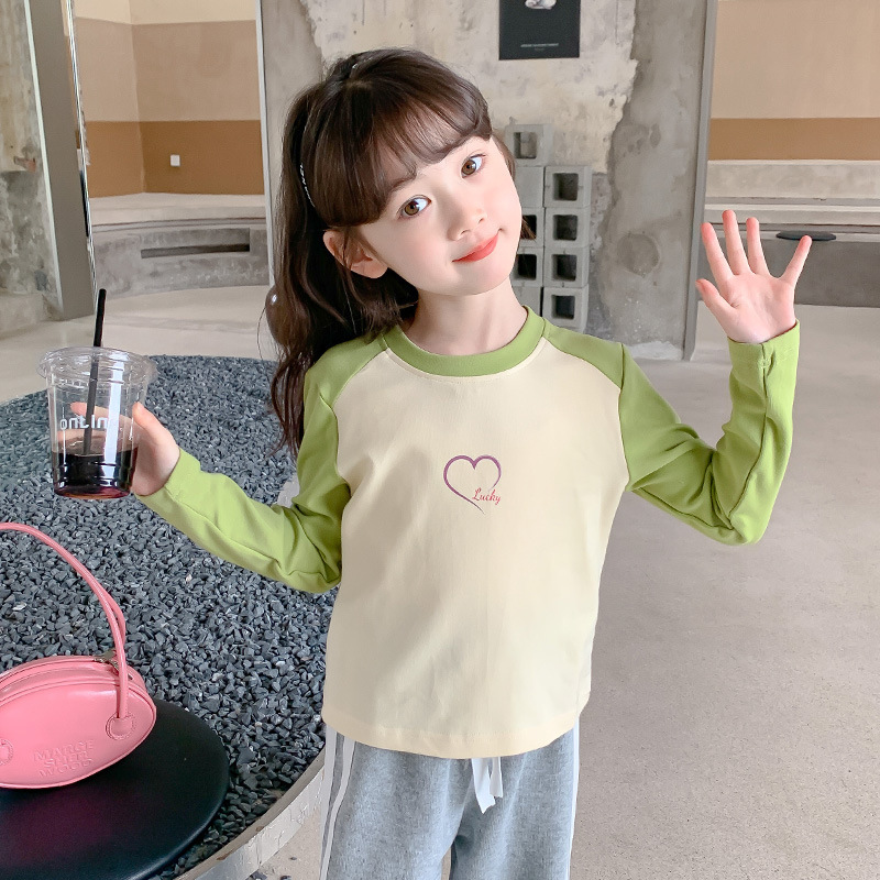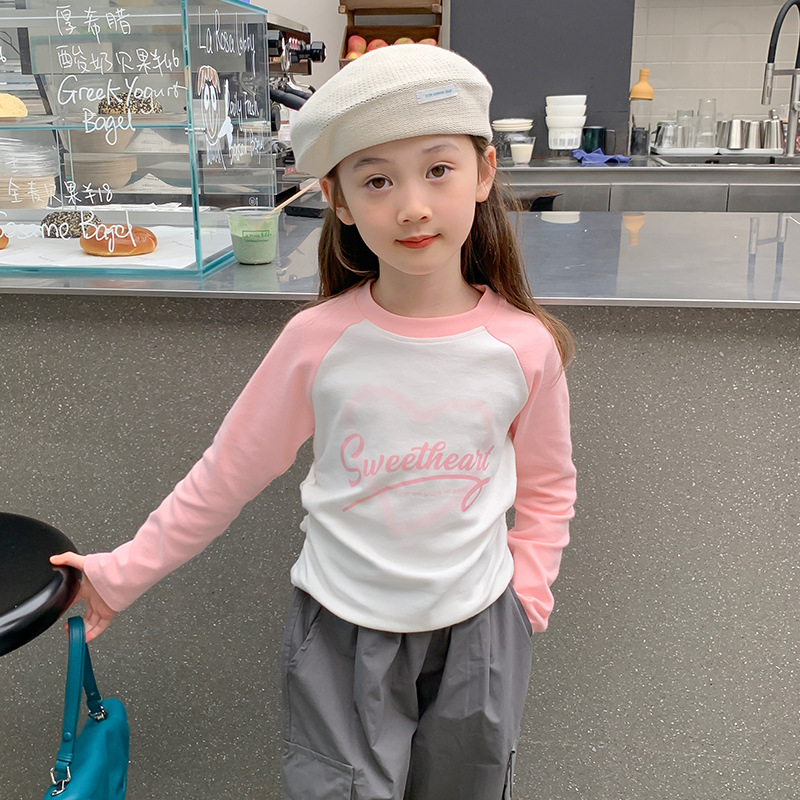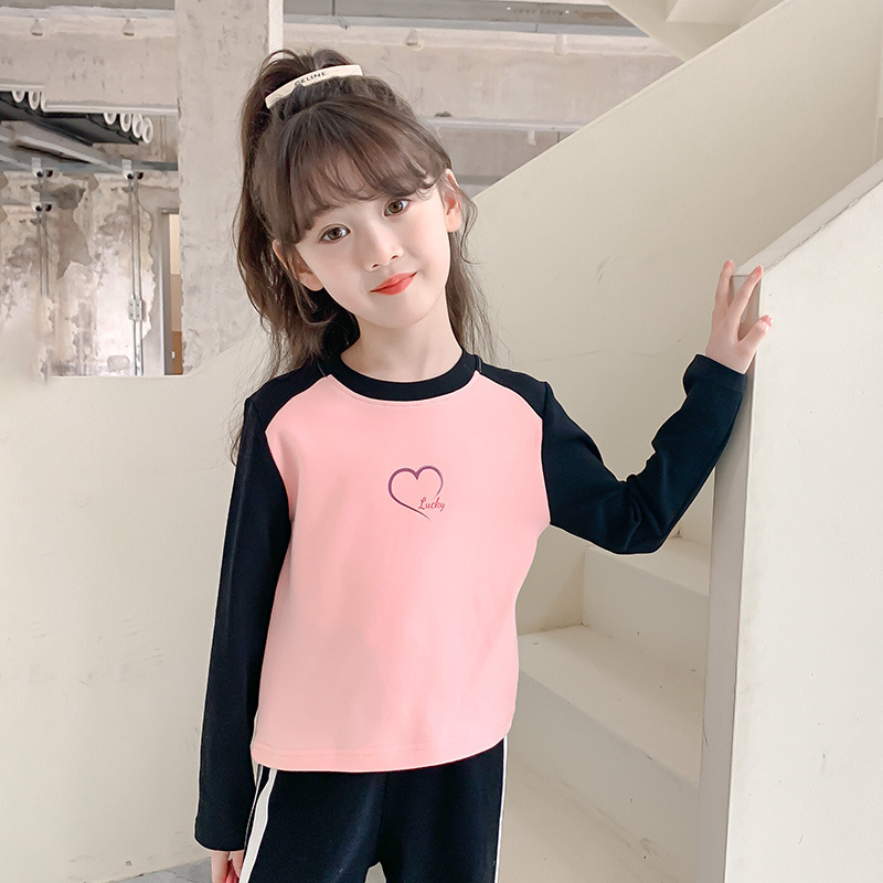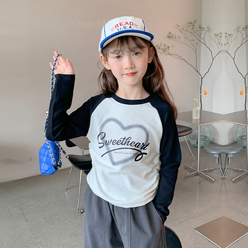 아동복 하트 프린트 여아 티셔츠 긴팔 순면 어린이 가을 상의 2025 신상 여아용 이너웨어