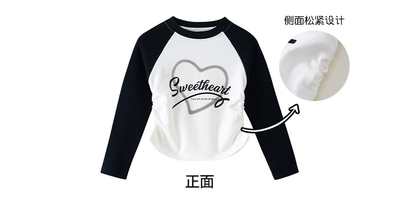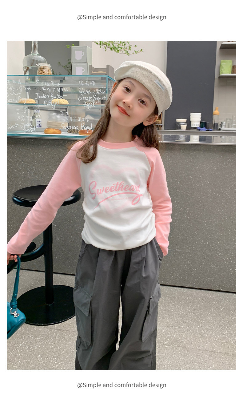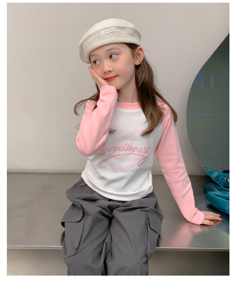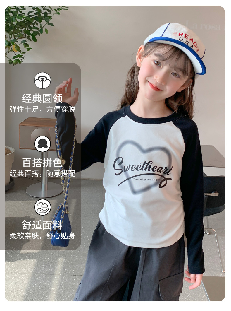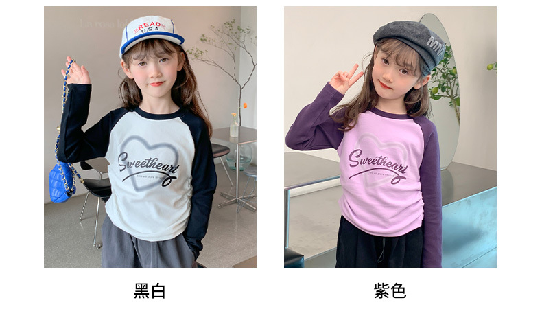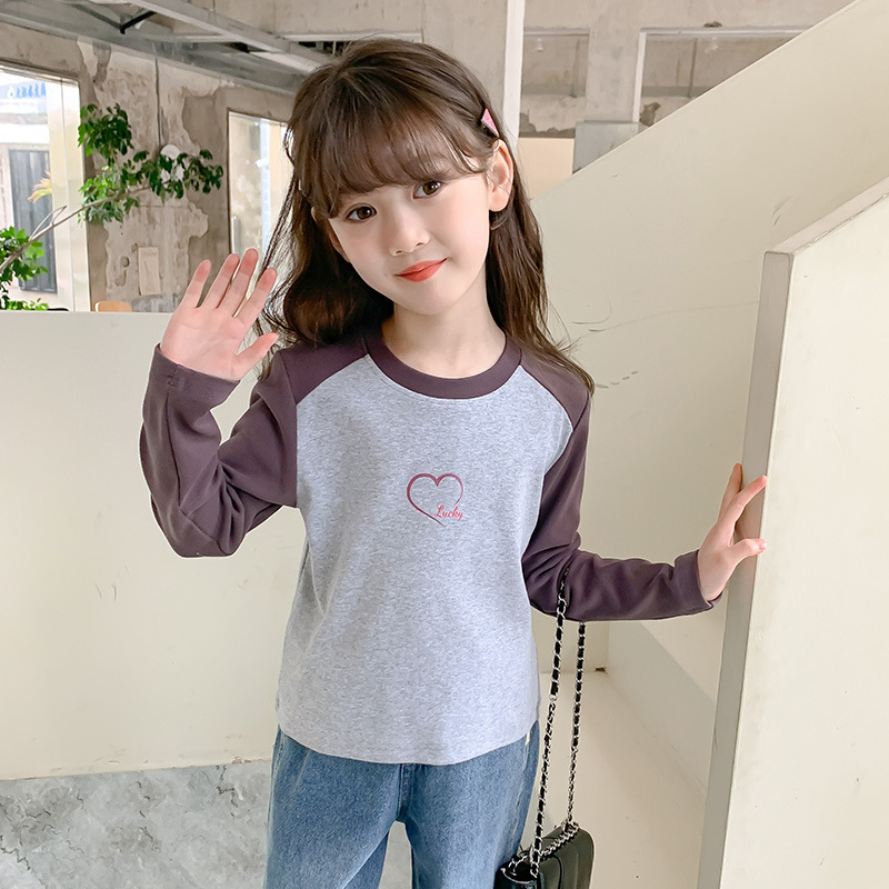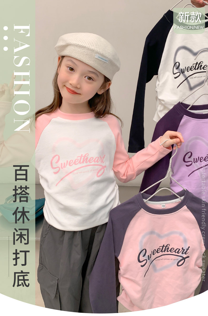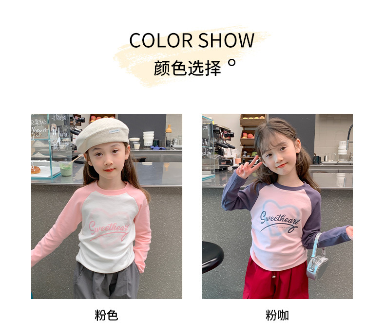 아동복 하트 프린트 여아 티셔츠 긴팔 순면 어린이 가을 상의 2025 신상 여아용 이너웨어