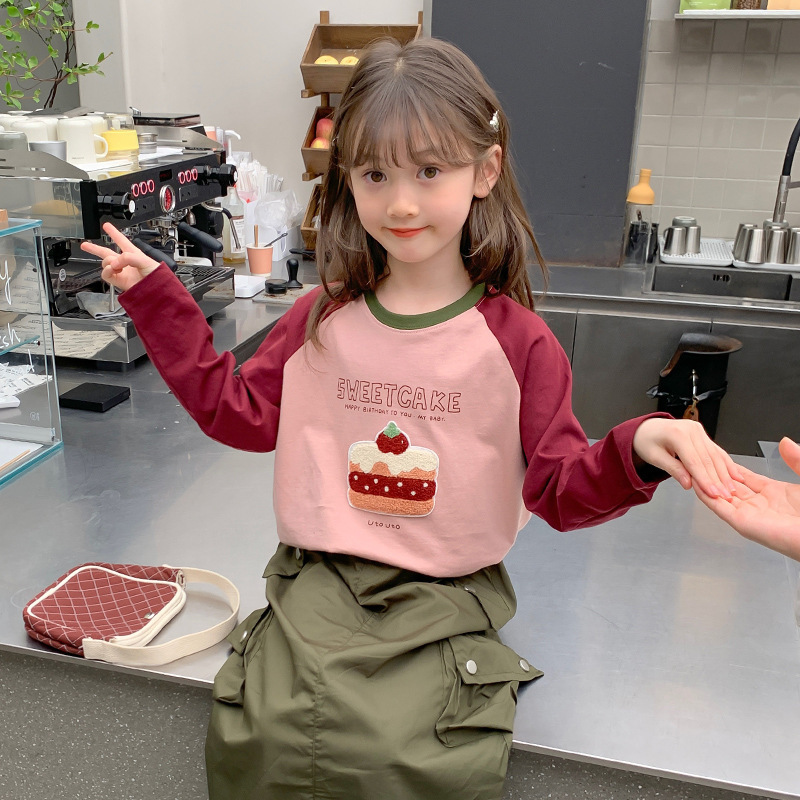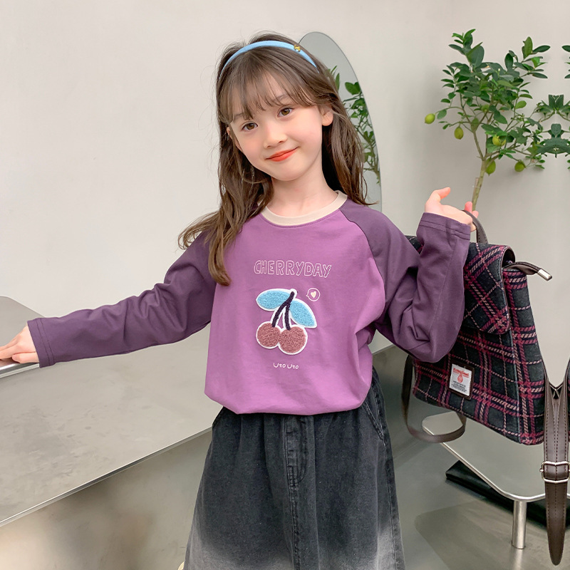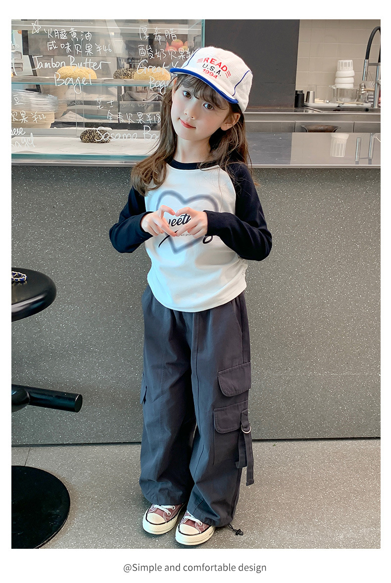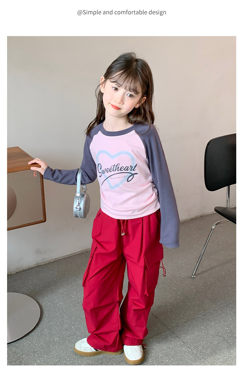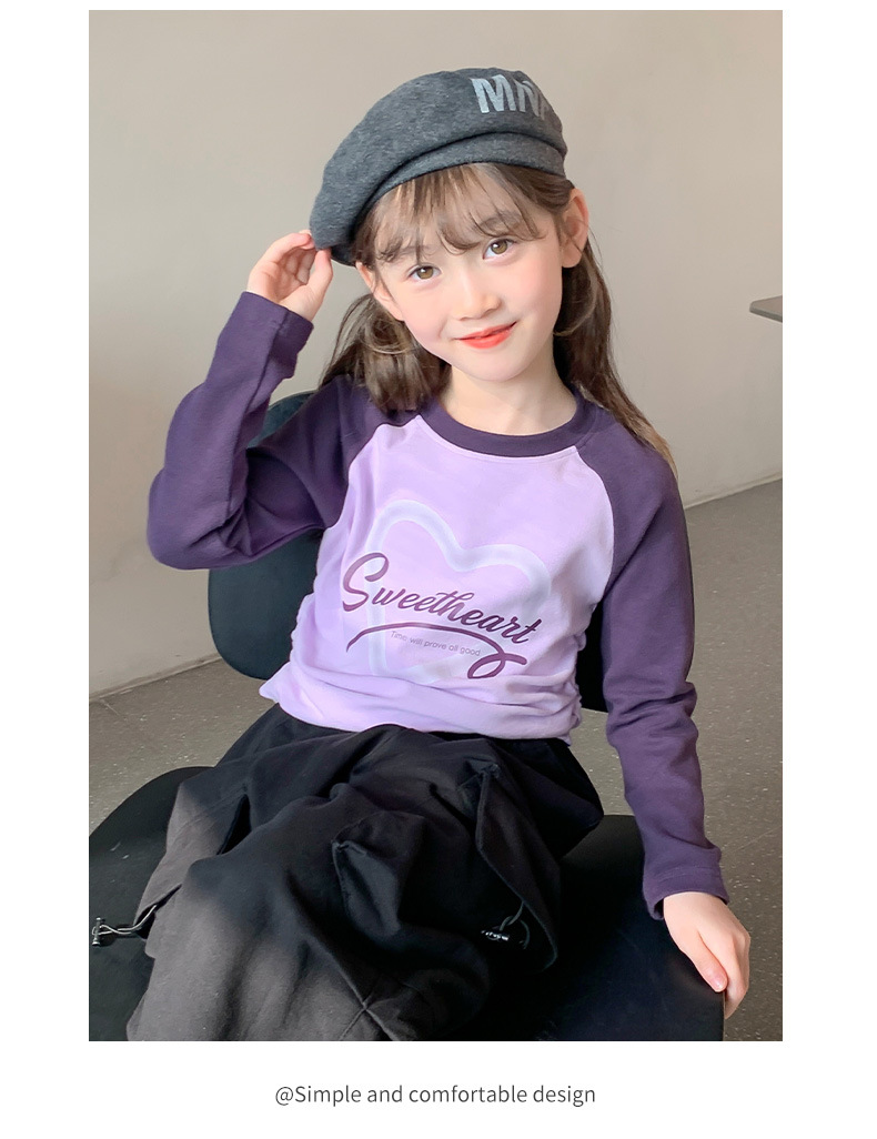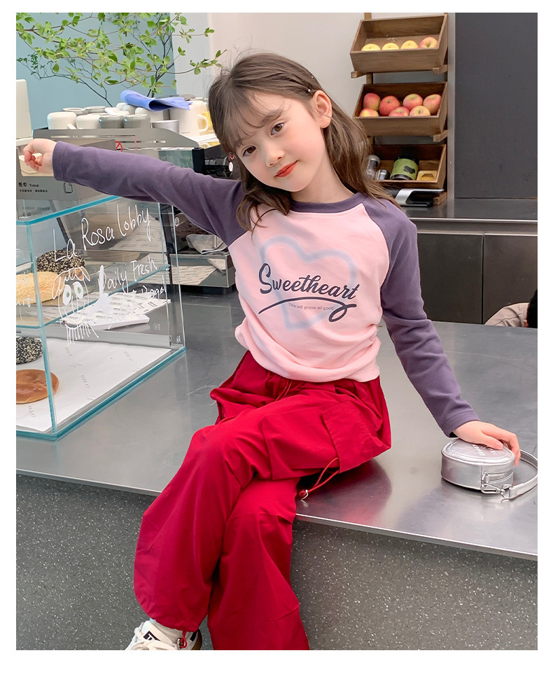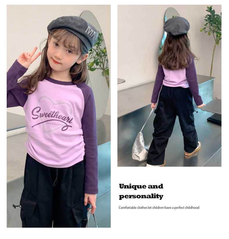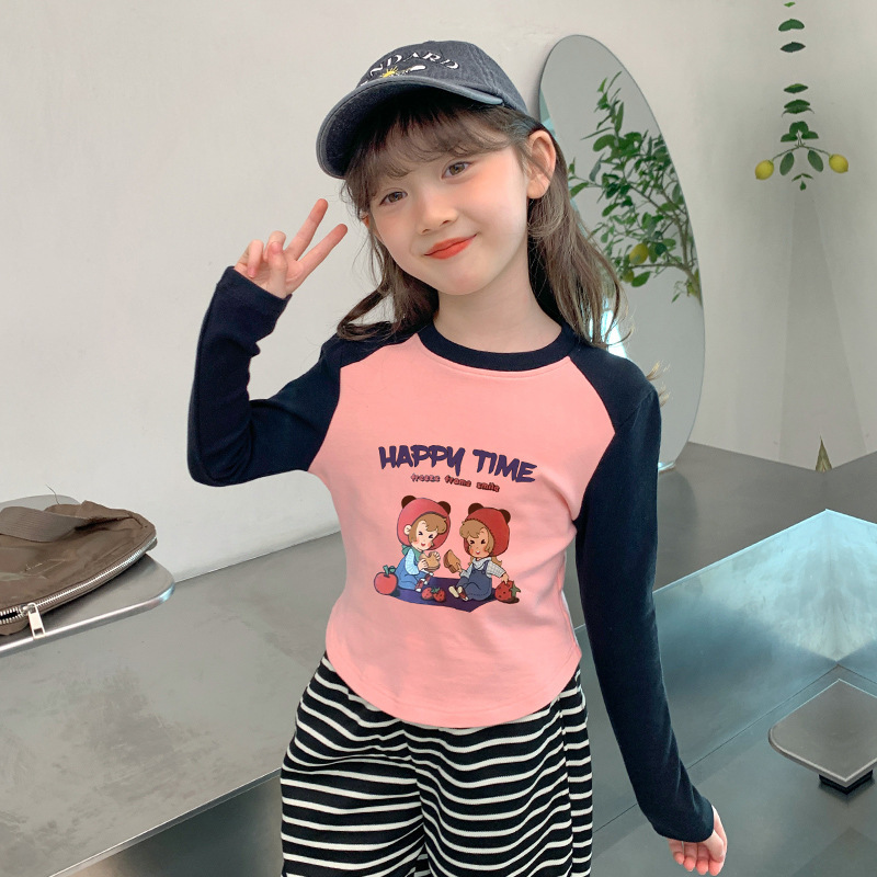 아동복 하트 프린트 여아 티셔츠 긴팔 순면 어린이 가을 상의 2025 신상 여아용 이너웨어
