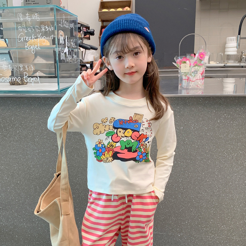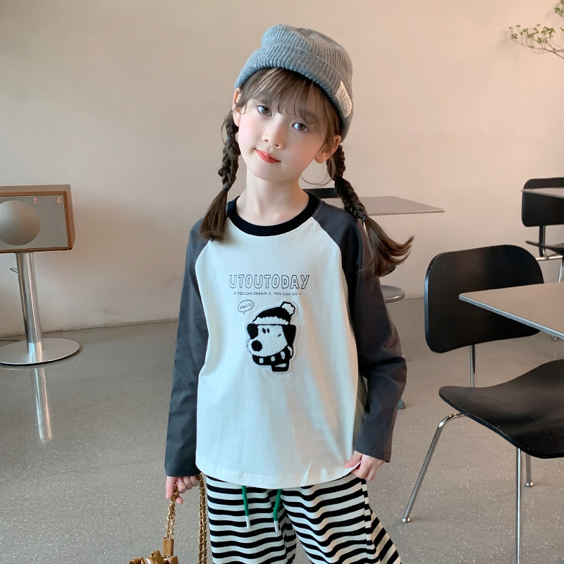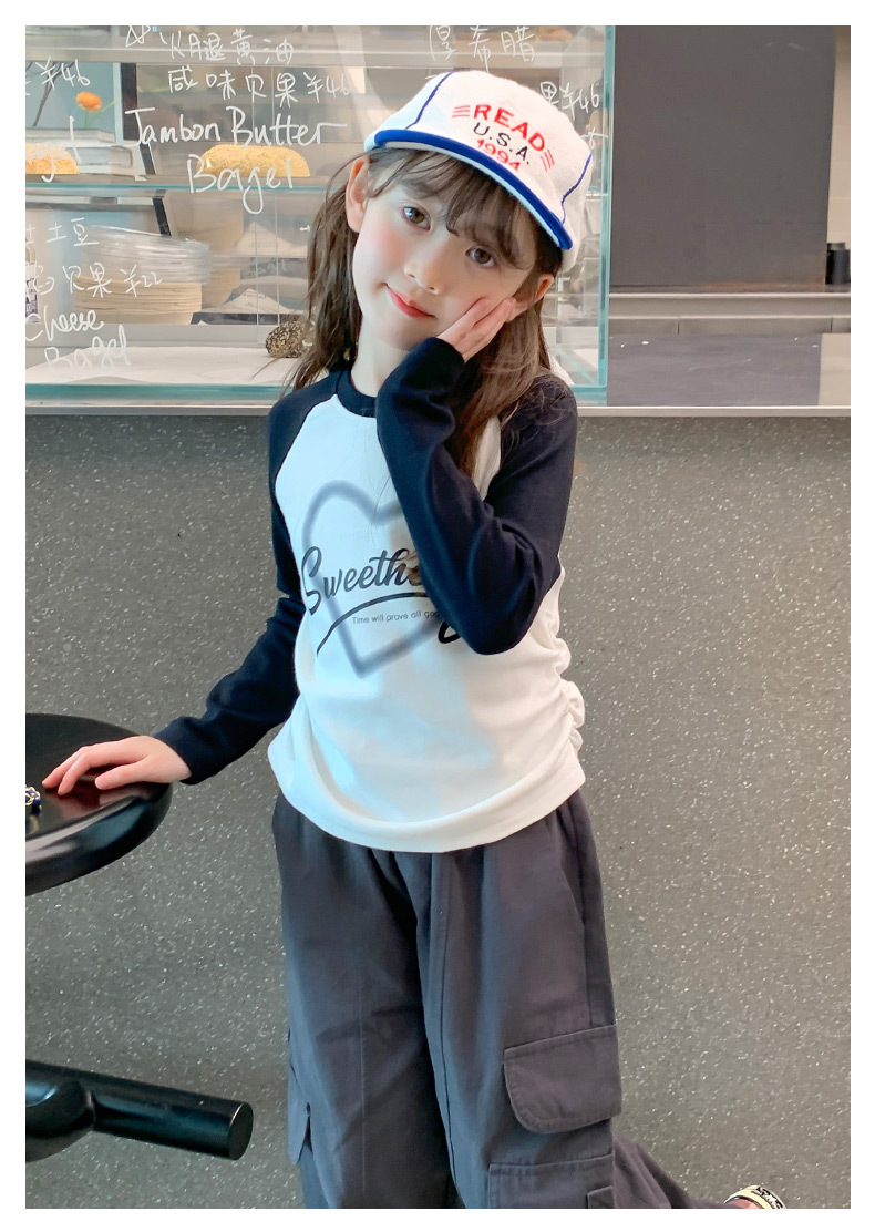 아동복 하트 프린트 여아 티셔츠 긴팔 순면 어린이 가을 상의 2025 신상 여아용 이너웨어스토어 가기