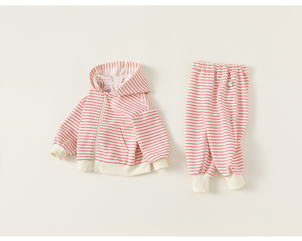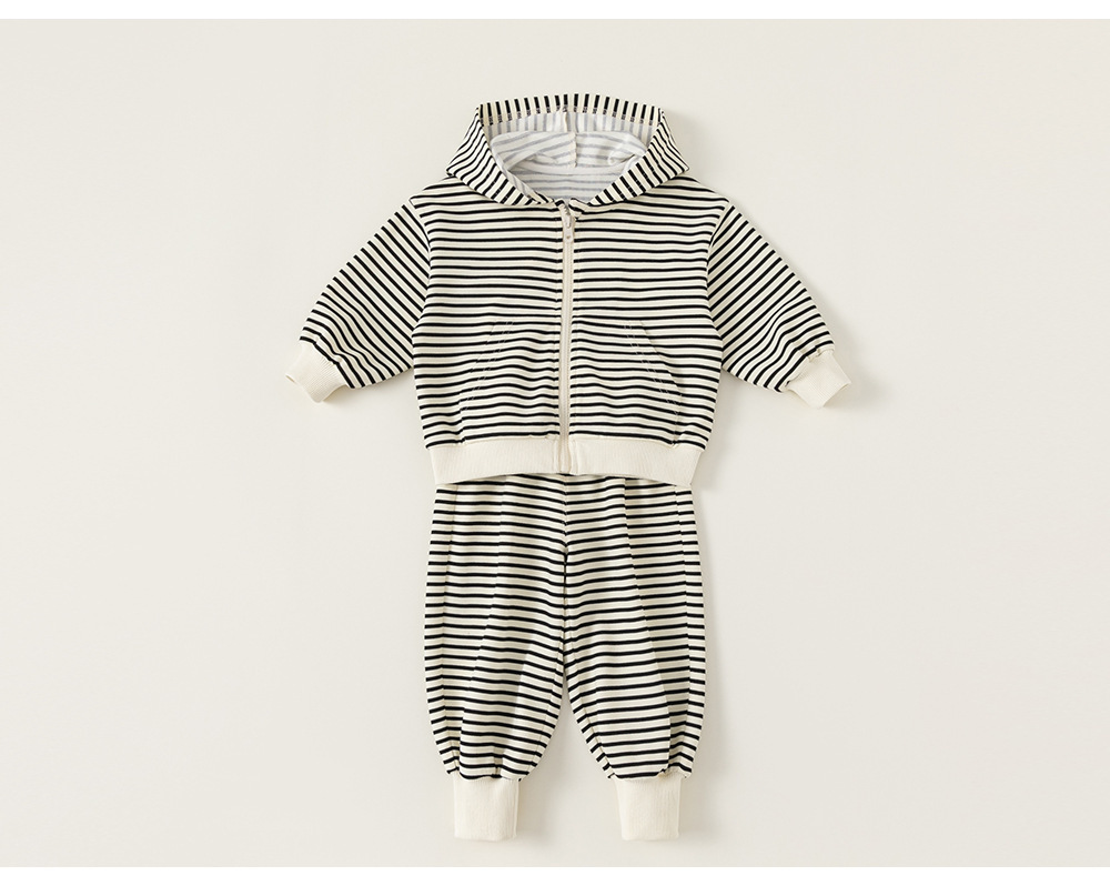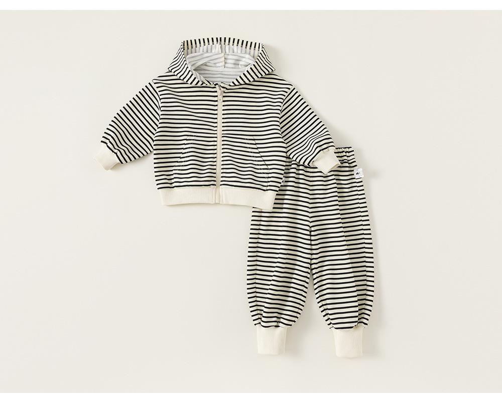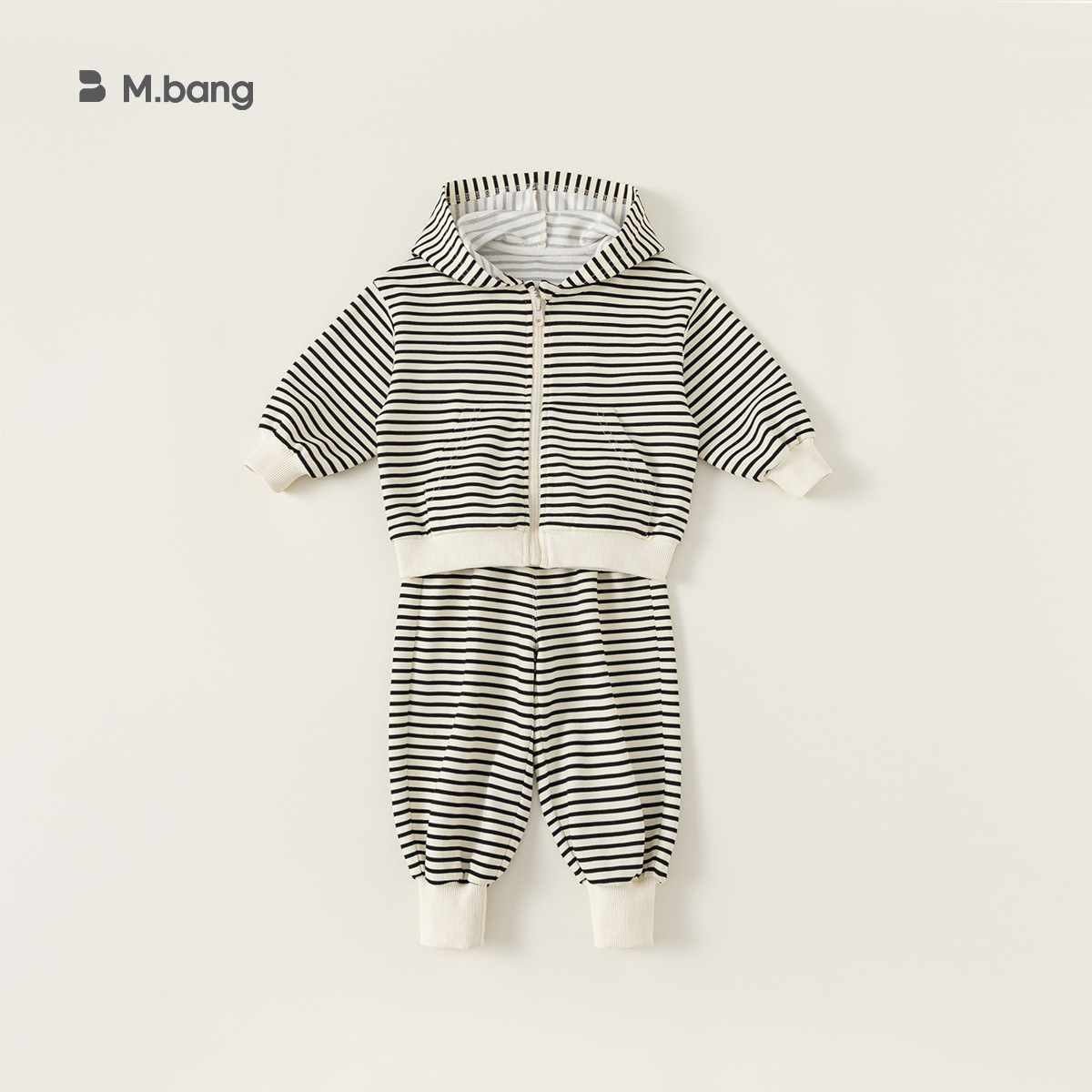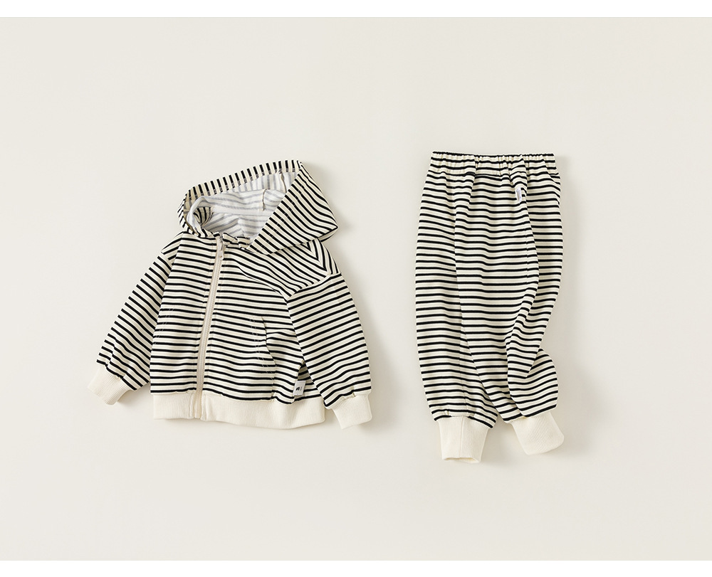 Bangxuan 어린이 줄무늬 옷 소년 정장 봄, 가을 소녀 캐주얼 재킷 후드 티셔츠 스웨트 팬츠 투피스 세트