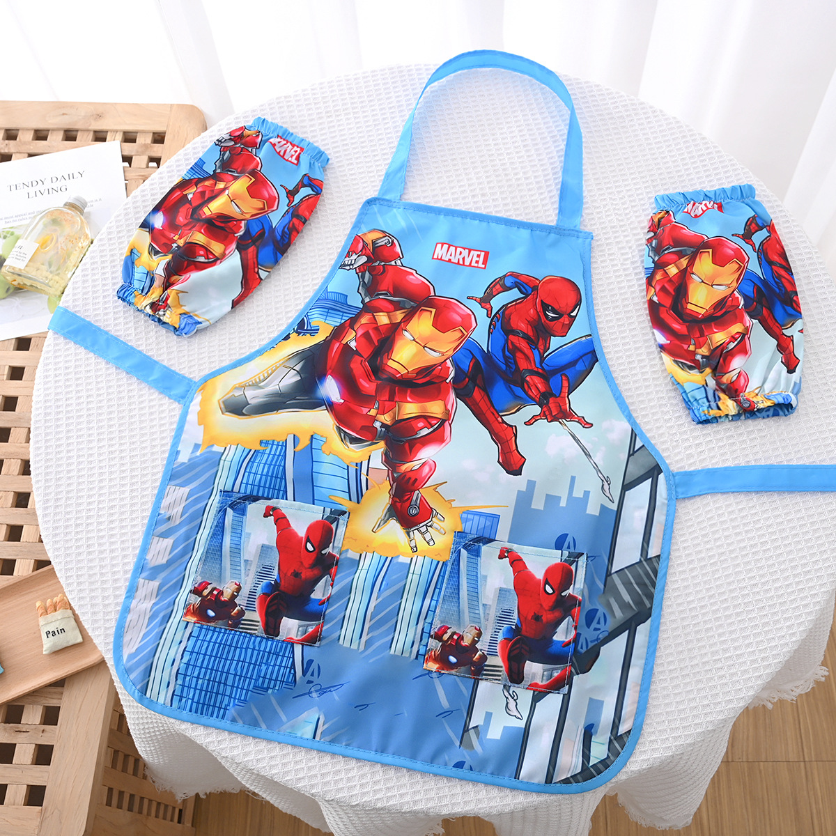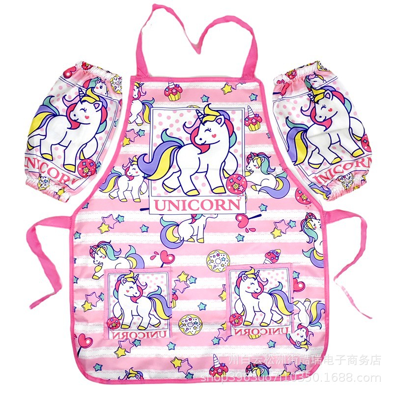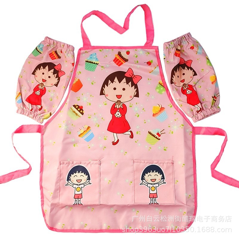 귀여운 만화 어린이 방수 앞치마 소년과 소녀 그림 옷 요리사의 옷 오버롤 안티 드레싱 다이닝 턱받이