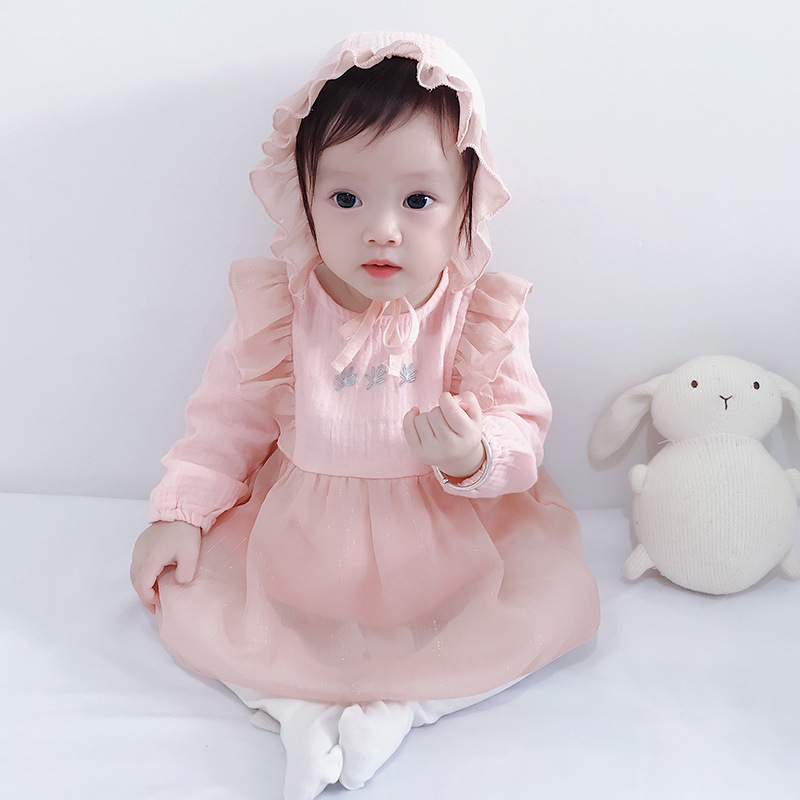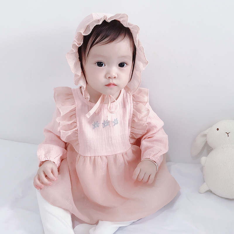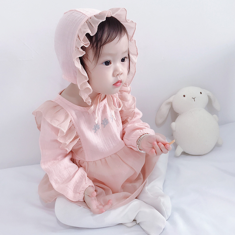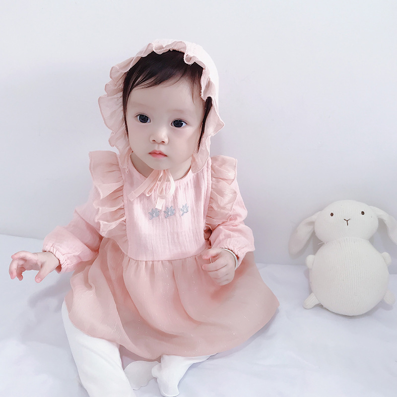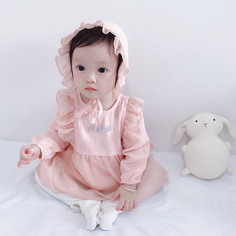 2025년 한국판 가을 신상 아기 점프수트, 달콤한 공주풍 삼각 바디수트, 유아용 롬퍼, 하렘 드레스스토어 가기